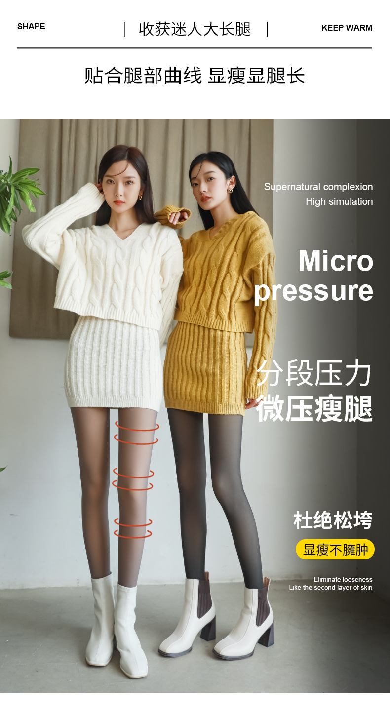 【收腹提臀!加绒加厚打底袜】效果逼真,微压瘦腿,塑形不臃肿!秋冬高腰鱼骨黑透肤光腿神器一体连裤袜打底裤