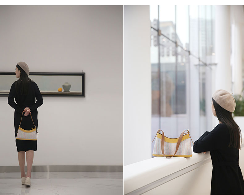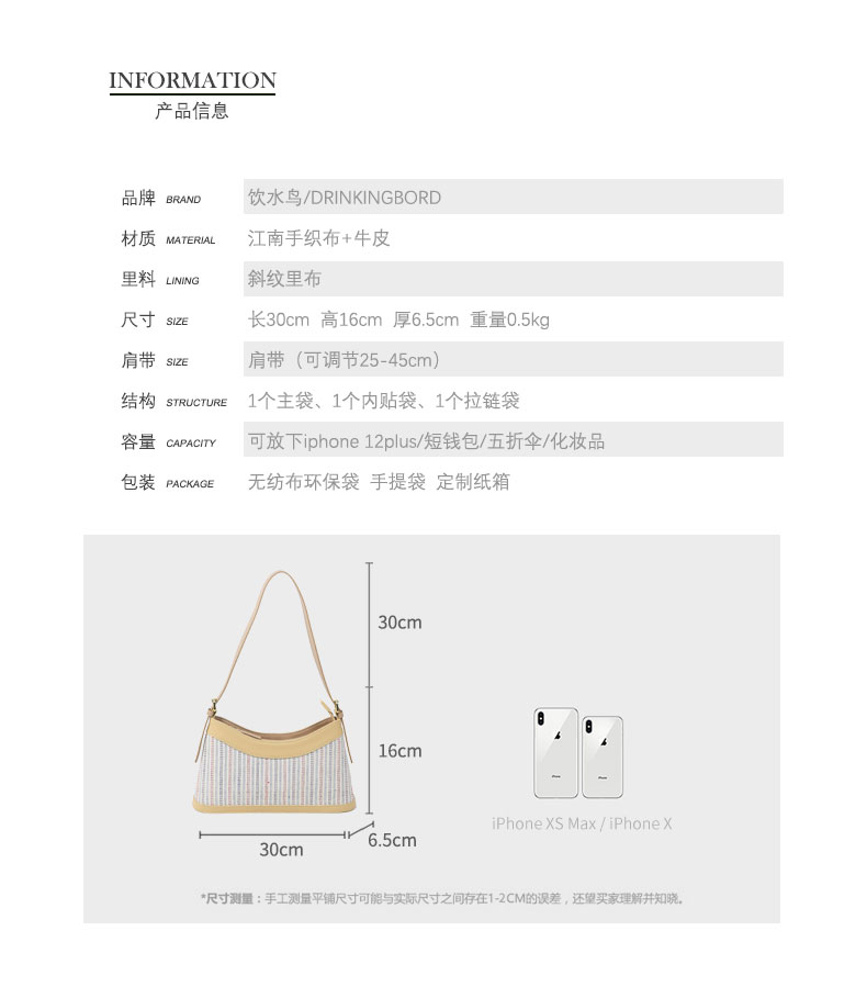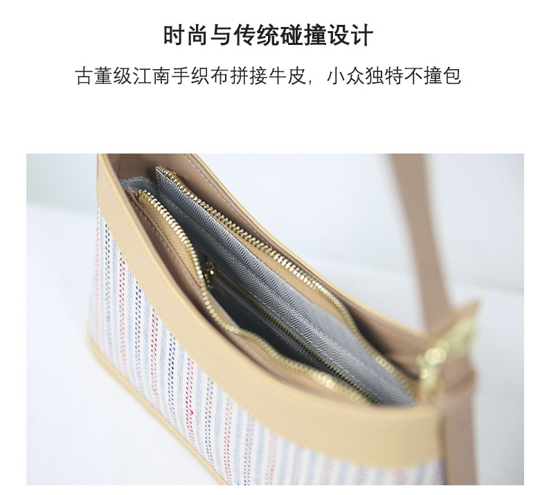 饮水鸟非遗江南手织布真皮百搭包 腋下包 称星