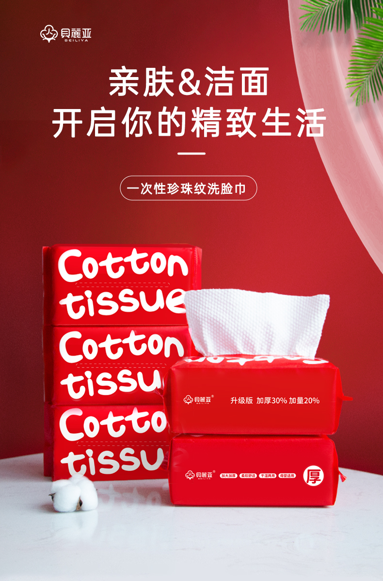 贝丽亚洗脸巾新款加厚棉柔巾一次性洁面巾珍珠纹抽取式干湿两用60抽
