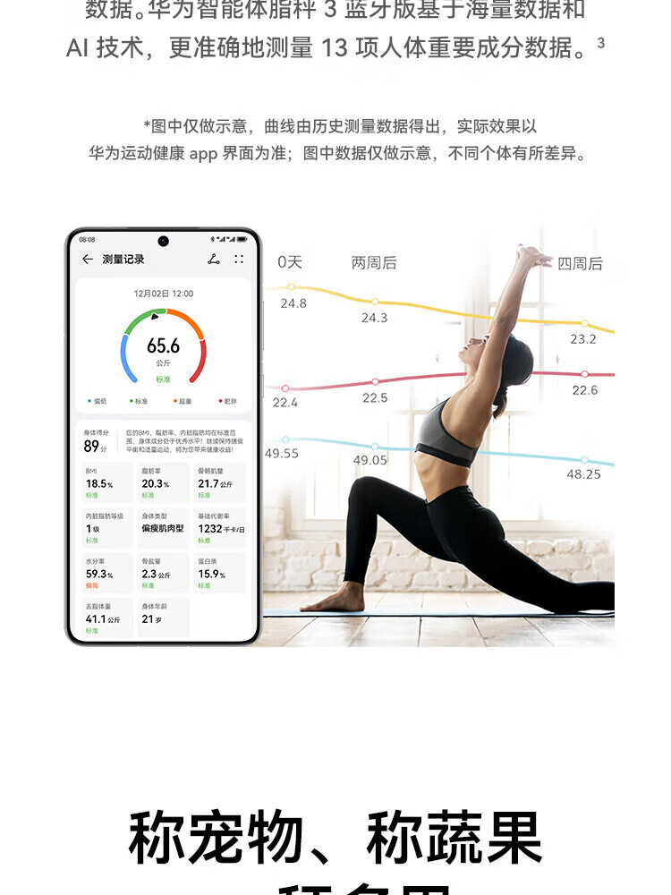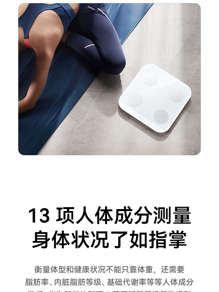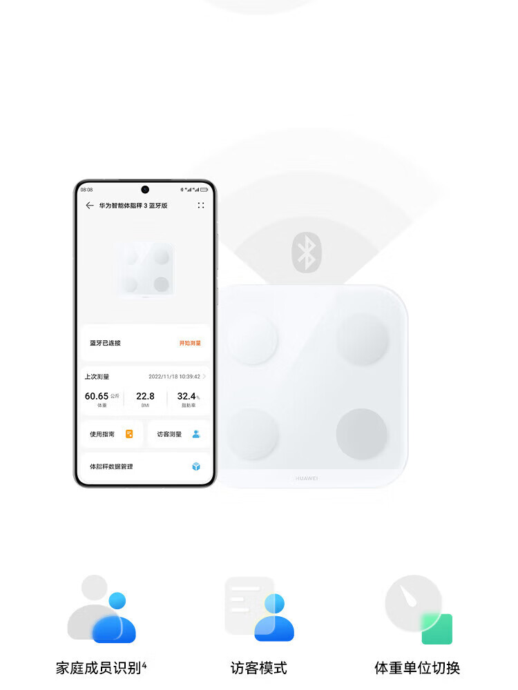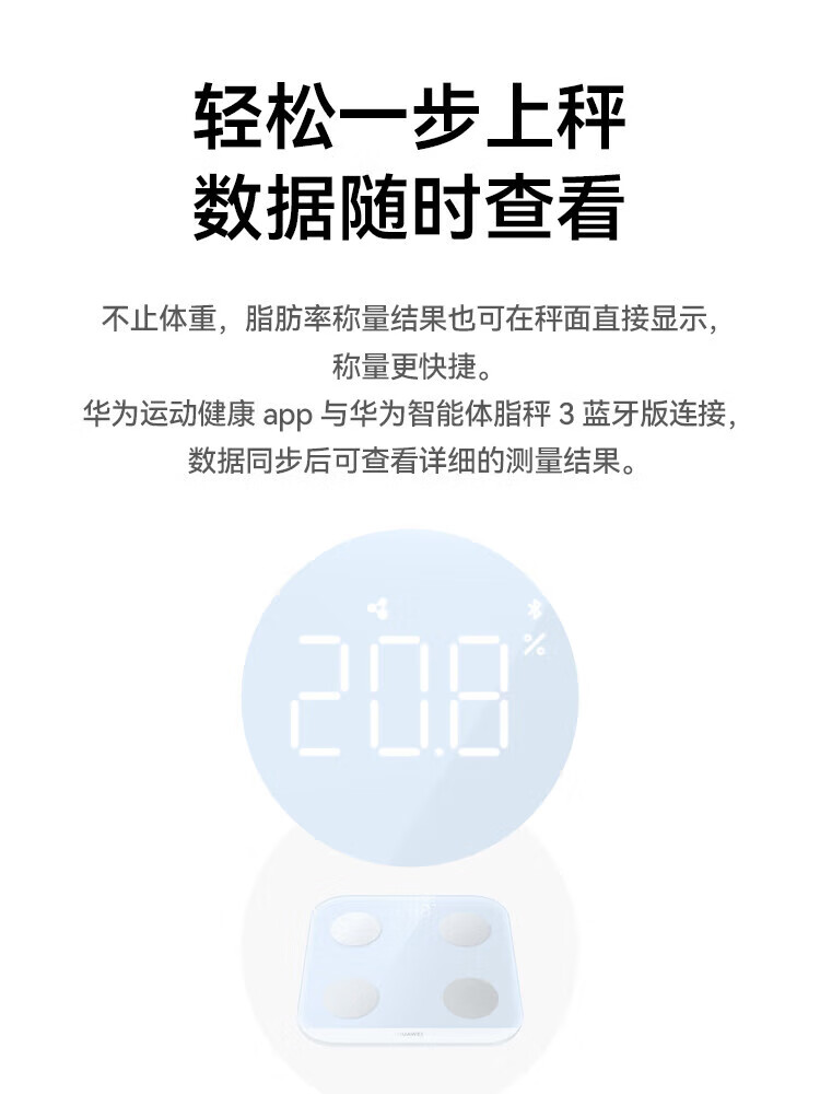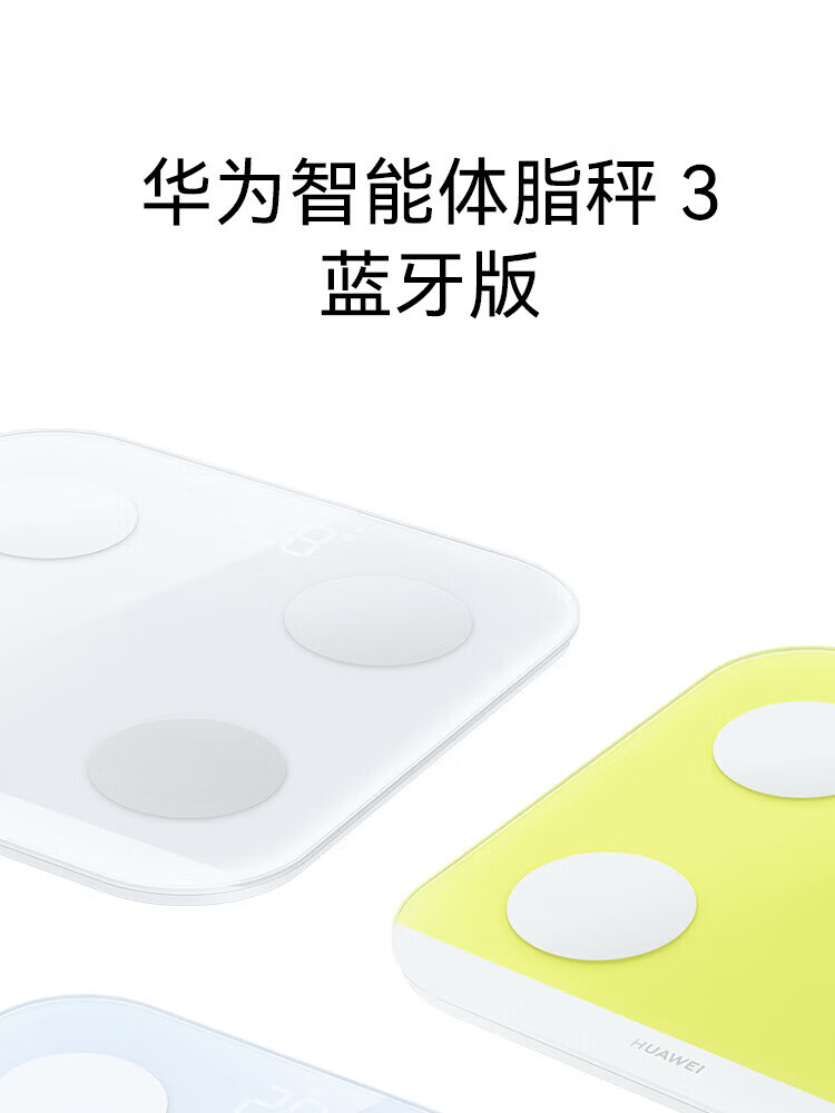 华为(HUAWEI)智能体脂秤 3 蓝牙版 凝霜白 家用智能电子秤 人体成分检测算法 13项身体数据监测 塑形减脂DBY-B19