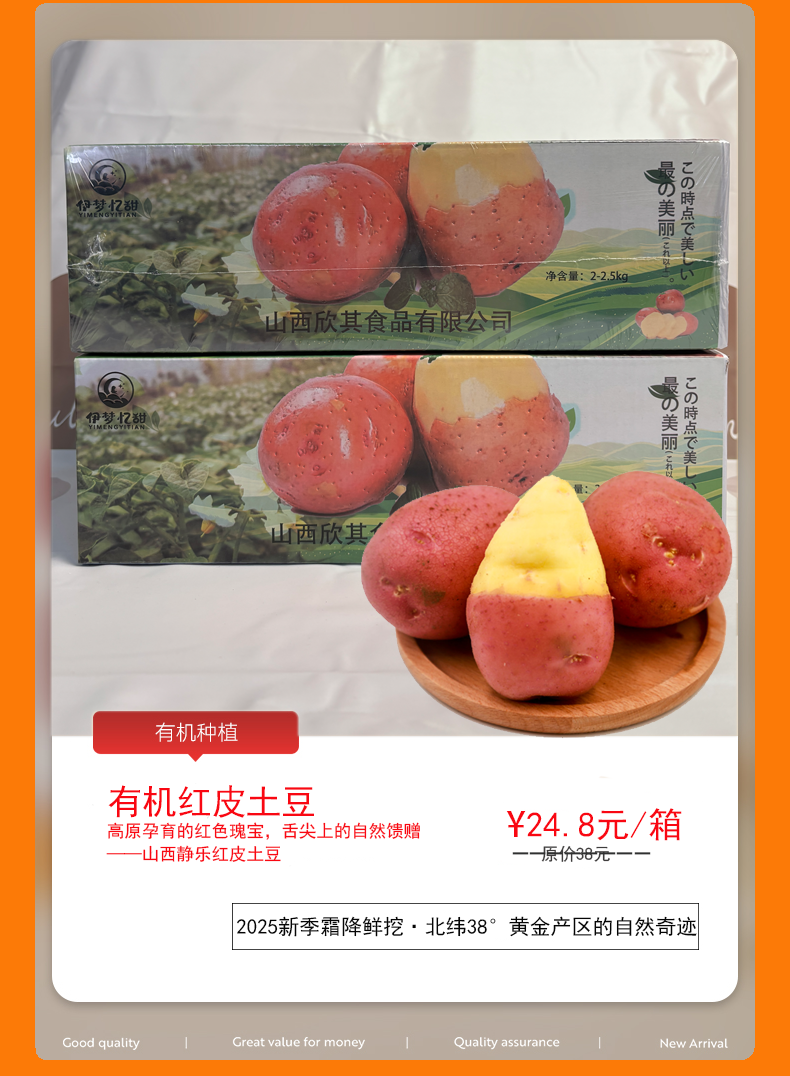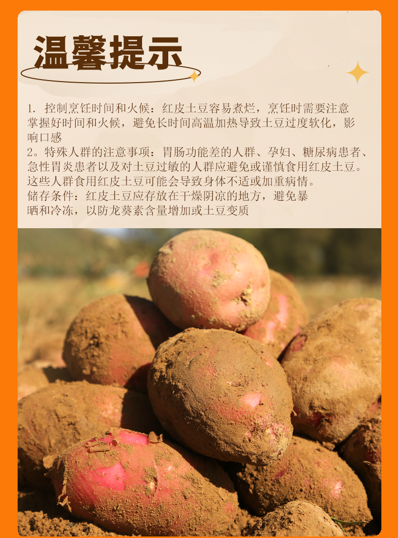 2.红皮土豆皮薄。运输过程中破皮、皱皮、轻微挤压属实正常,不予以赔付。