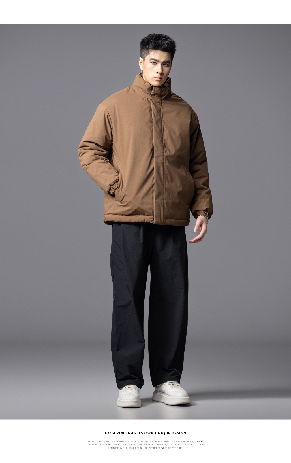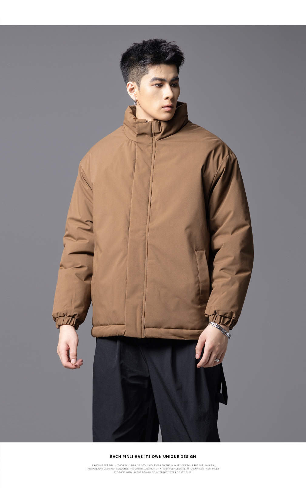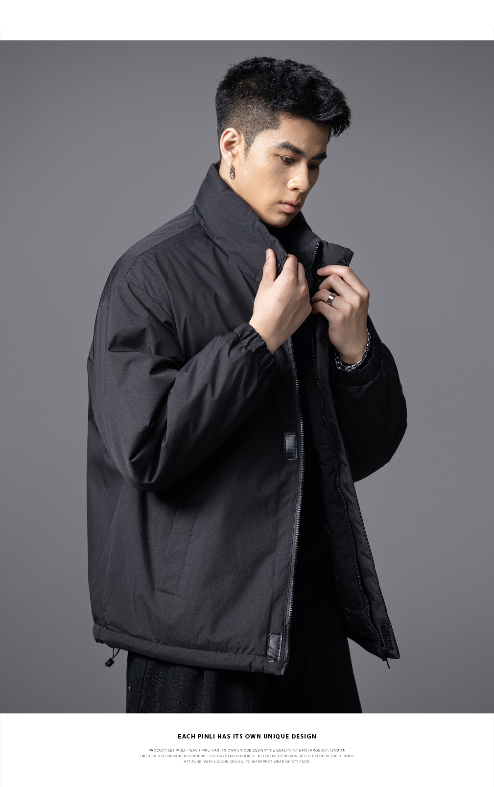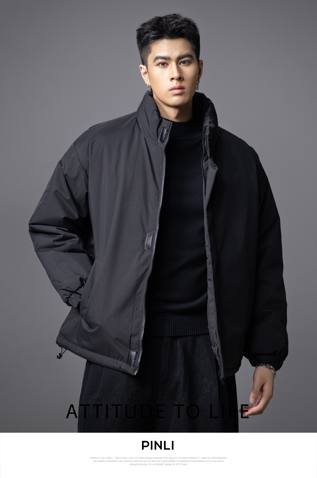 PINLI品立2025秋冬新款宽松立领短款棉衣男纯色潮牌百搭棉服外套GD253105099