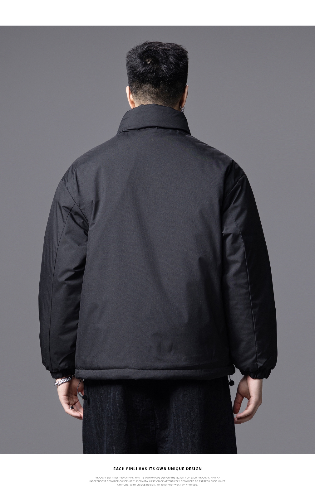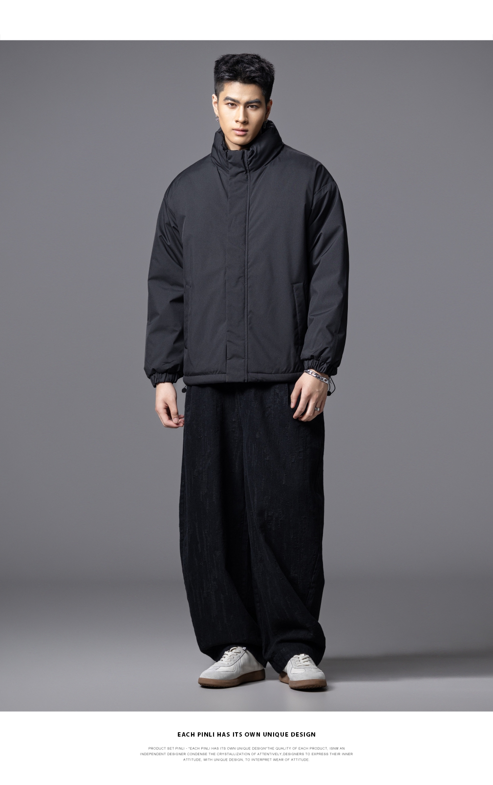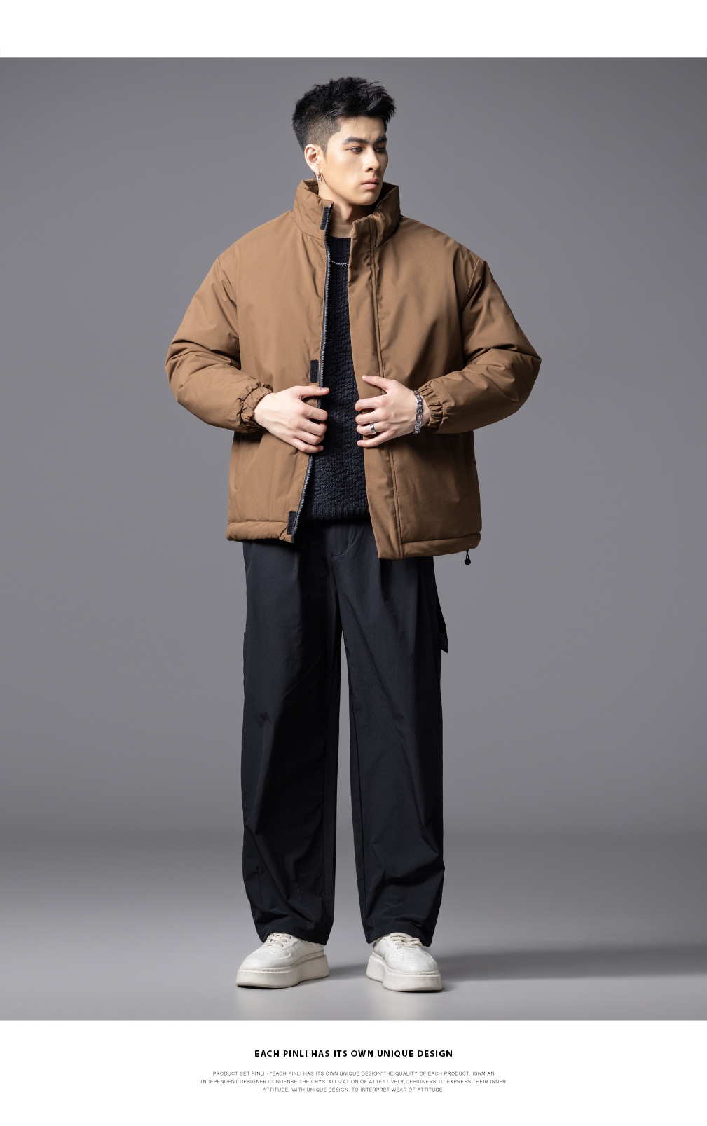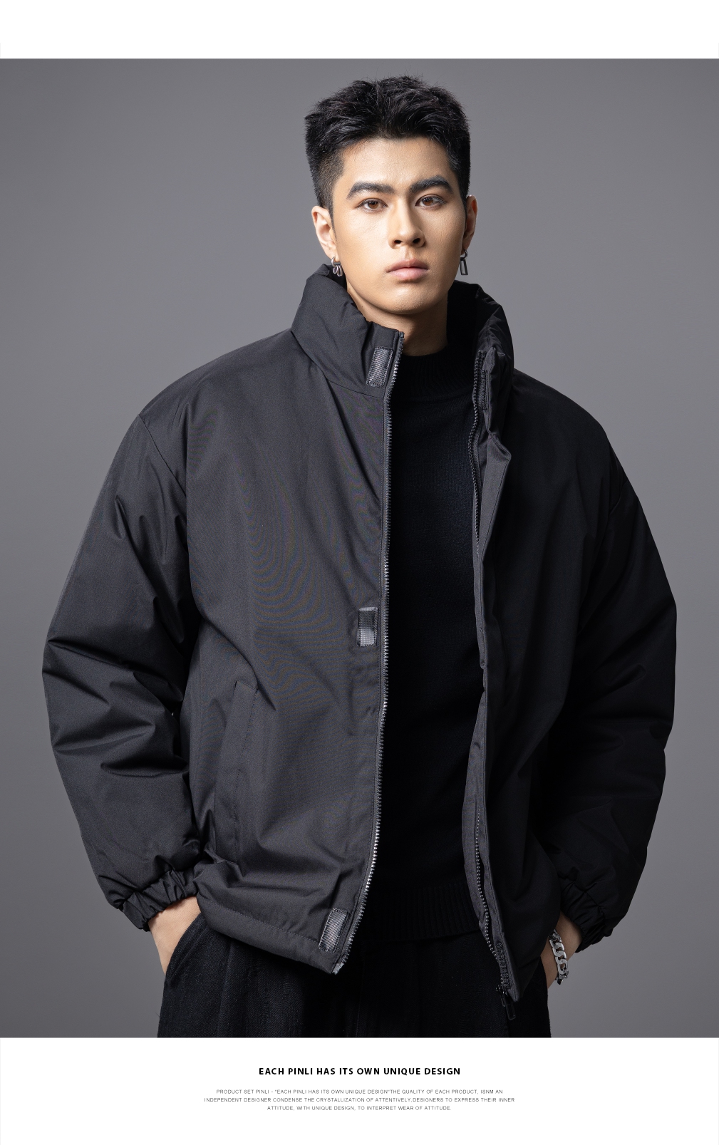PINLI品立2025秋冬新款宽松立领短款棉衣男纯色潮牌百搭棉服外套GD253105099