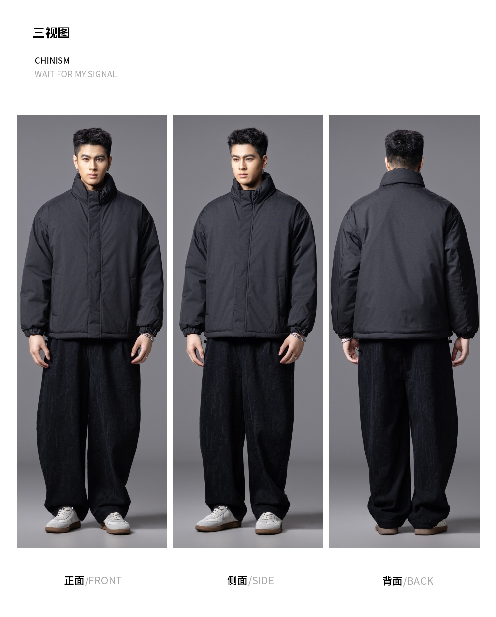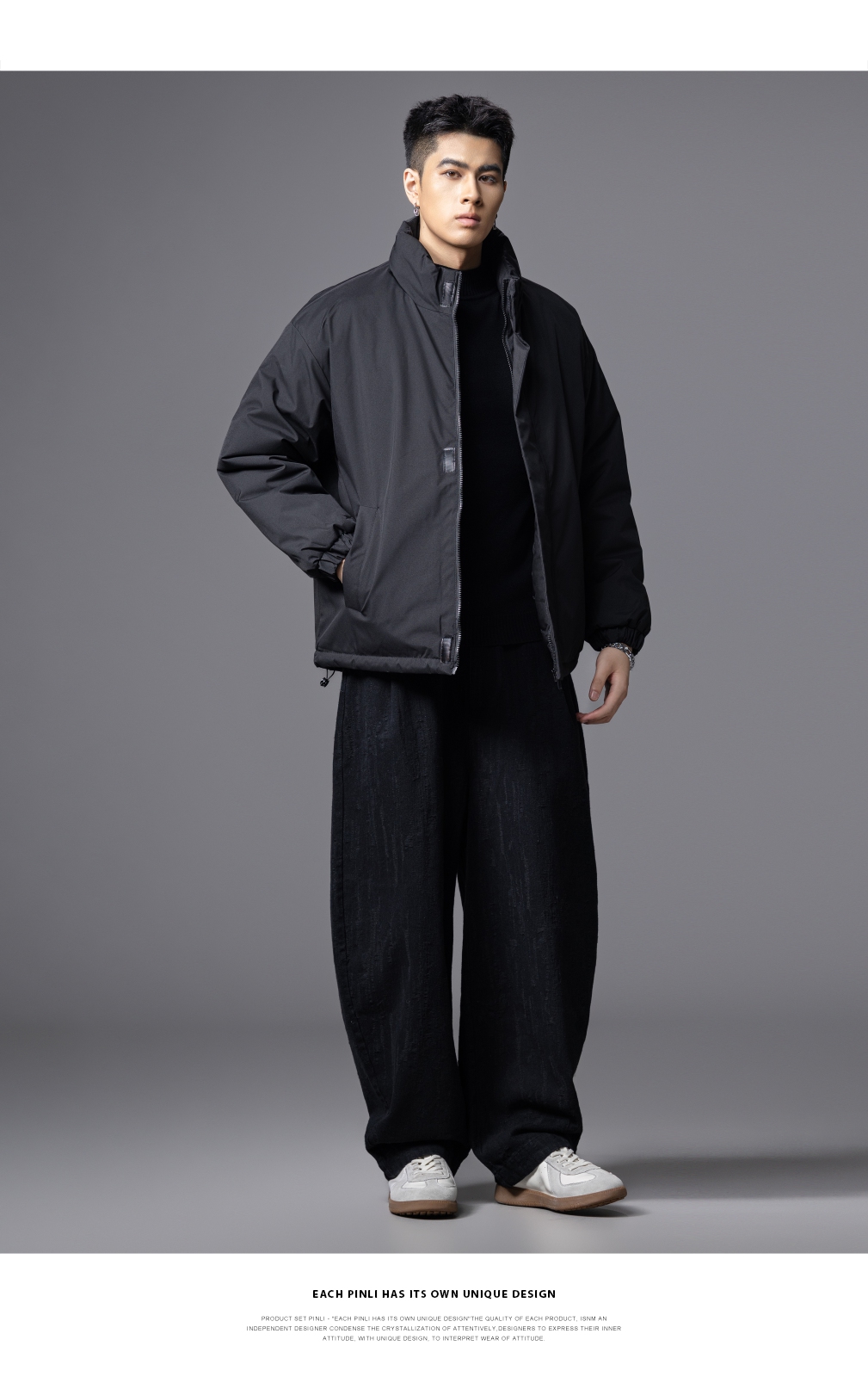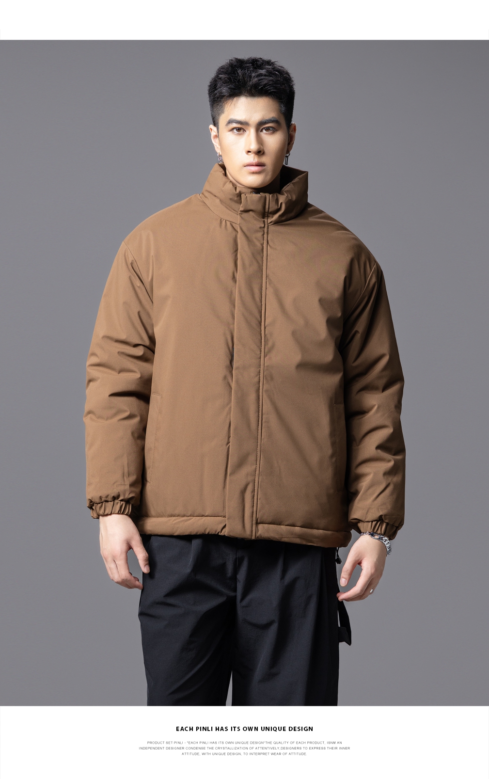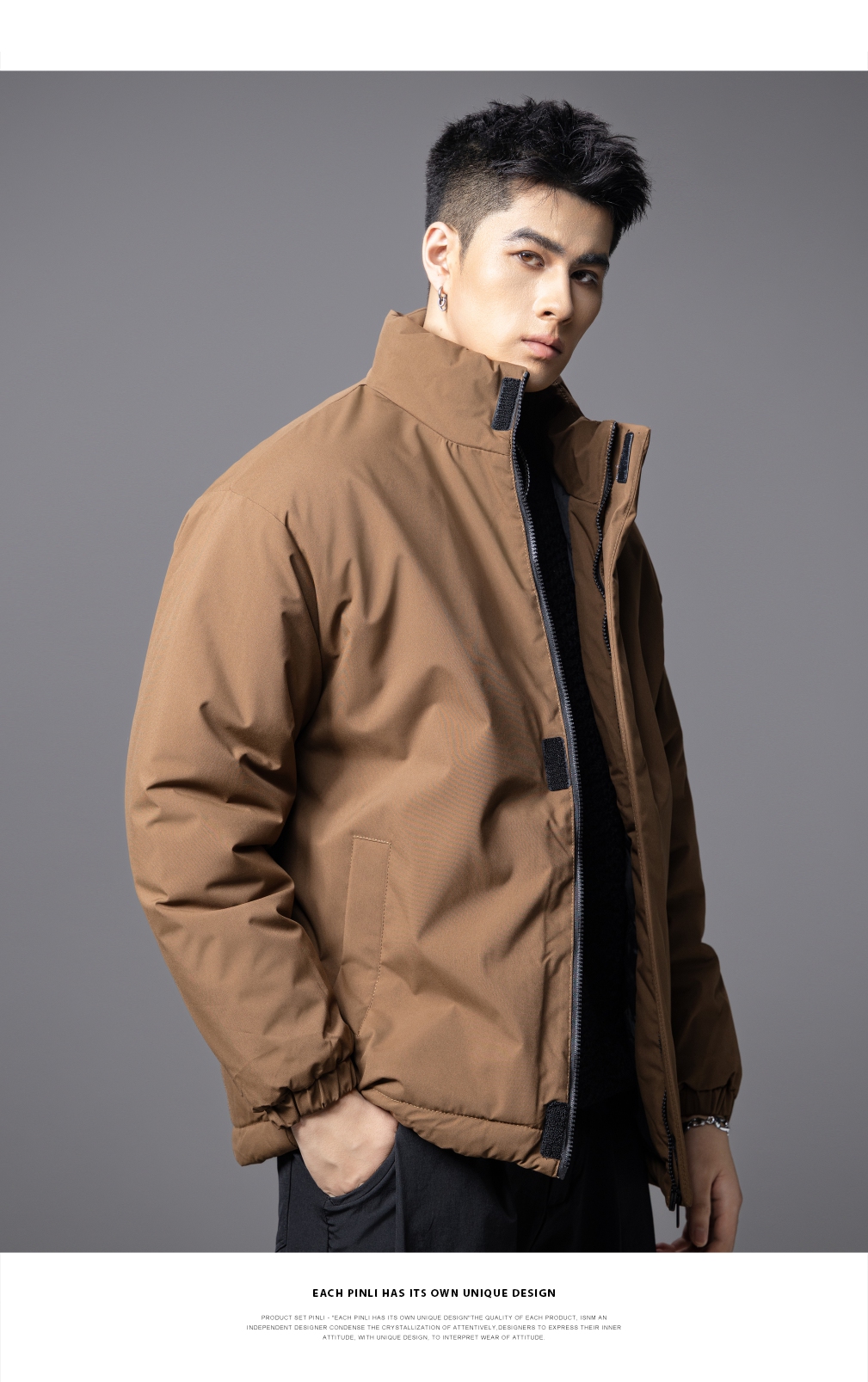 PINLI品立2025秋冬新款宽松立领短款棉衣男纯色潮牌百搭棉服外套GD253105099
