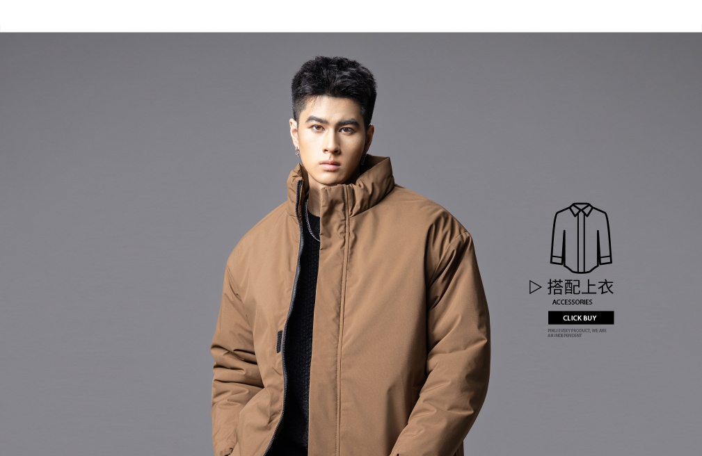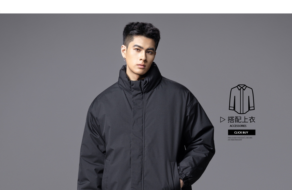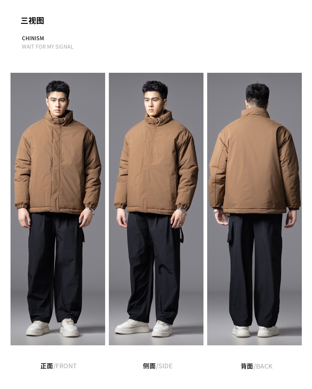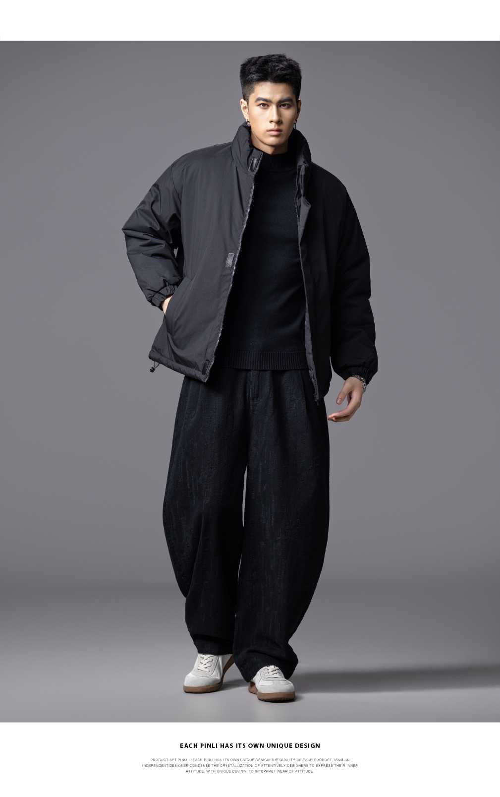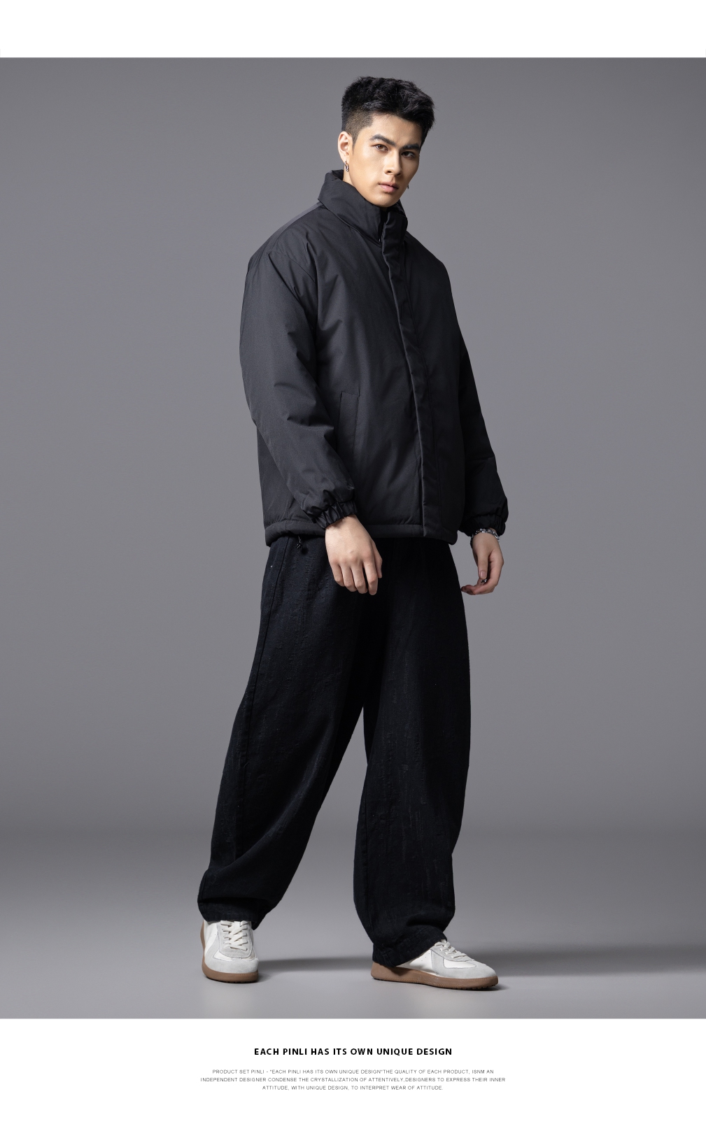 PINLI品立2025秋冬新款宽松立领短款棉衣男纯色潮牌百搭棉服外套GD253105099