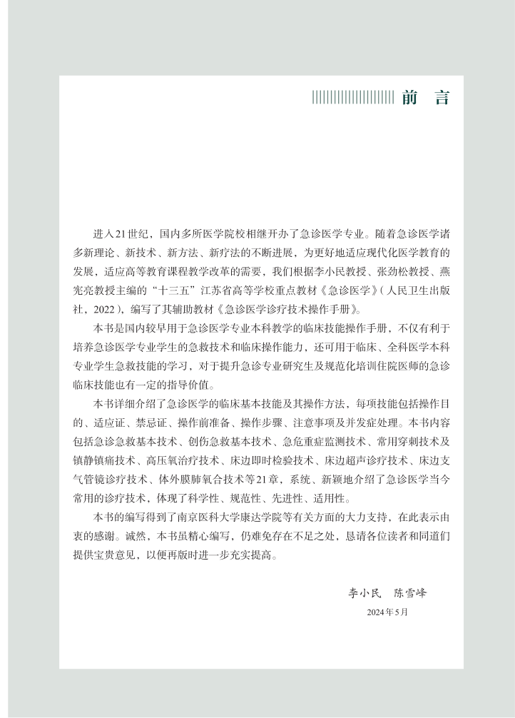 《急诊医学诊疗技术手册》约15万字,内容全面、实用,涵盖了当今急诊医学常用的诊疗技术与近期新的临床急救技能,如床边检测技术、床旁超声诊疗技术、镇静镇痛技术、体外膜肺氧合技术等,科学性、实用性强,为急诊医学专业本科生、研究生、各级急诊医师必须学习和掌握的内容。本手册体现了“三基本”教学理念,重在强化临床实践教学和技能学习,填补了急诊医学专业技能的缺乏和不足。