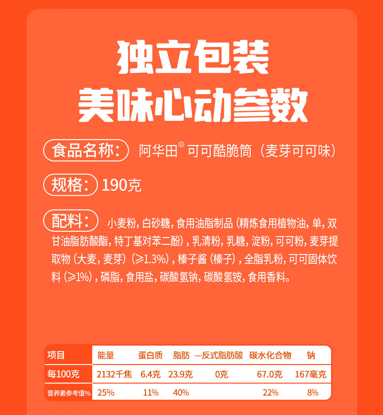 阿华田可可酷脆筒190g*1袋(单位:袋)