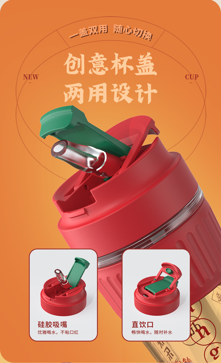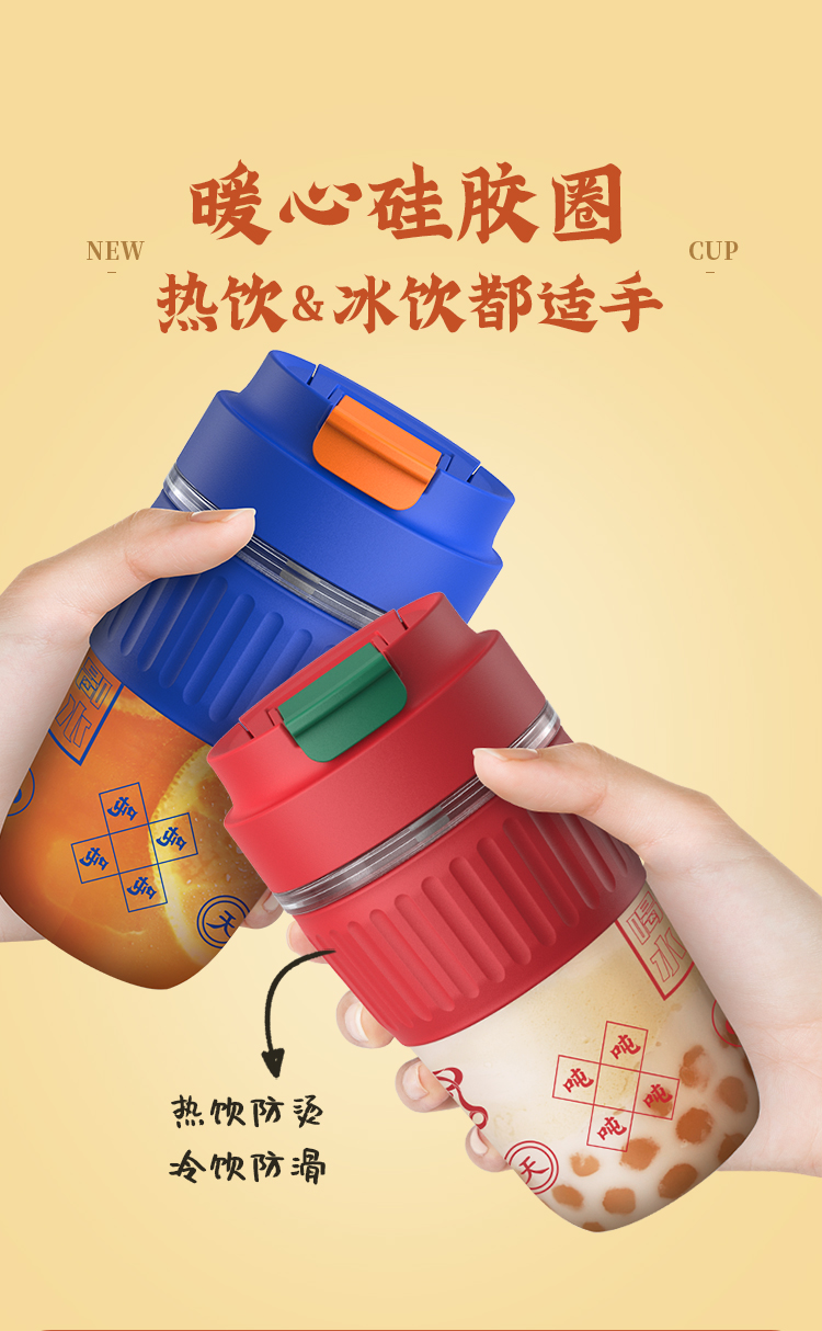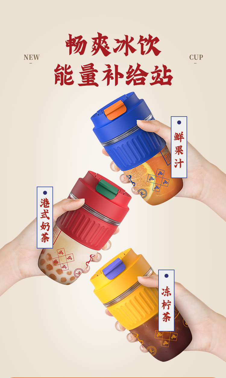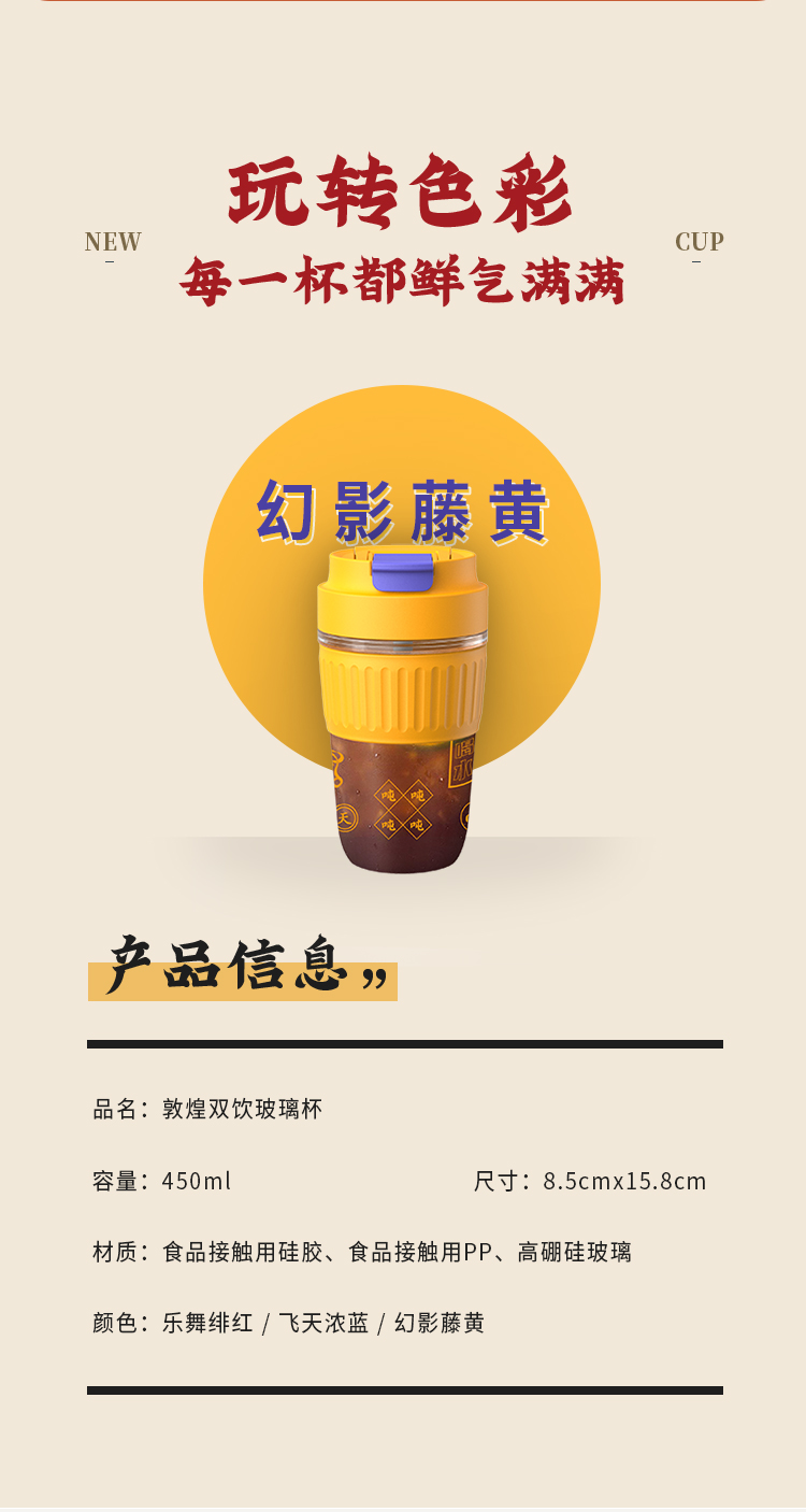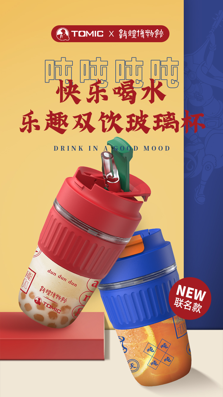 特美刻(TOMIC)敦煌联名玻璃水杯手持咖啡杯男女学生背带便携吸管杯随手茶水杯子 TG82028 乐舞绯红