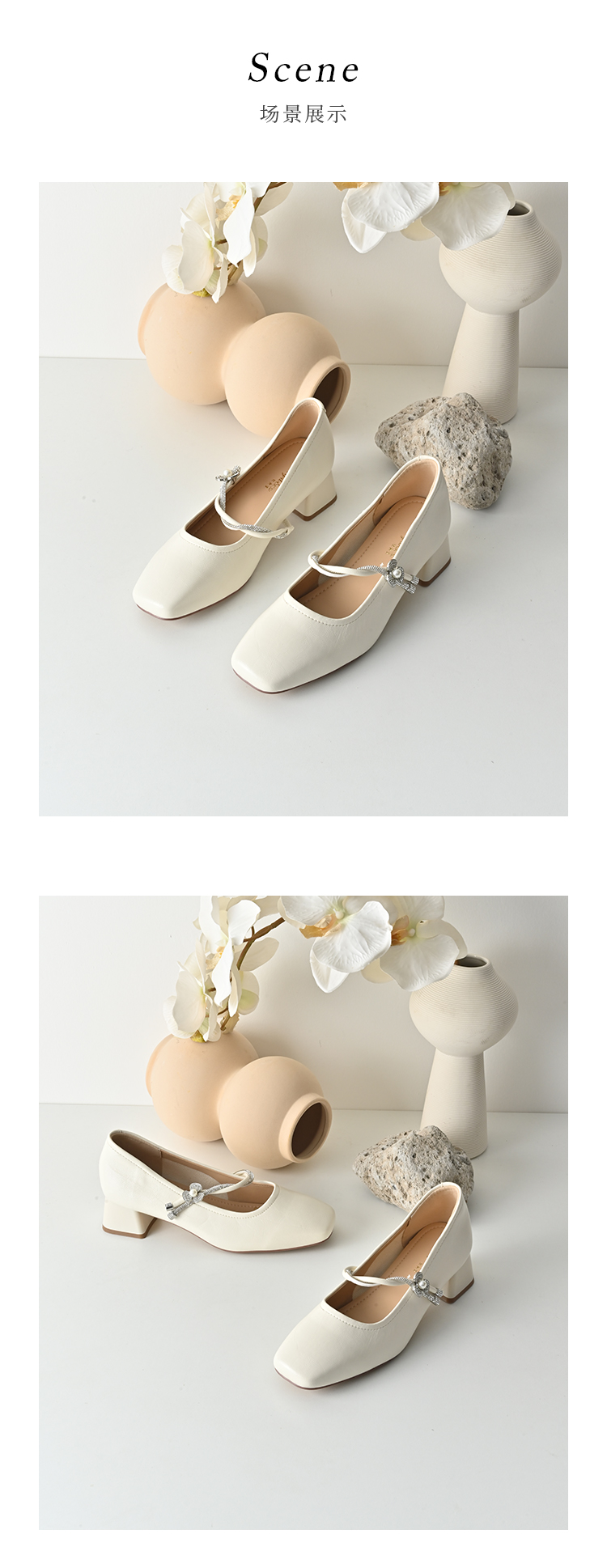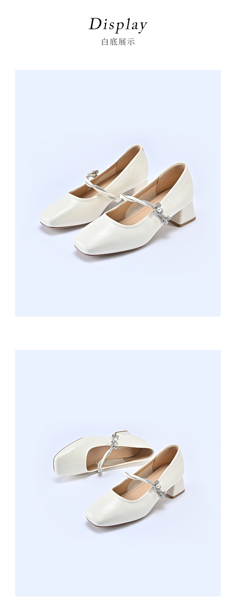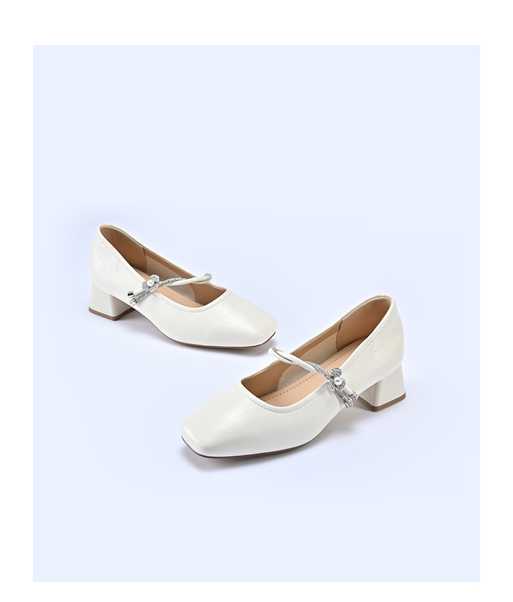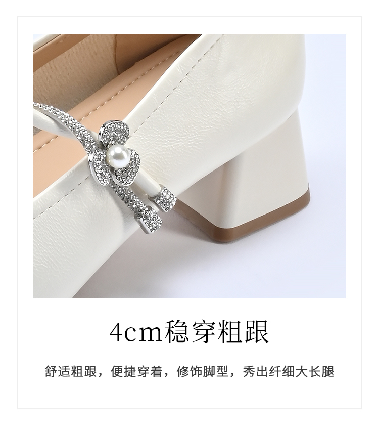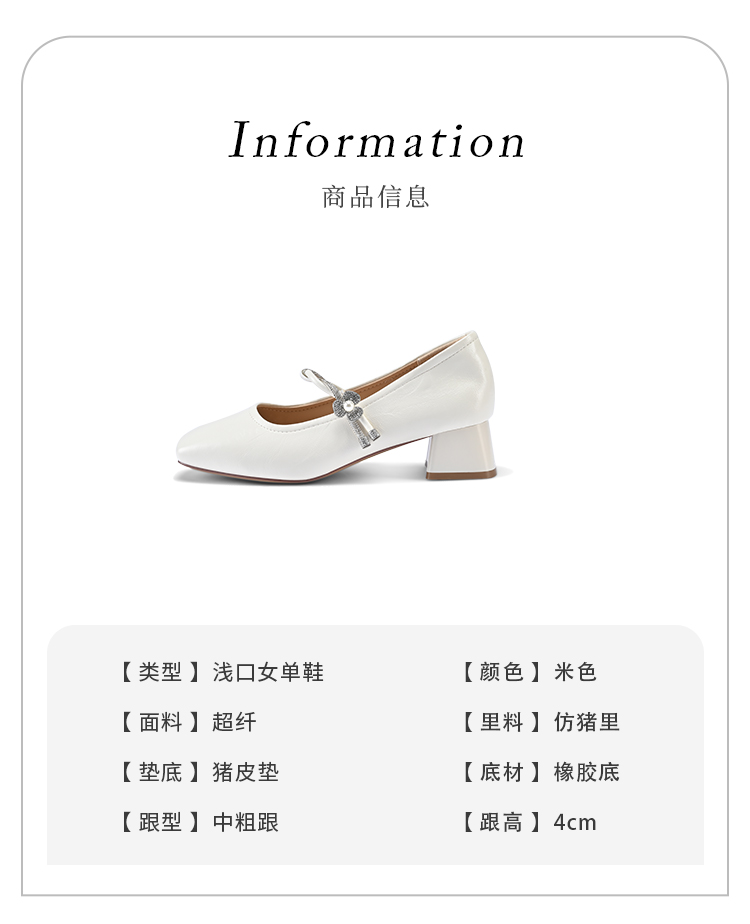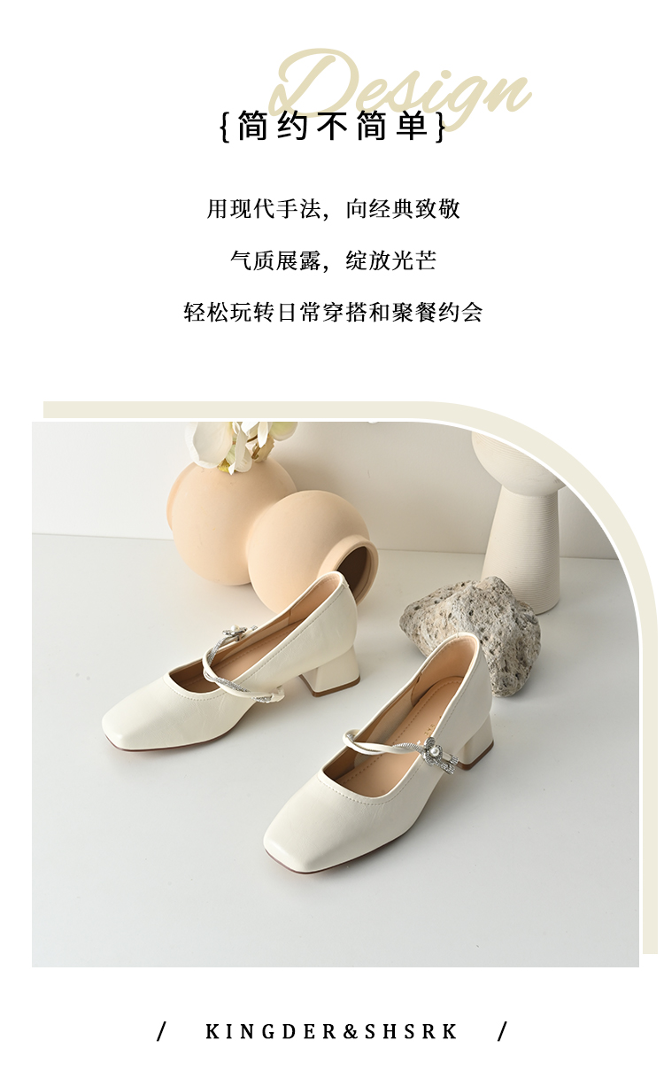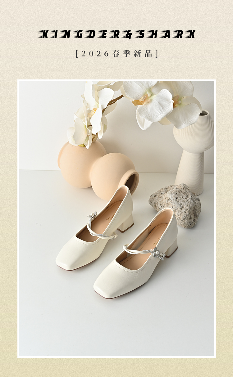 经典鲨2026年春专柜新品时尚方头4cm粗跟甜美花朵水钻单鞋女KW119-617011