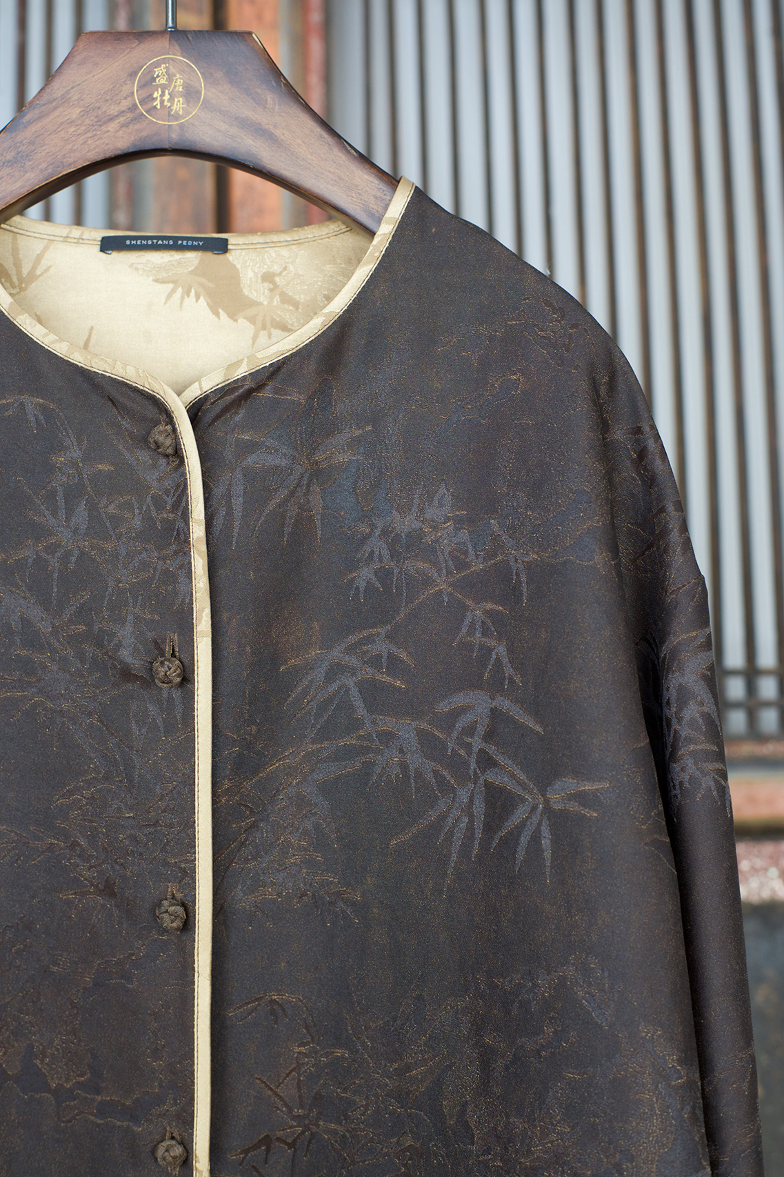 盛唐牡丹 |风清影竹重缎香云纱外套