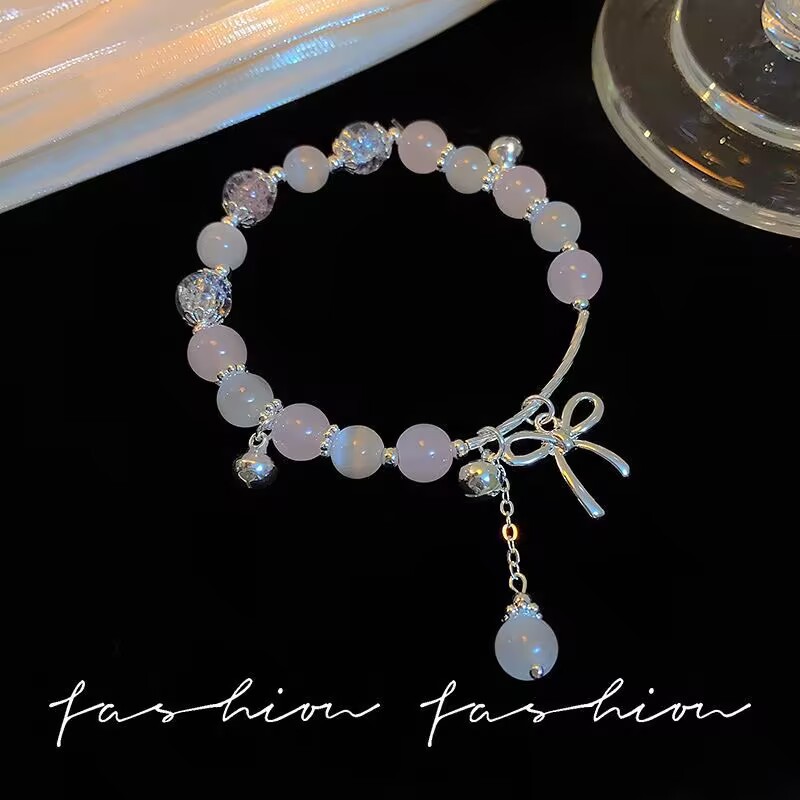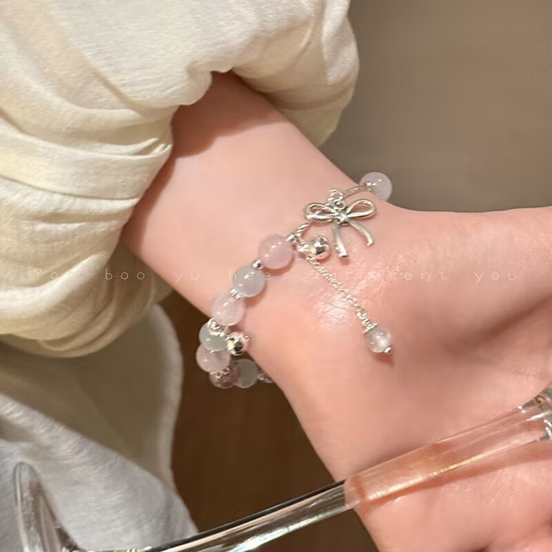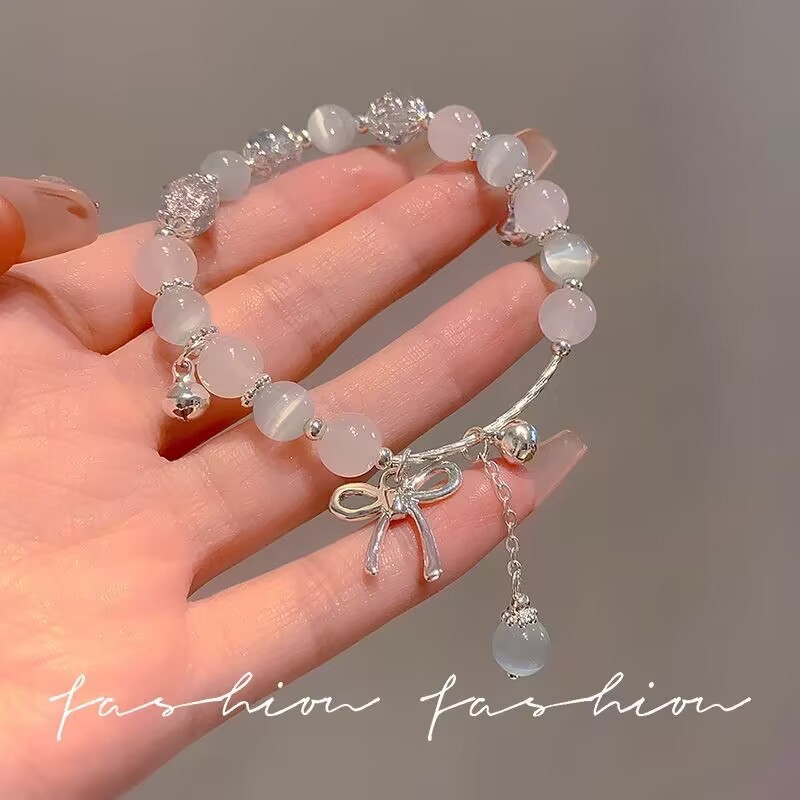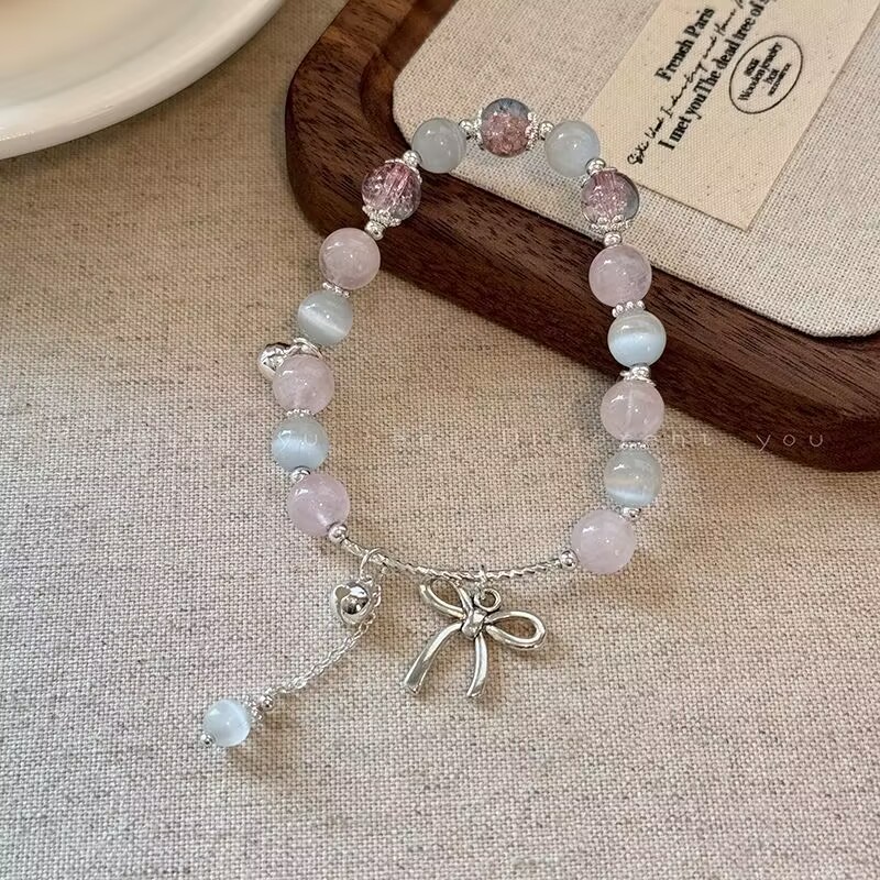 【9.9元抢❗️猫眼石蝴蝶结爱心手链】甜美必戴~琉璃蝴蝶结爱心手串ins风,小众百搭手串2025新款高级感串珠手饰QQ手工饰品情人节礼物