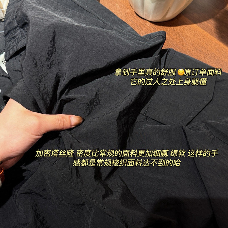 订单面料 北的胚布原纱都经过加密处理 整个的手感质地会更加细腻柔滑 透气干爽 穿着舒适度很高