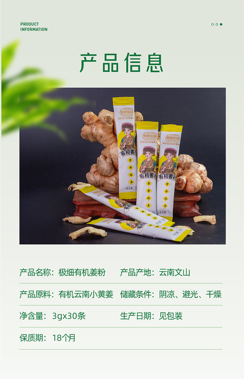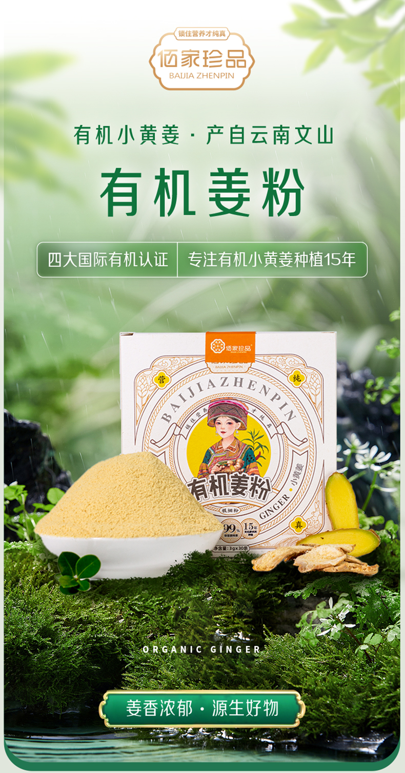24国有机认证云南有机生小黄姜粉生姜粉 90g
