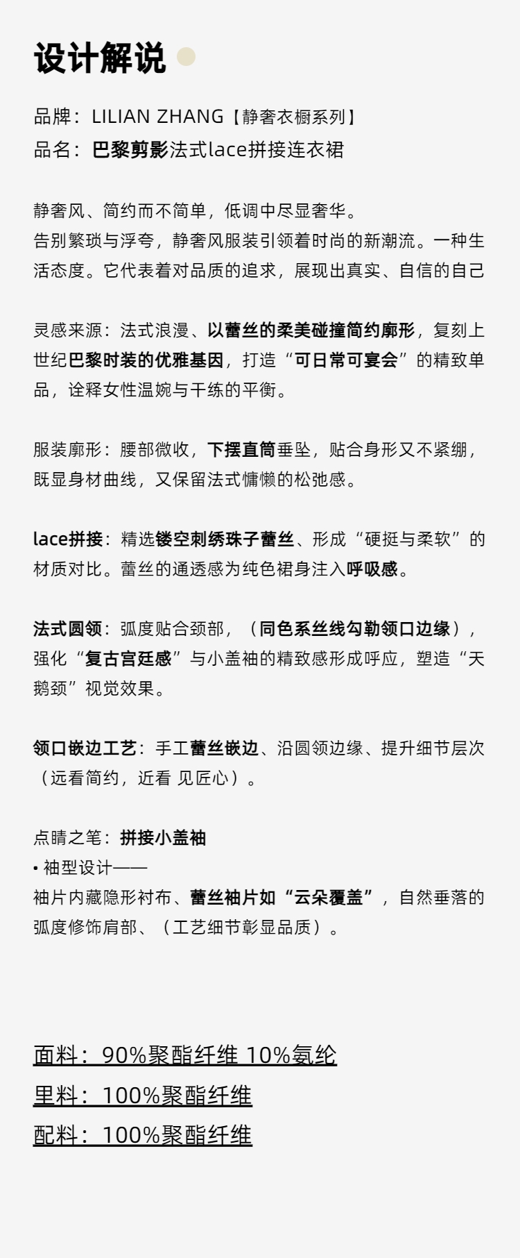 E“定制”——静奢风———巴黎剪影——法式lace拼接优雅连衣裙 2501029