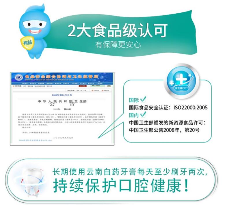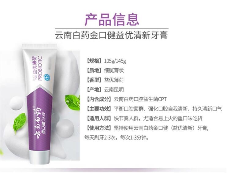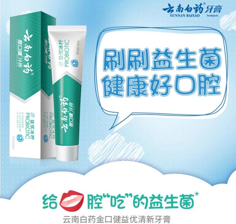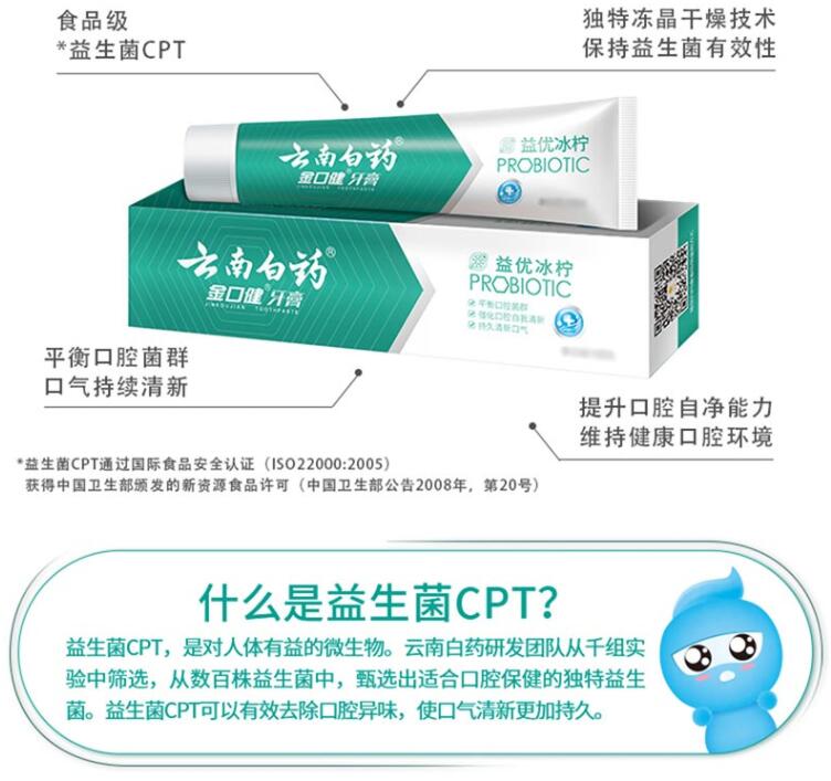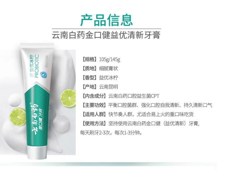 云南白药金口健牙膏益优焕白105g酷爽冬青香型清新口气减轻牙渍