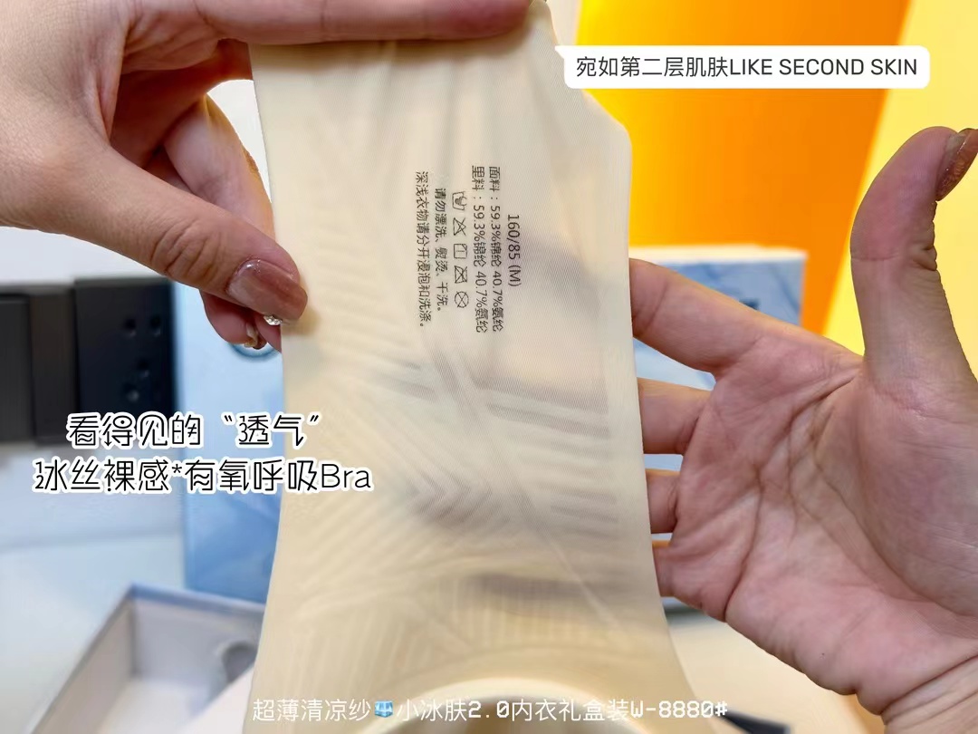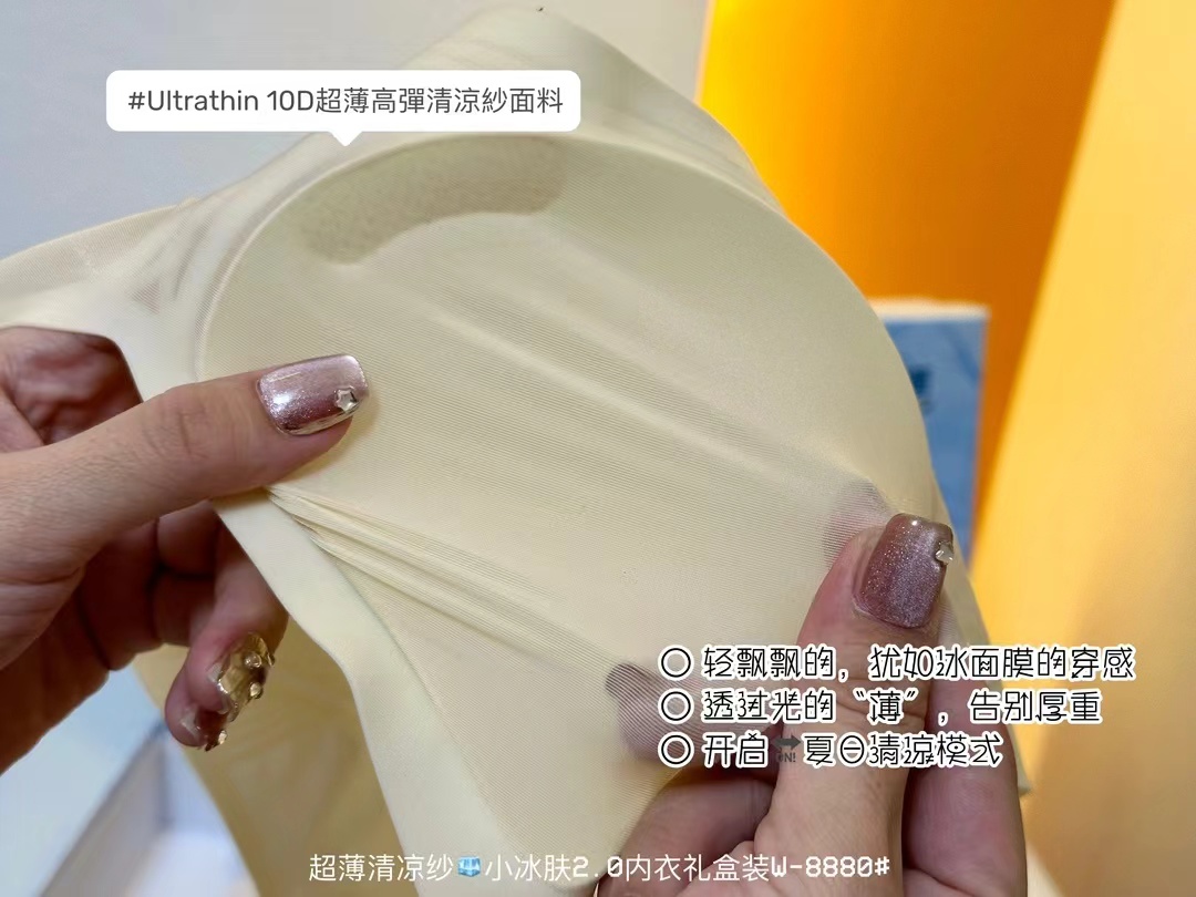 10D超薄清凉纱冰超薄透气内衣~春夏怕热专属~内衣届的天花版,去年自留了4件,太舒服了。它每一根纱线用到的都是比头发丝还要细的纤维~真的好细腻!个人认为夏天内衣最舒服之一