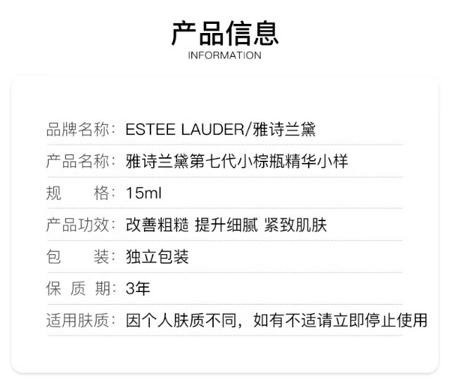 【双12限时福利】雅诗兰黛小棕瓶第七代精华液15ml 补水保湿滋润修护提亮淡纹