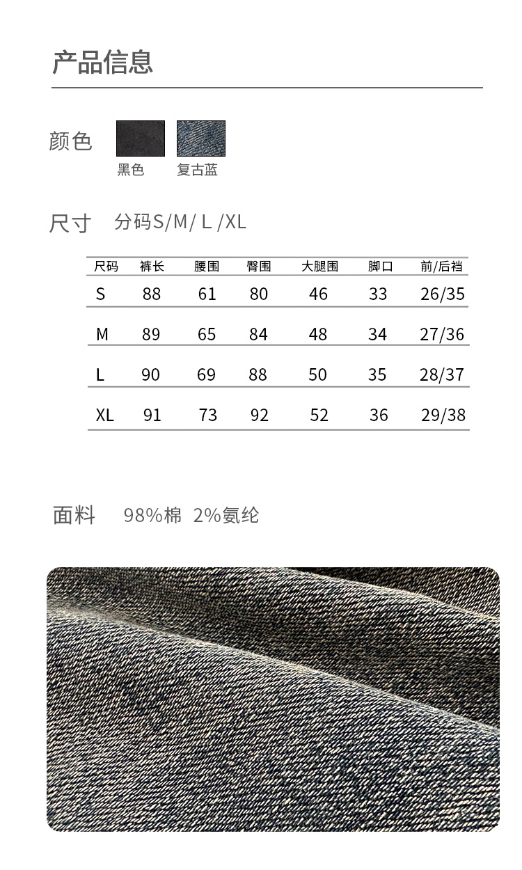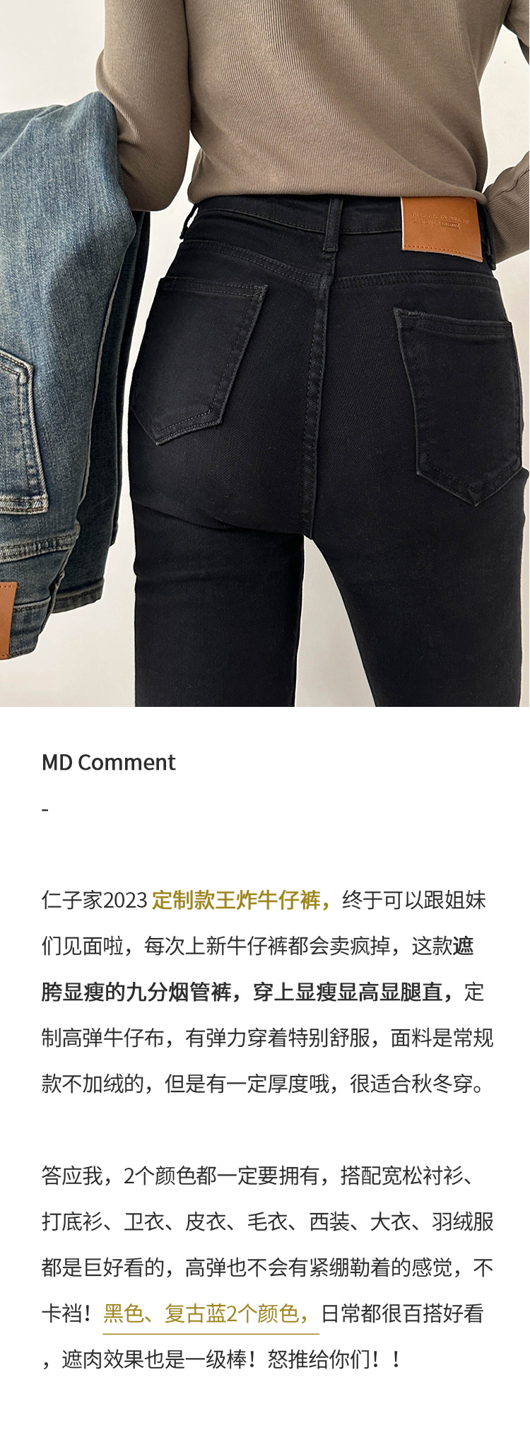 遮胯显瘦的九分烟管裤,高腰穿上显高显腿直!定制高弹牛仔布,适中厚度很适合秋冬穿,无紧绷感不卡裆,配打底衫、衬衫、毛衣、大衣、羽绒服都很好看!黑色/复古蓝 S/M/L/XL