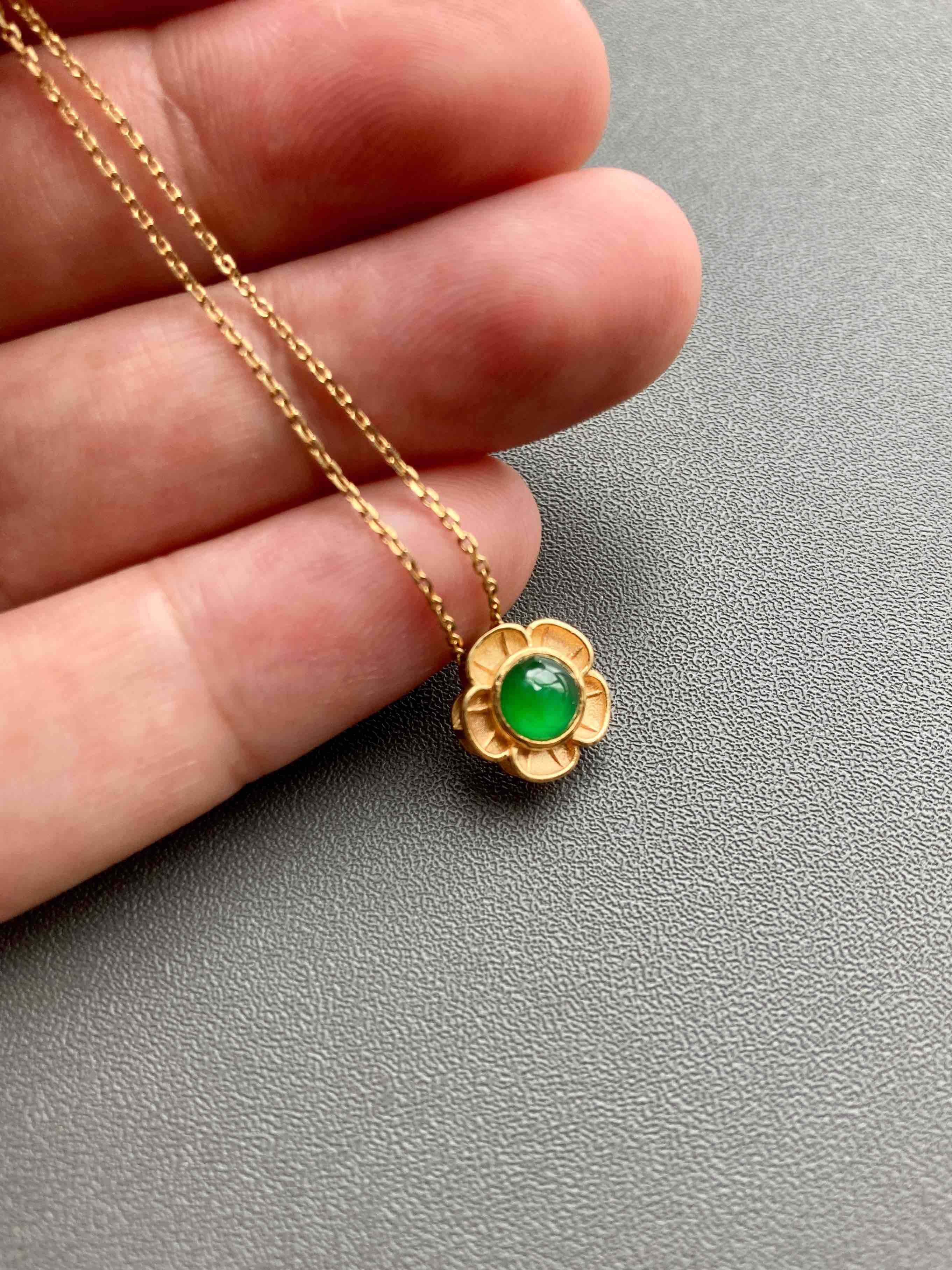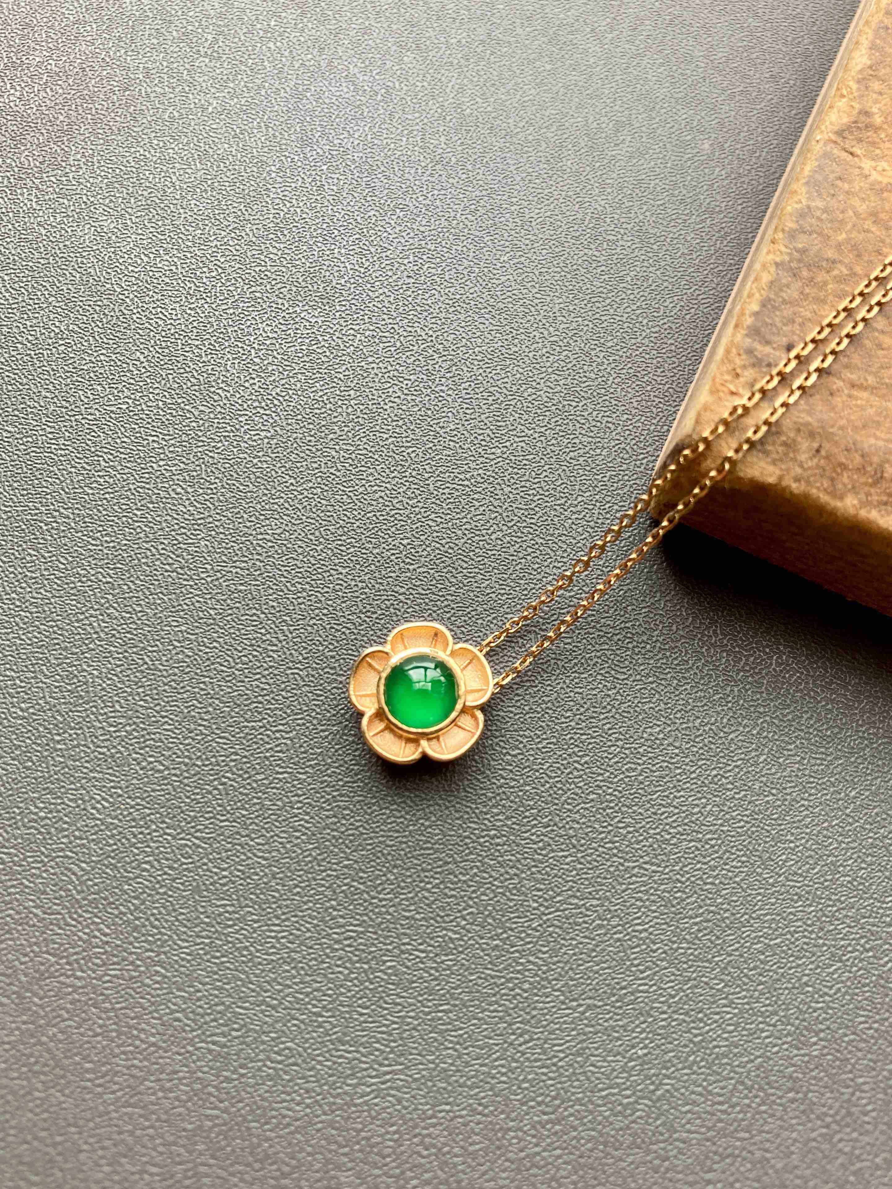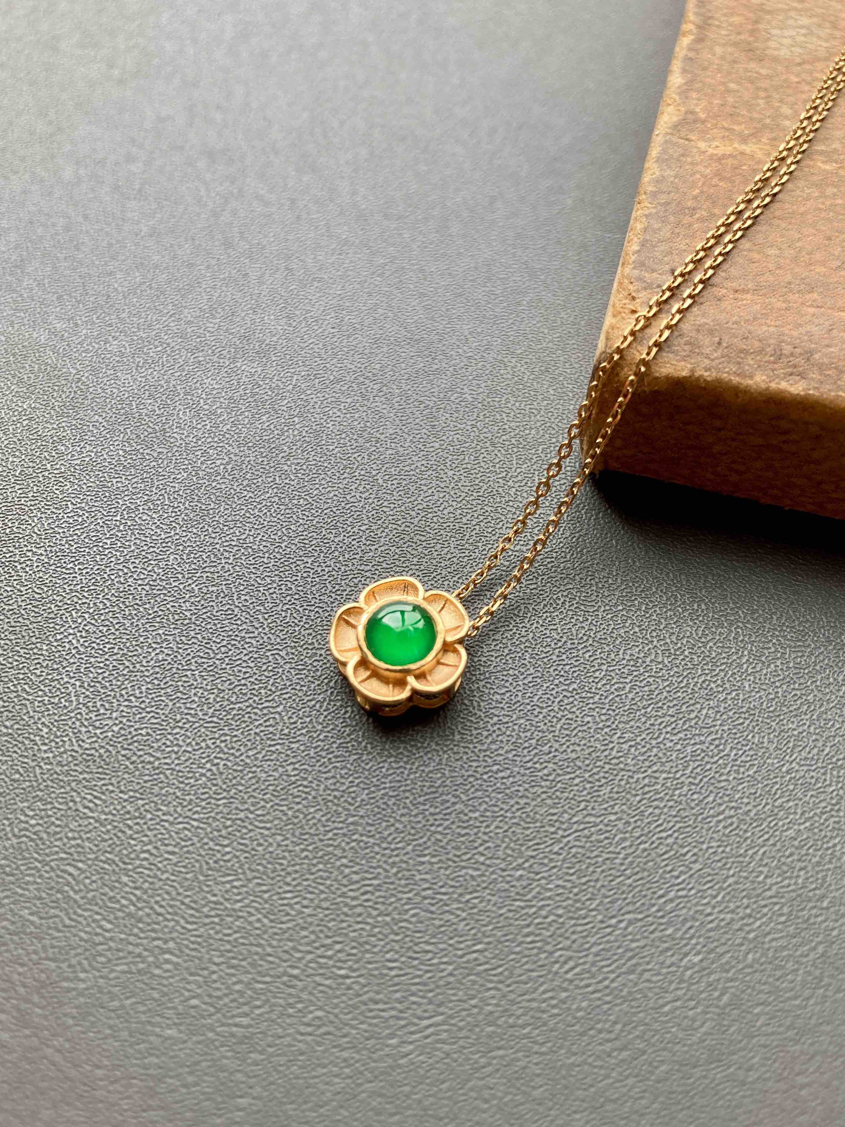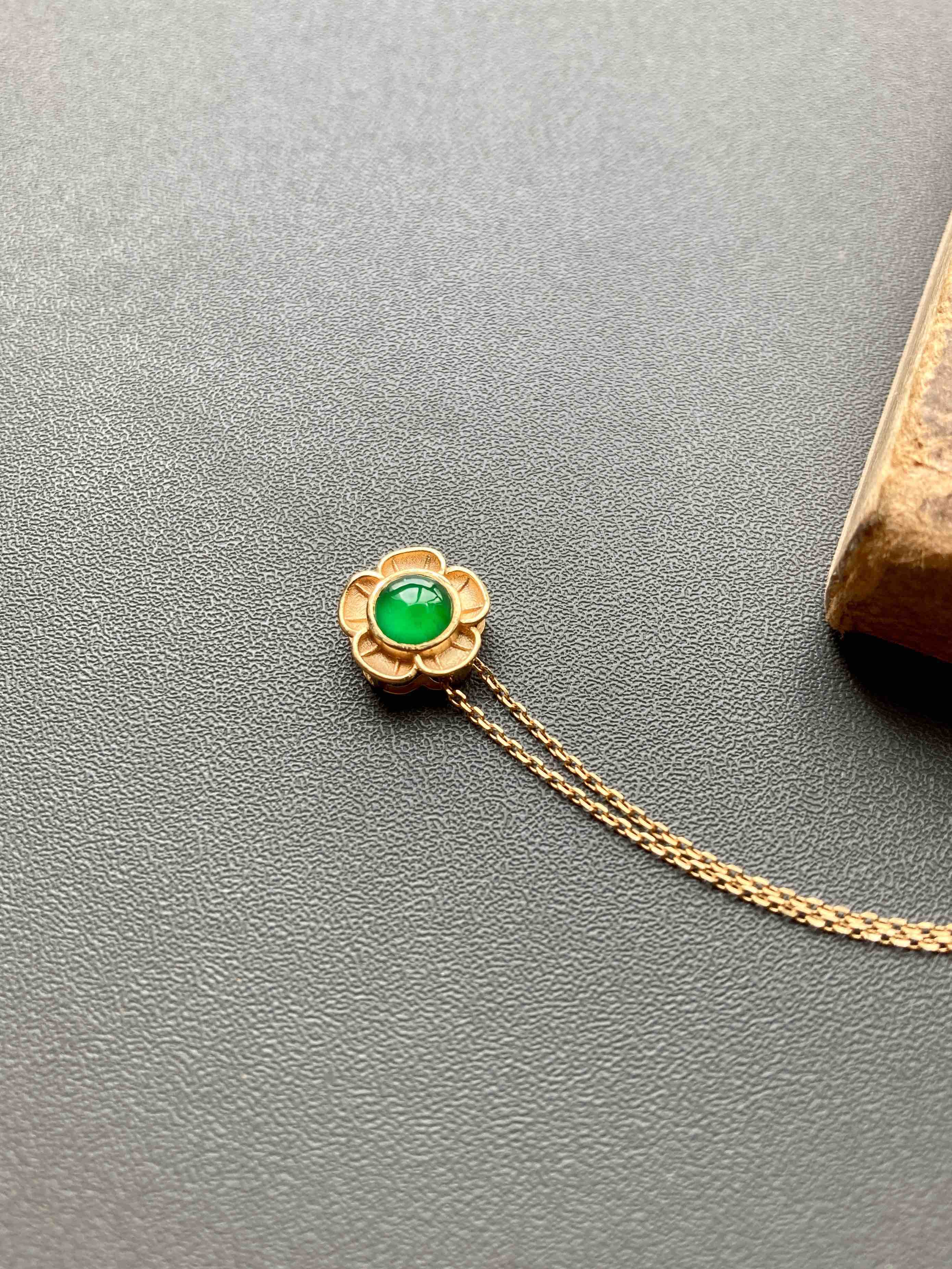 冰种阳绿翡翠小花项链18k黄金镶嵌
