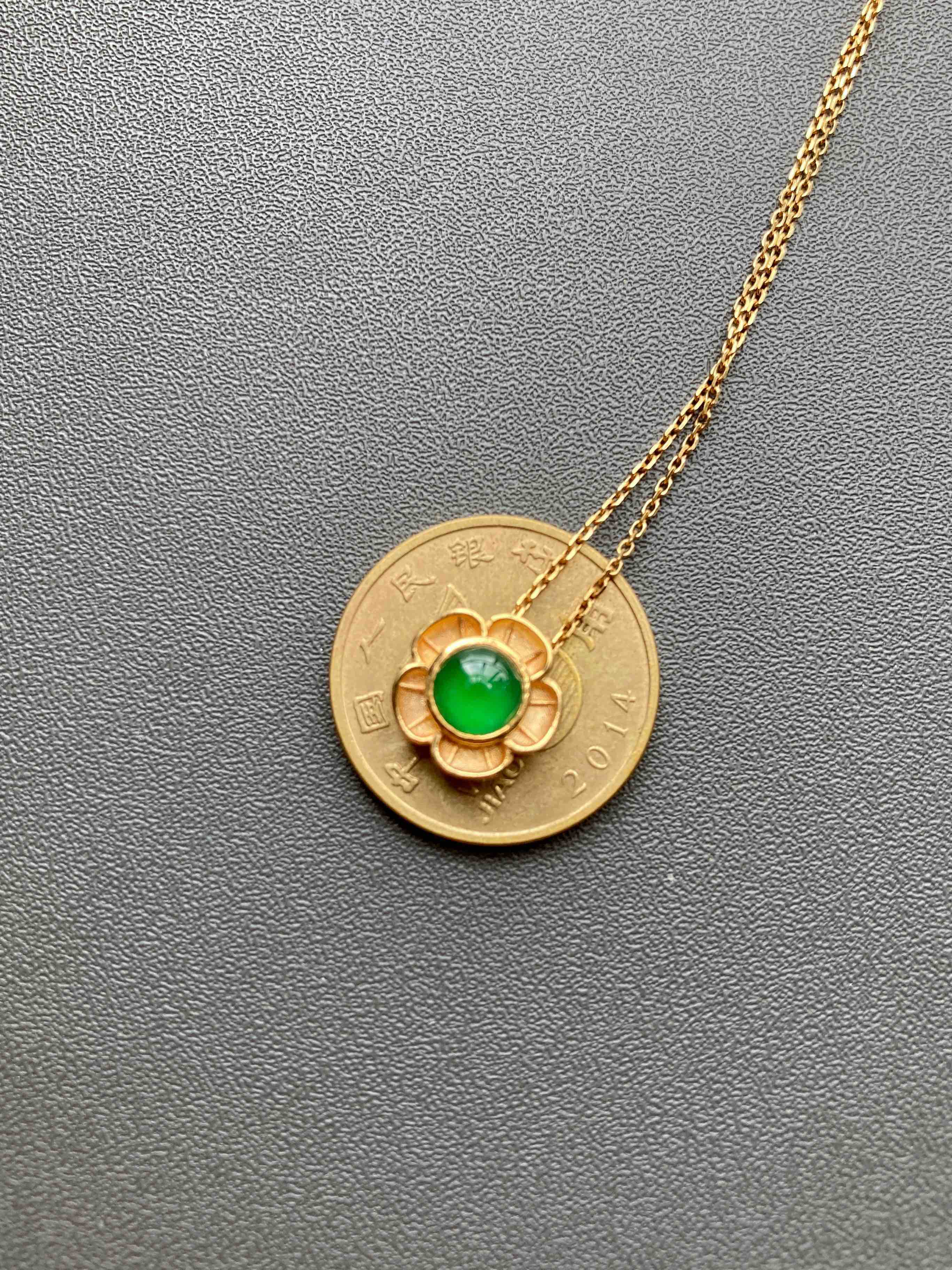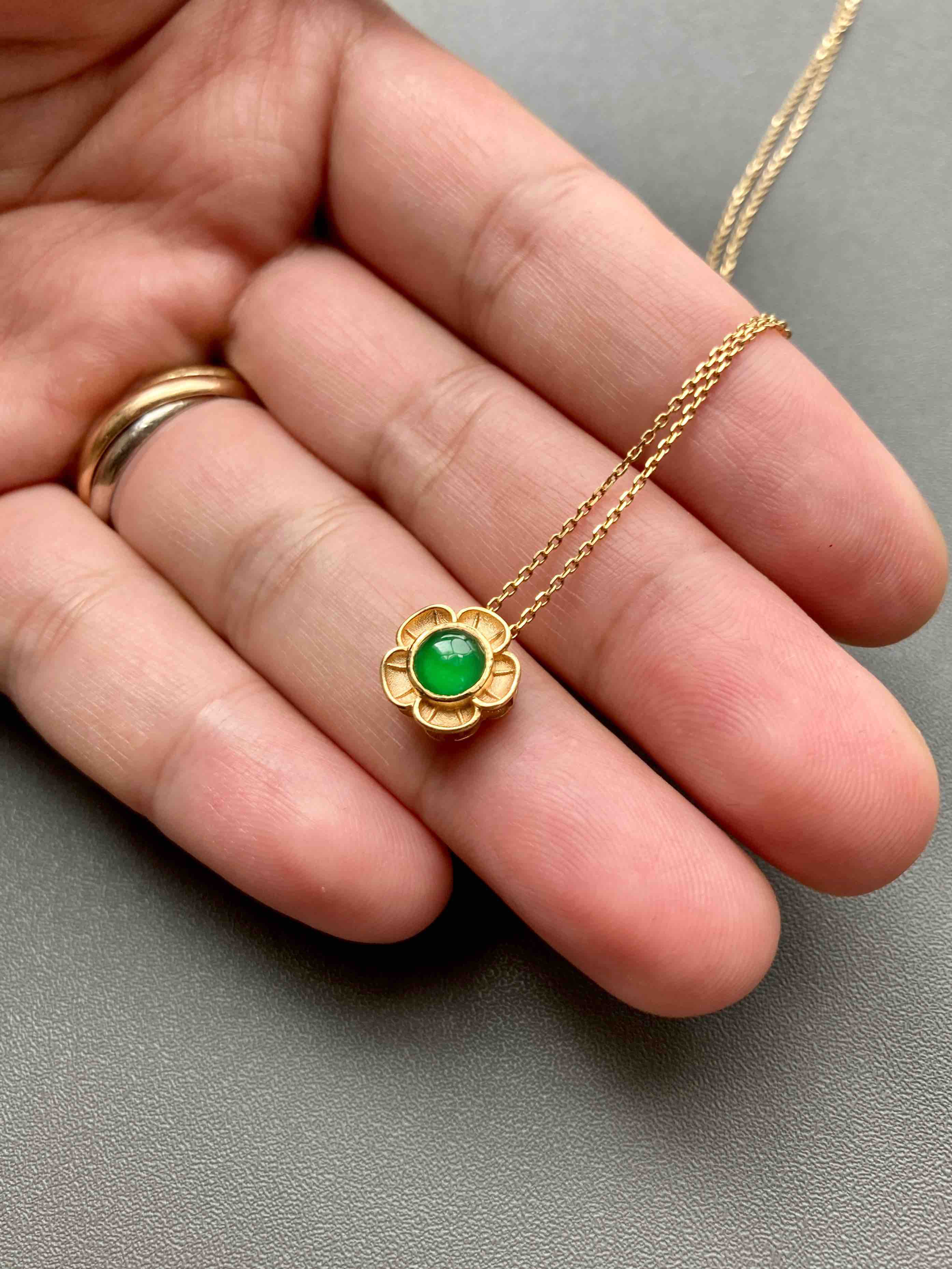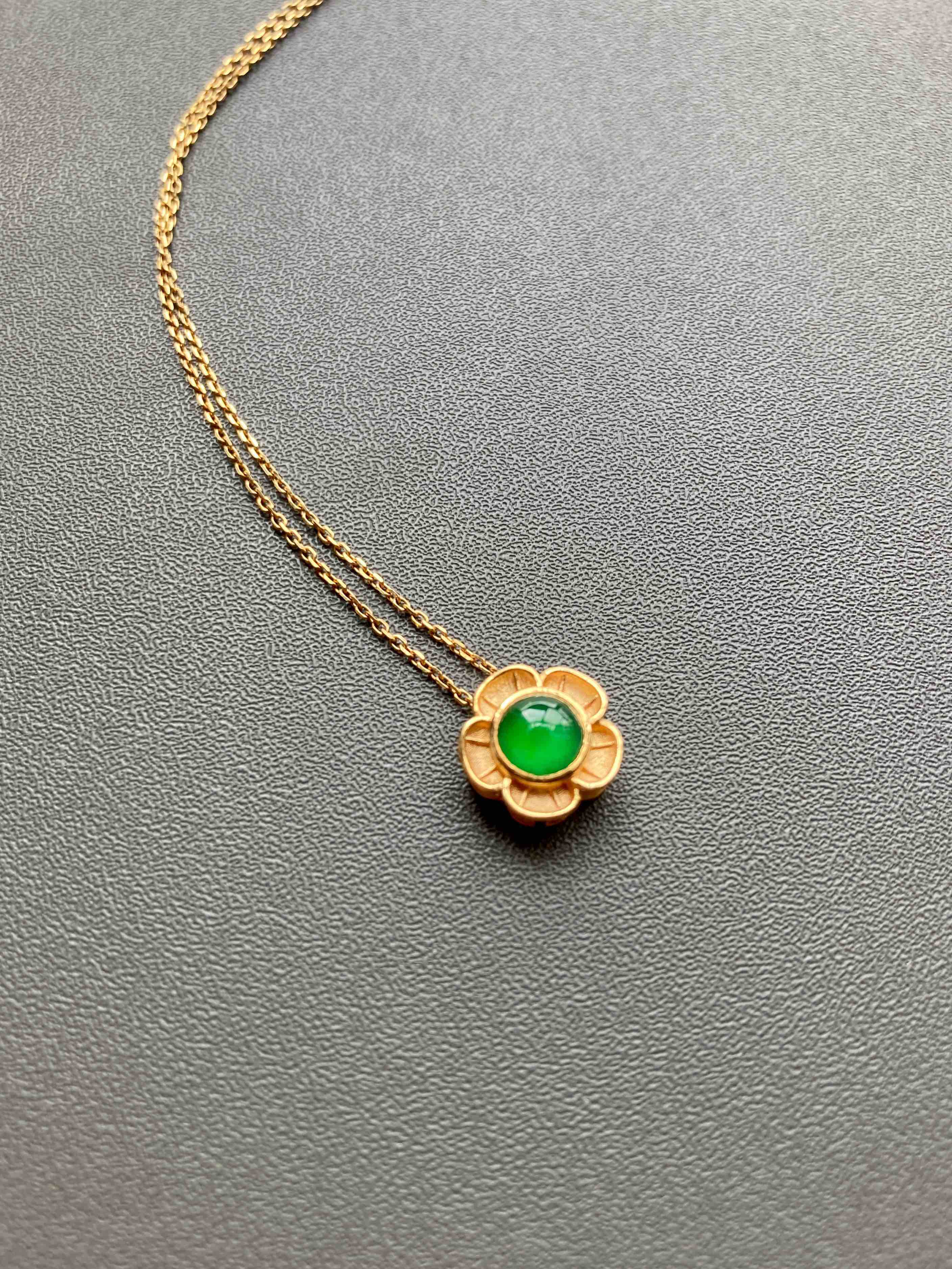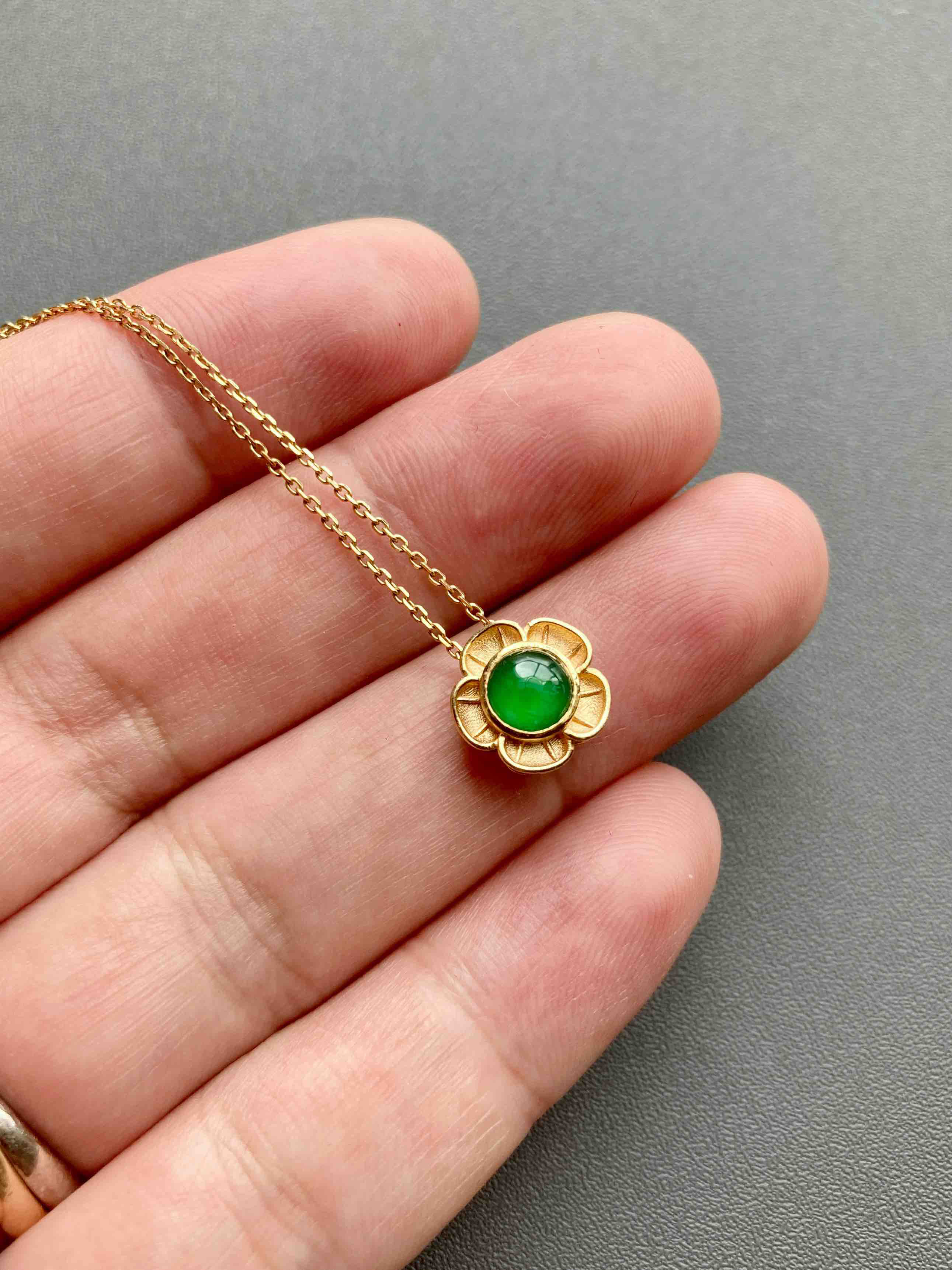 冰种阳绿翡翠小花项链18k黄金镶嵌