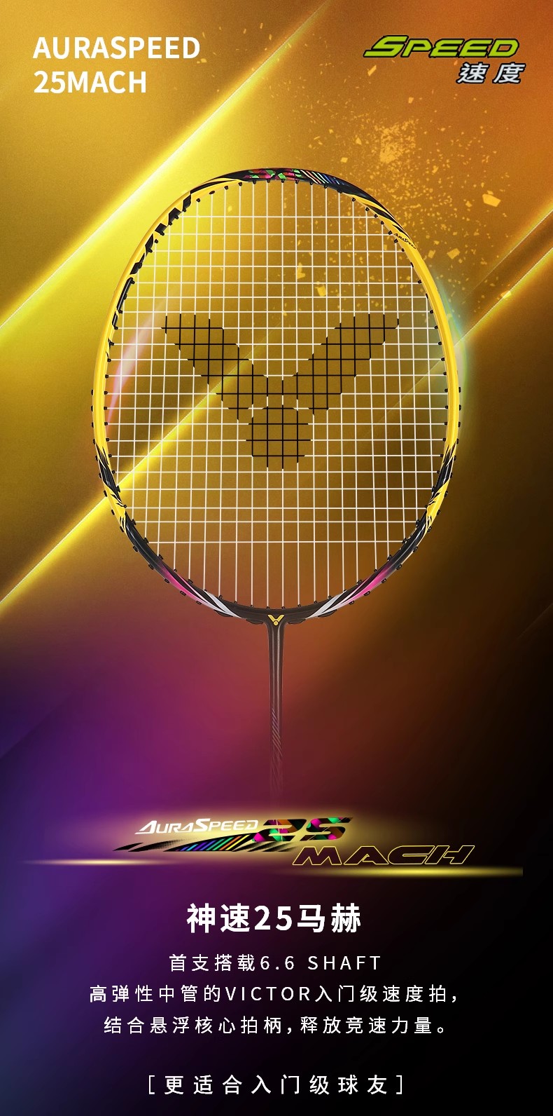 VICTOR威克多羽毛球拍单拍碳纤维入门速度型可拉高磅球拍 ARS-25MACH