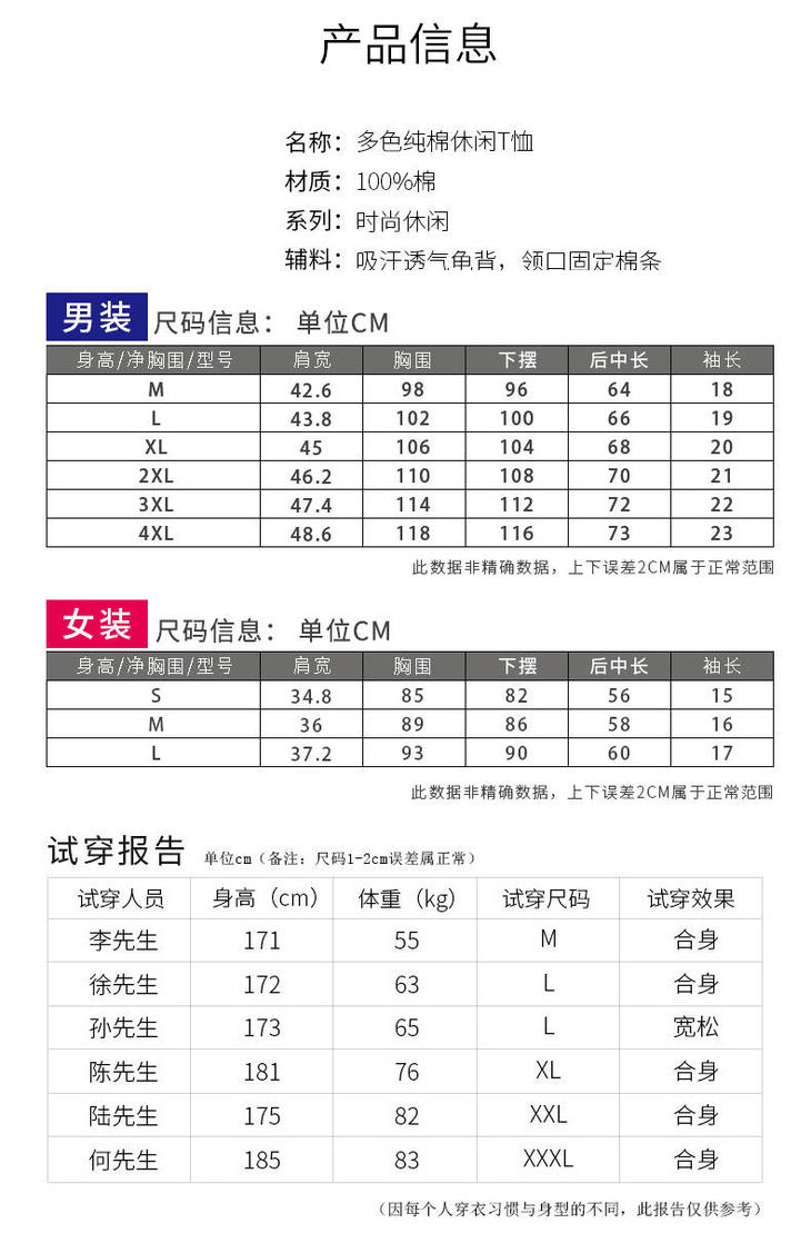 【吸汗排湿】棉短袖t恤男春夏新款T男生情侣装打底衫