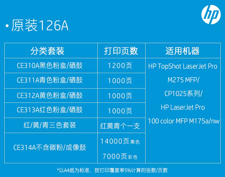 【惠普服务】惠普(HP)原装126A粉盒硒鼓CE314A成像鼓黑色CE310A硒鼓CE311A CE312A CE313ACP1025 1025nw M175a M175nw打印机