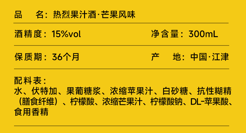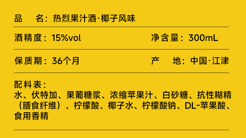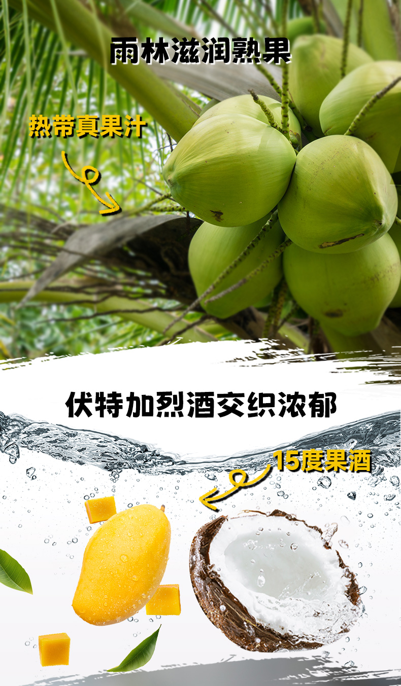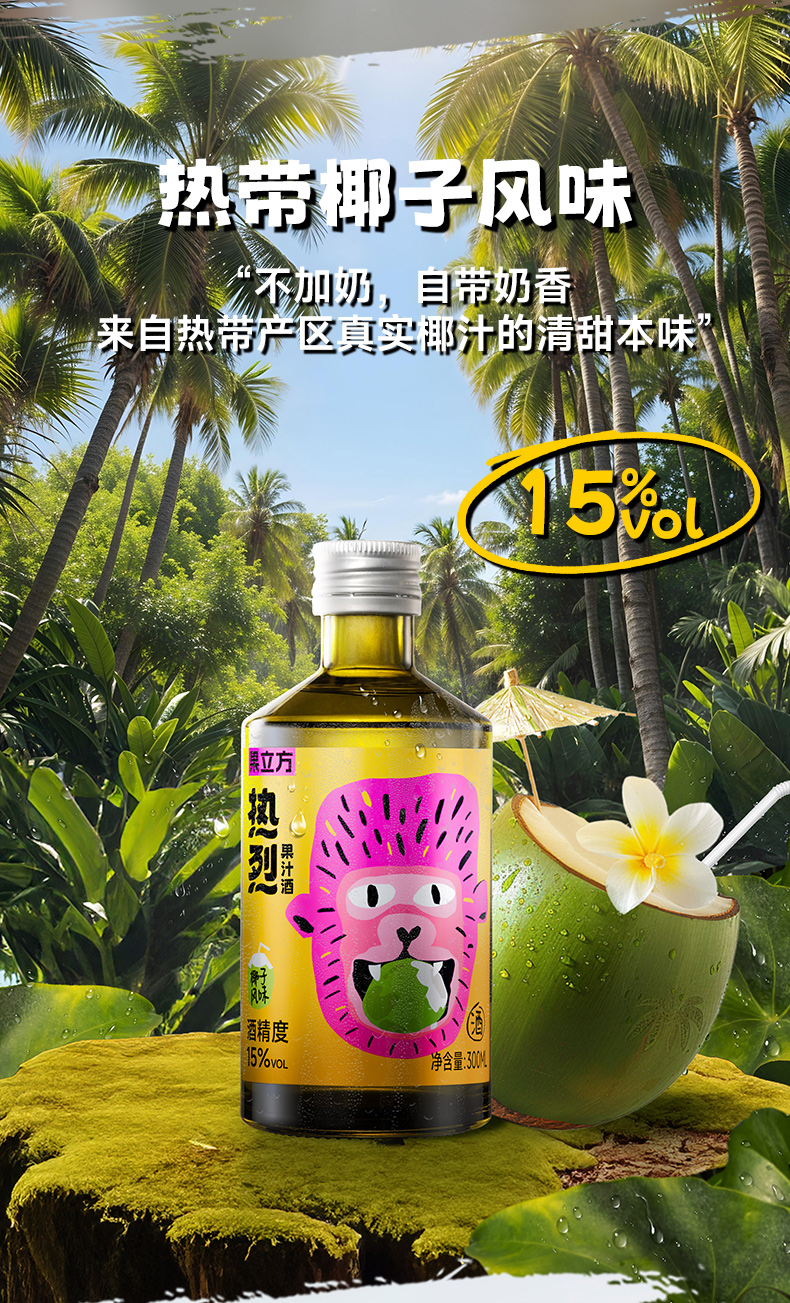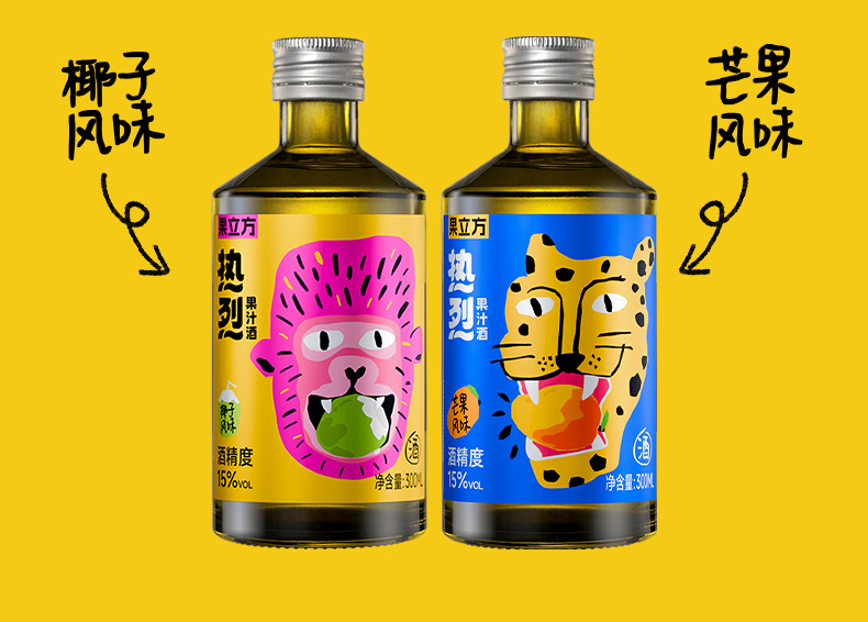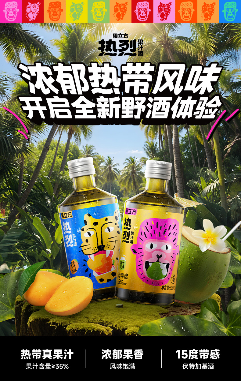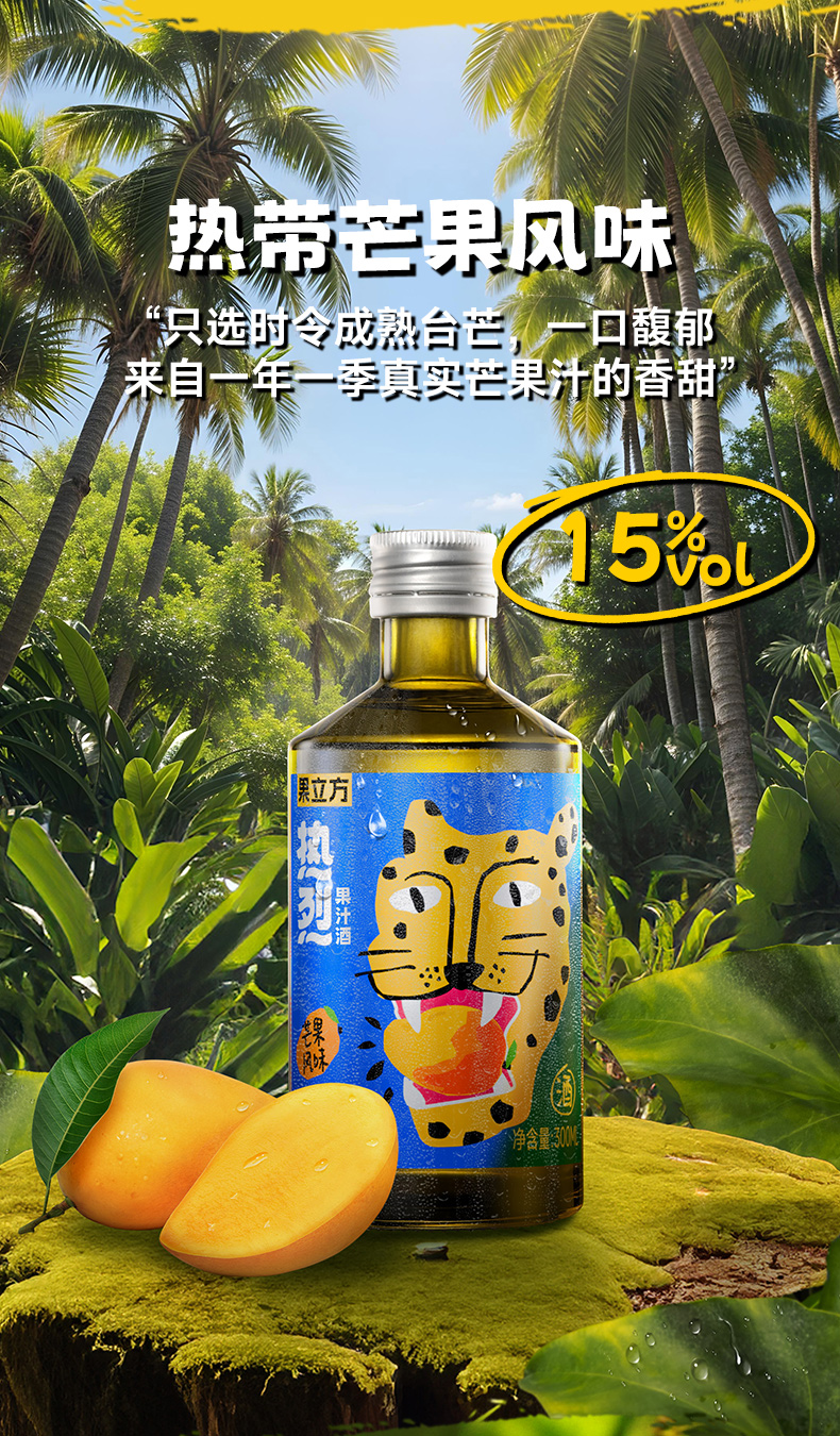 【新品】果立方热烈果汁酒芒果味椰子味15度300mL热带风味低度酒