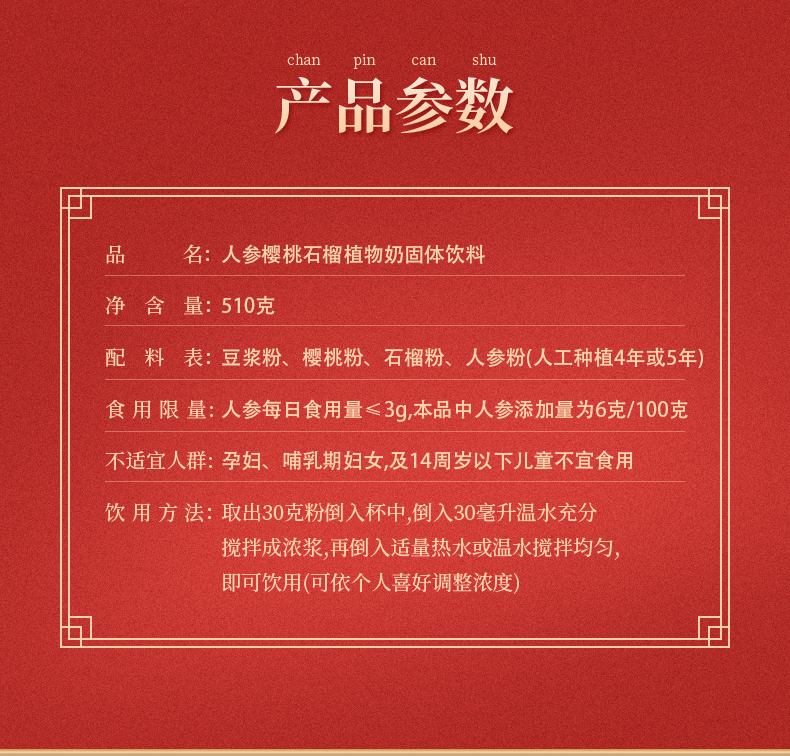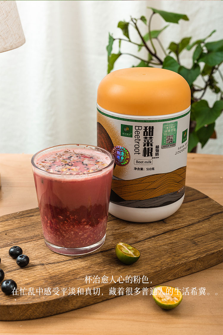 她念她乡 甜菜根/亚麻籽/姜黄/纳豆/人参樱桃石榴 植物奶 510g/罐