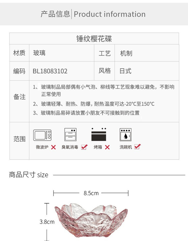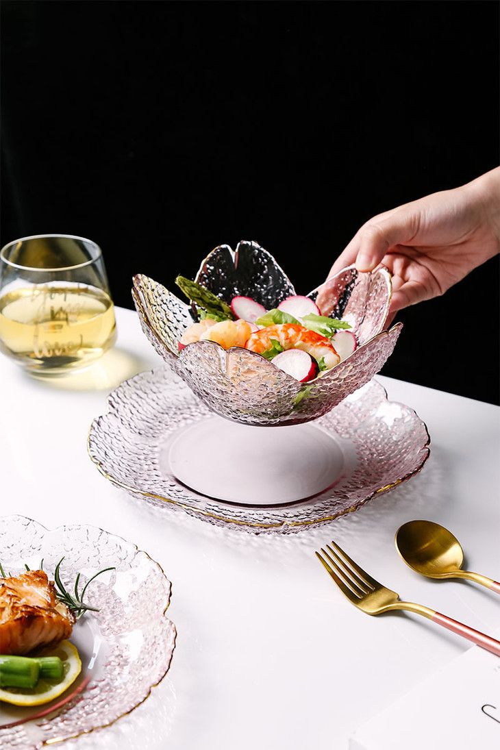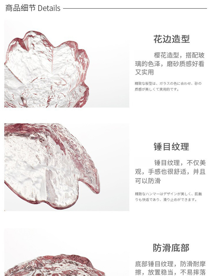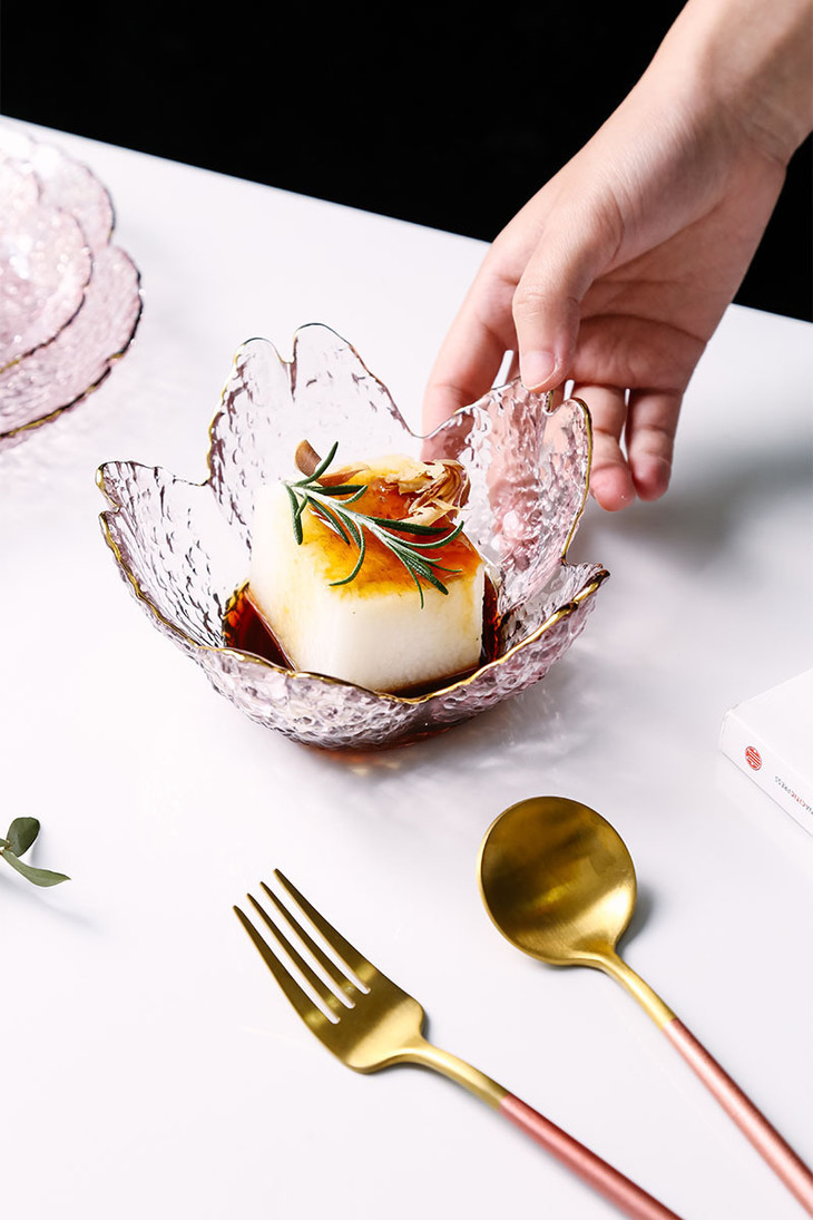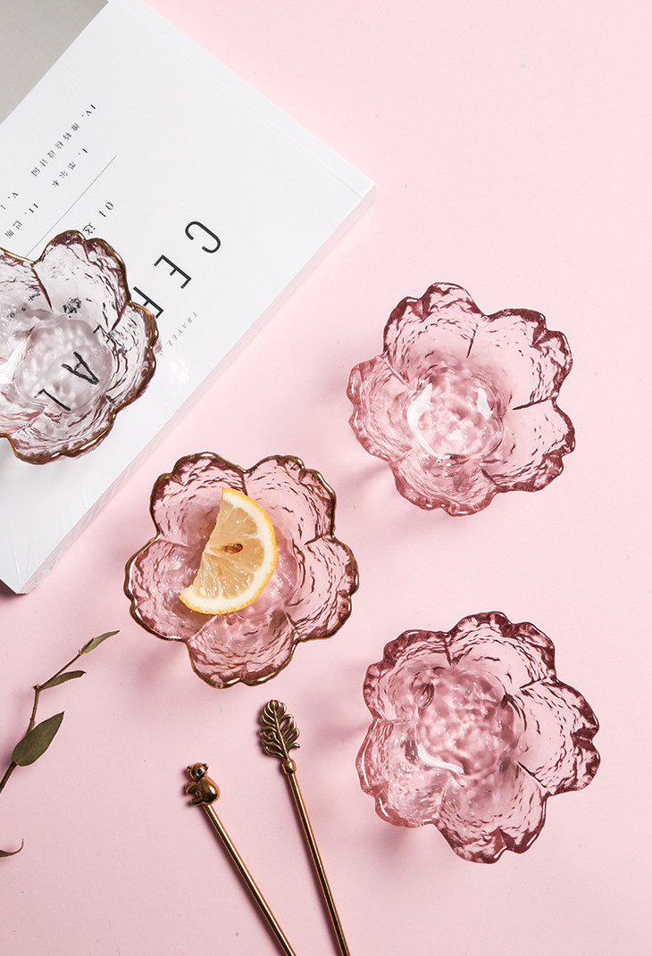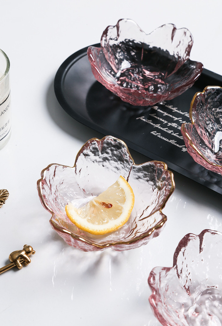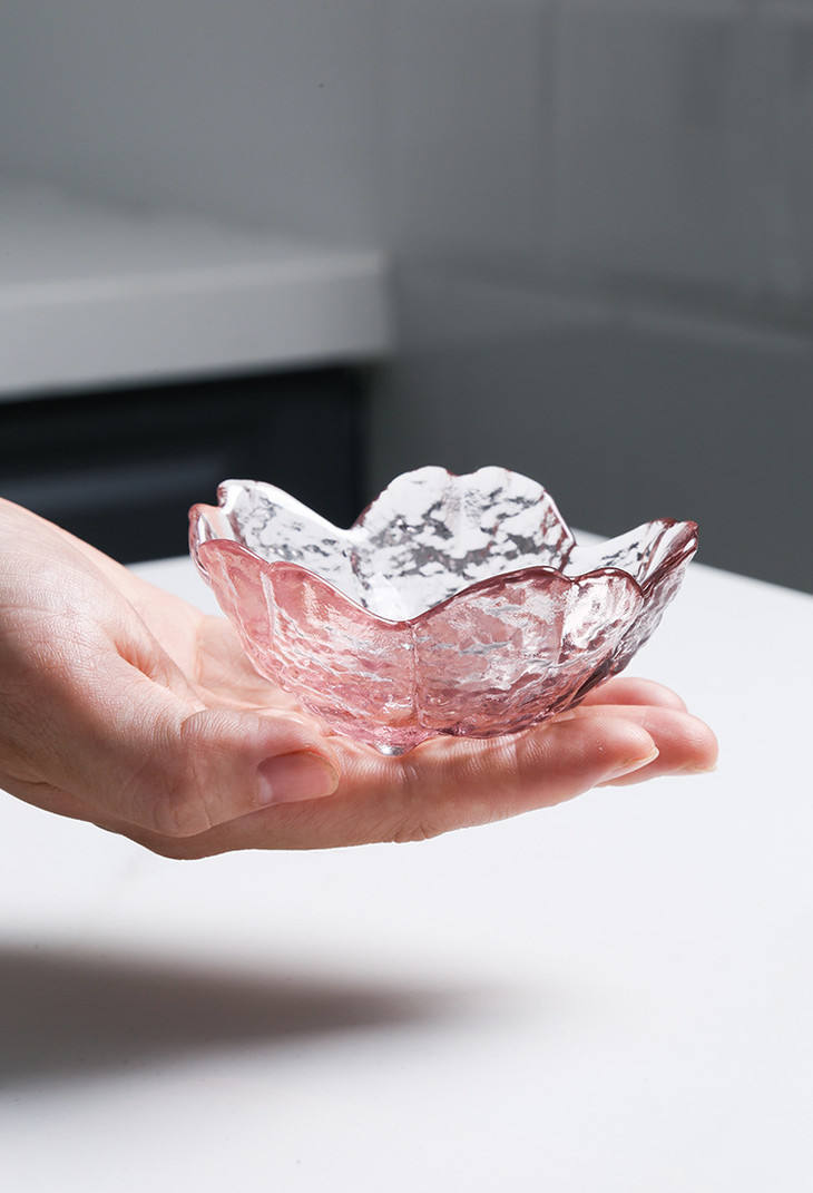 【3个特惠装!超美锤纹樱花碟】日式匠心工艺,创意粉色花瓣碟,一物多用,用它放东西,看着都能多吃几碗!家用蘸料碟玻璃餐具调味碟L