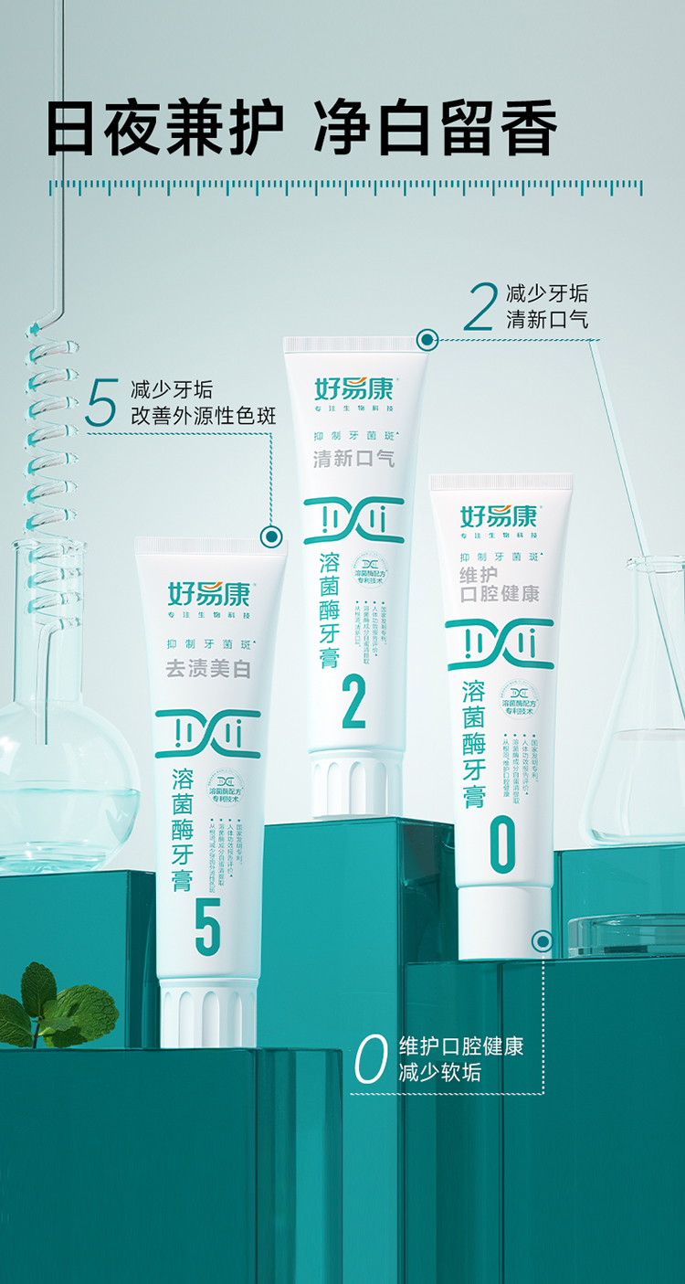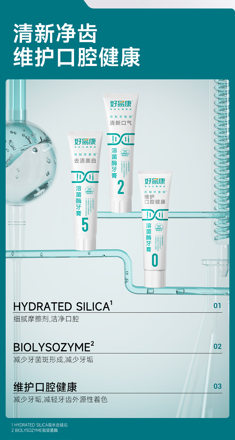 好易康溶菌酶牙膏-口气清新 亮白牙齿 牙渍牙垢 𝟓𝟐𝟎口腔护理套装