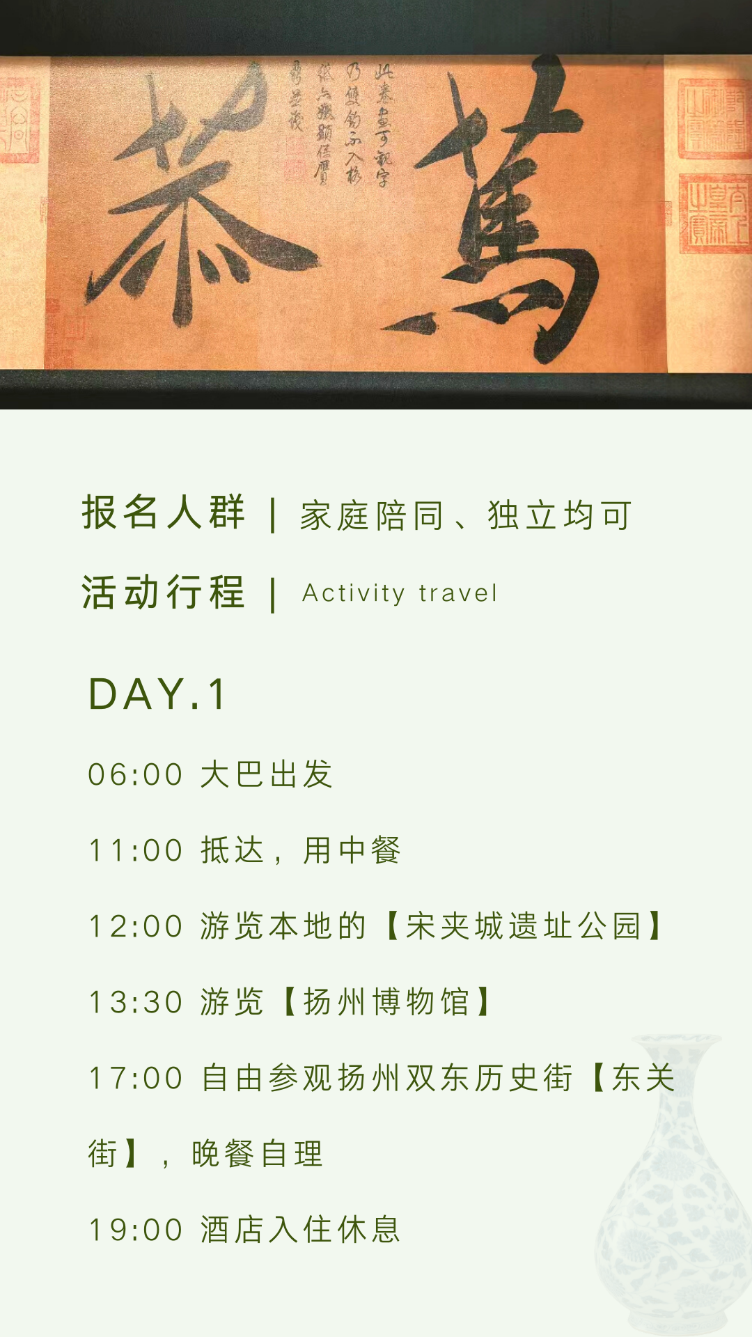 孩子志 | 扬州印象 三日两晚 亲子&独立 11/25(周六) 11/26(周日) 不妨到扬州走一走,感受这里的人间烟火气..