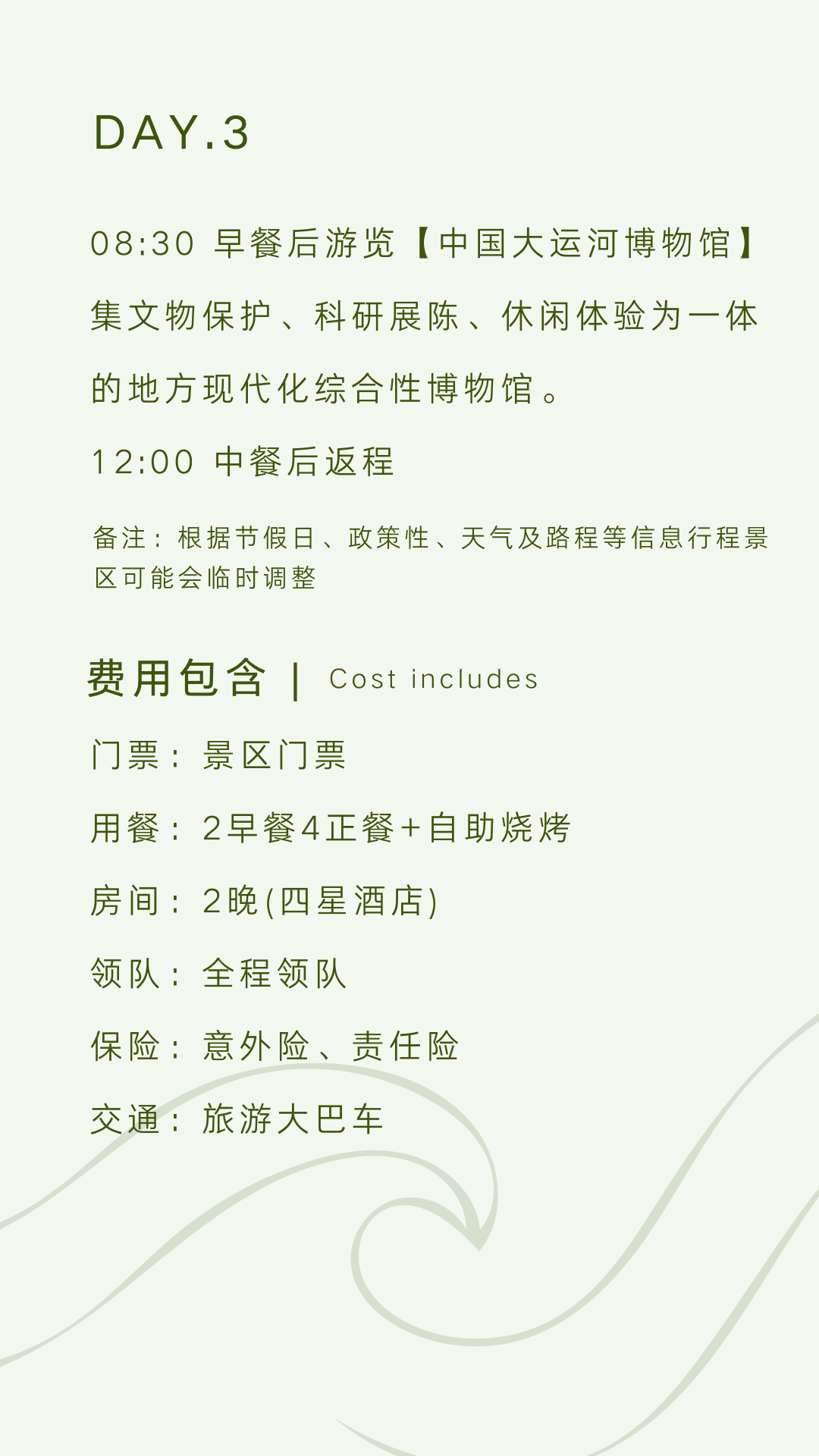 出发时间:8:00~8:30 回程时间:15:30~16:00