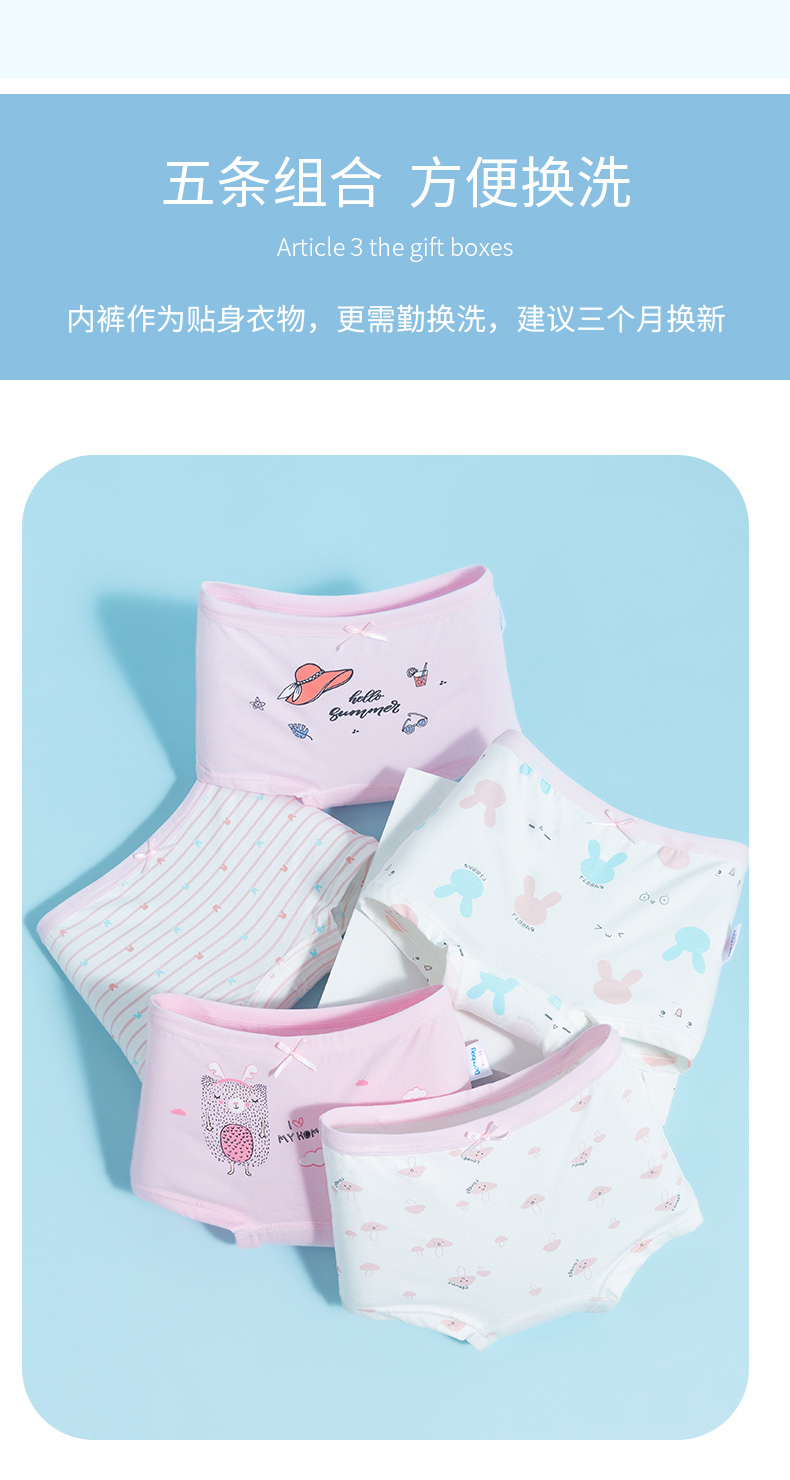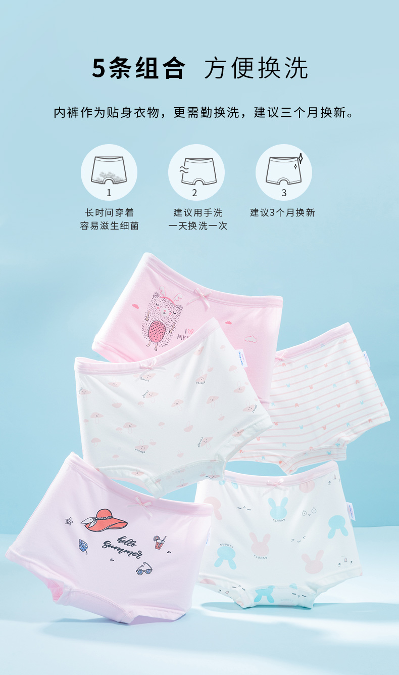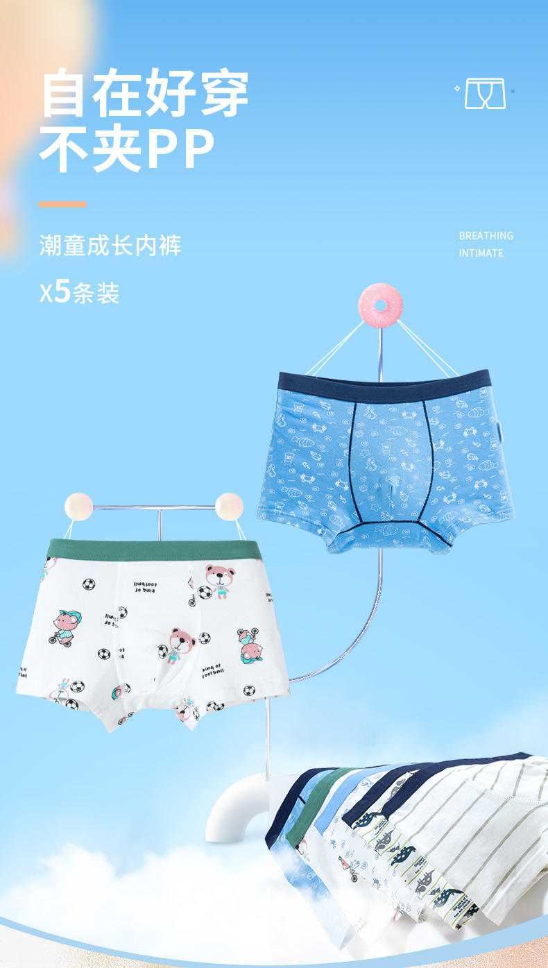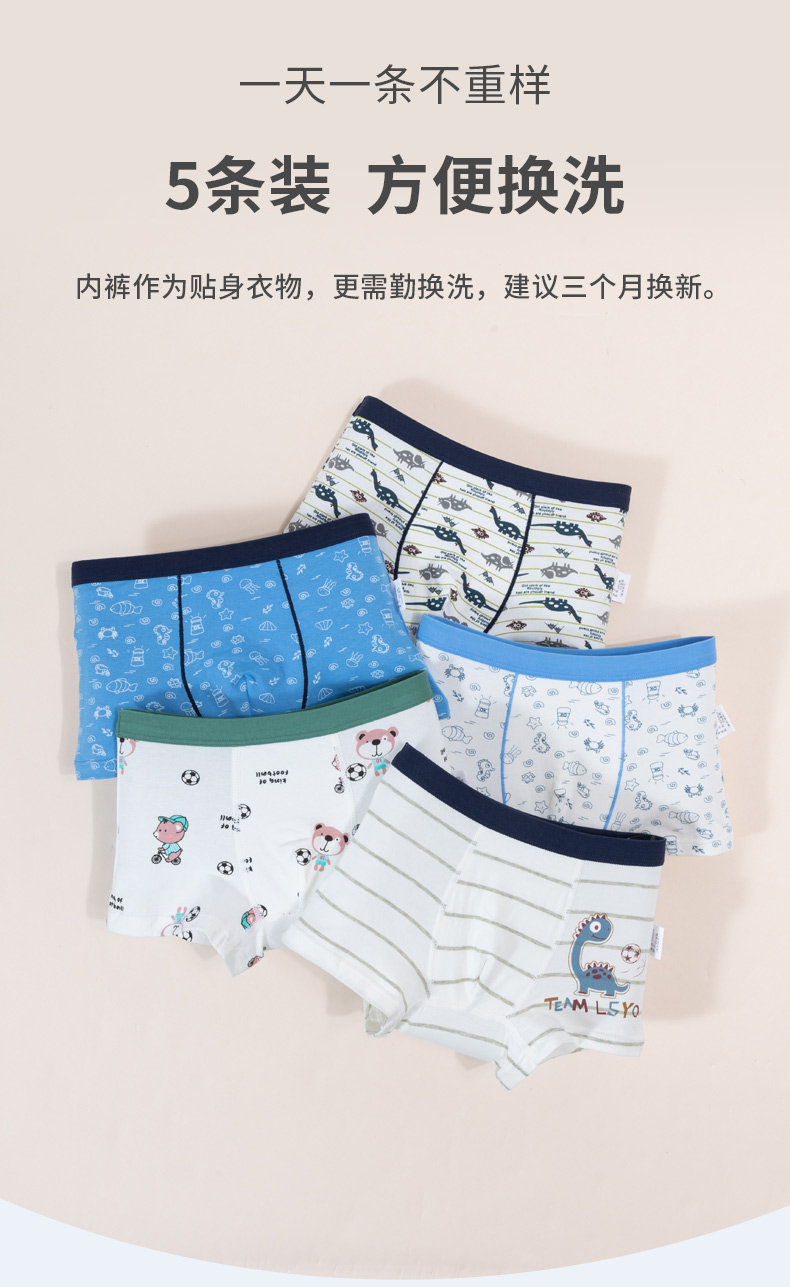 贝贝怡童装平角内裤四季中大童舒适透气贴身裤子(5条装)