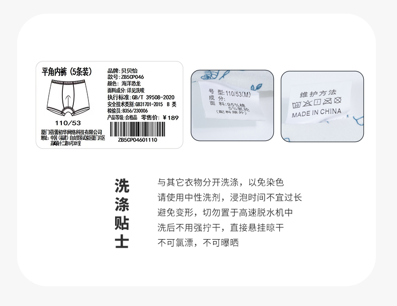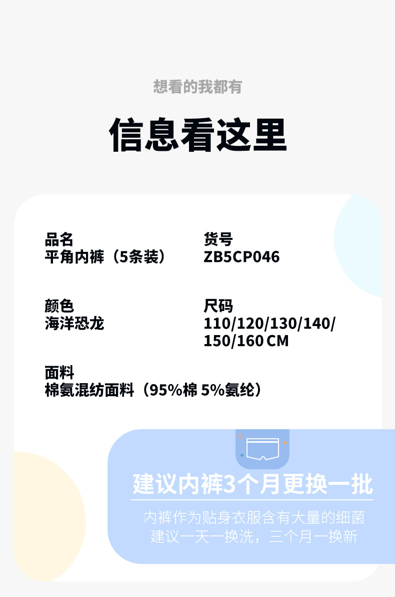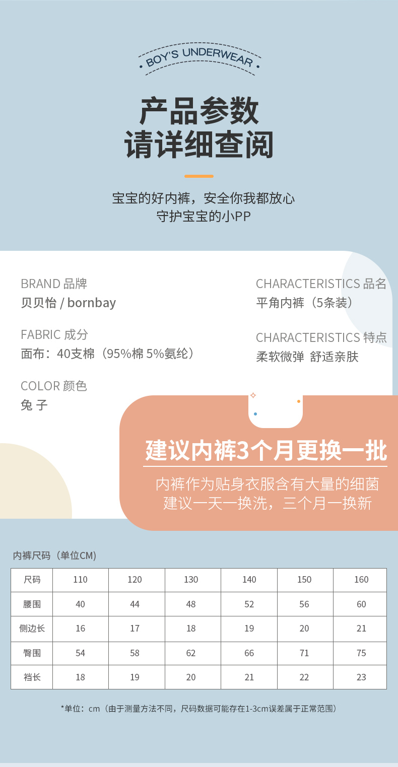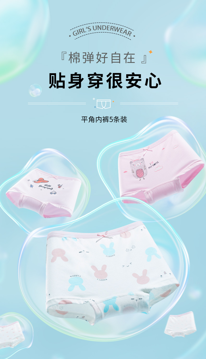 贝贝怡童装平角内裤四季中大童舒适透气贴身裤子(5条装)