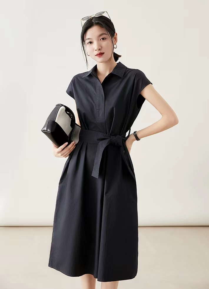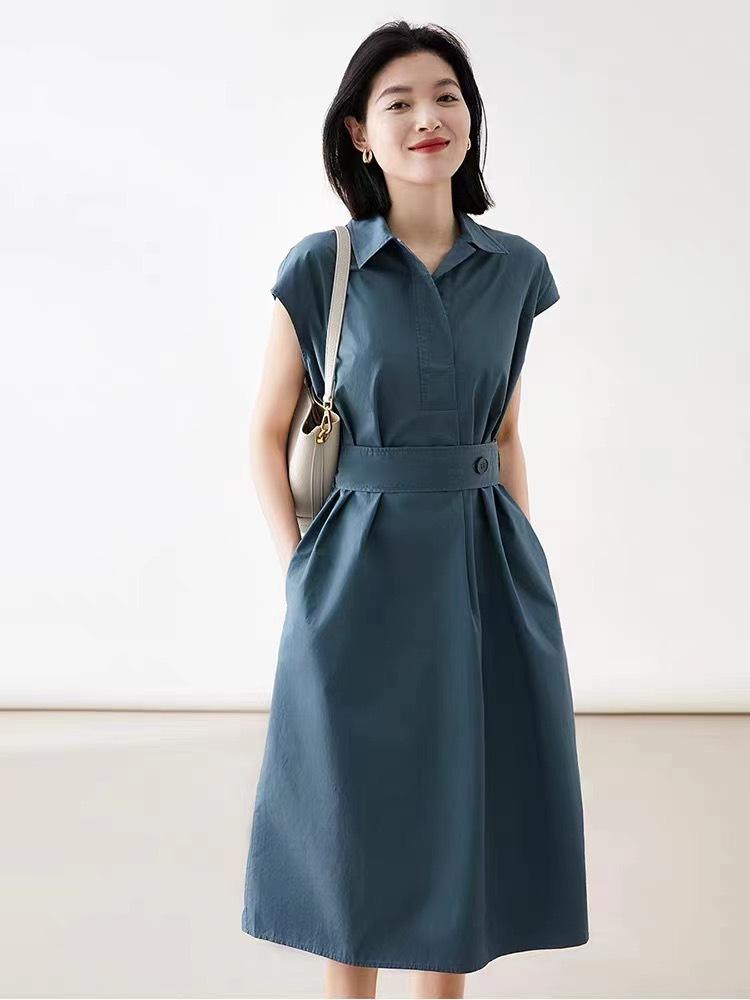 【定织匹马棉文艺POLO领短袖连衣裙】千元品质,棉中贵族”新疆细绒匹马棉"复古通勤体制内穿搭 100%细绒匹马棉