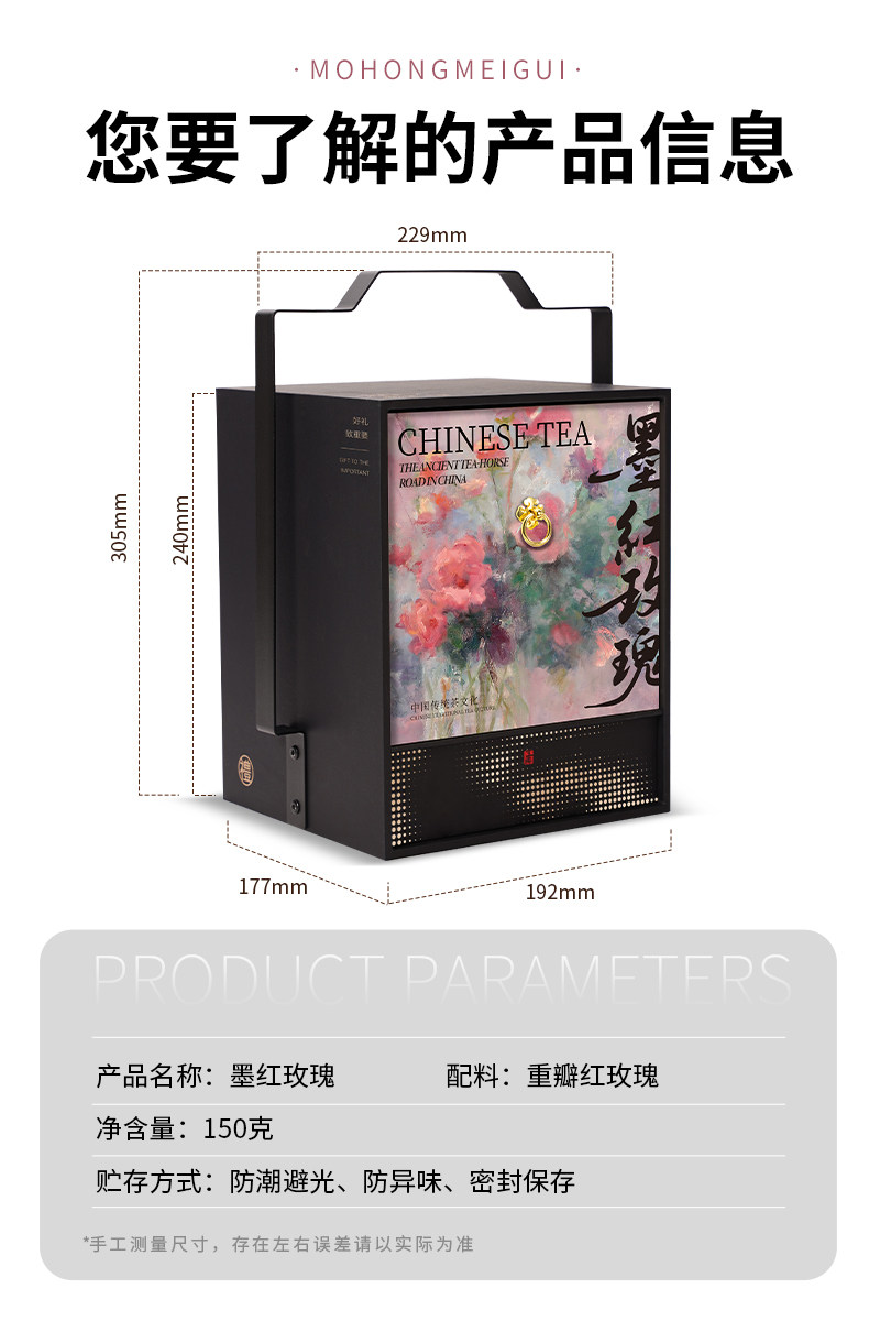 【春季茶礼】茶叶 花间 莫奈墨红玫瑰 春季茶礼 花茶 茶叶礼盒 茶饮 五虎 150g