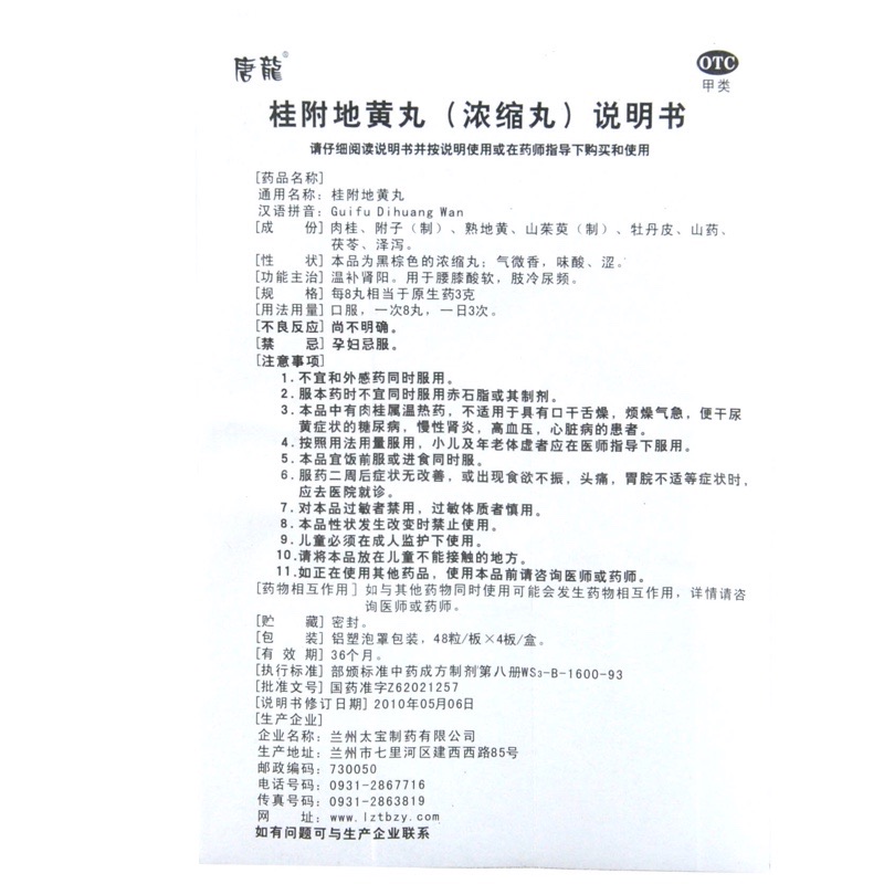 唐龙桂附地黄丸192粒/盒 温补肾阳 用于腰膝酸软 肢冷尿频