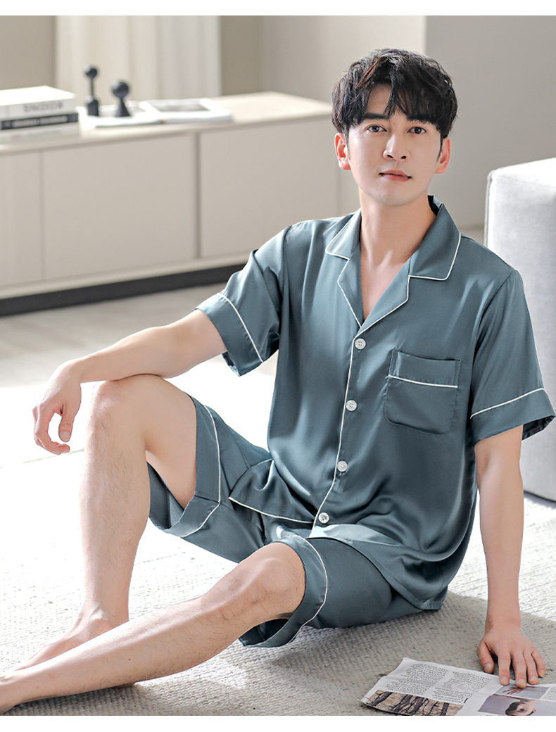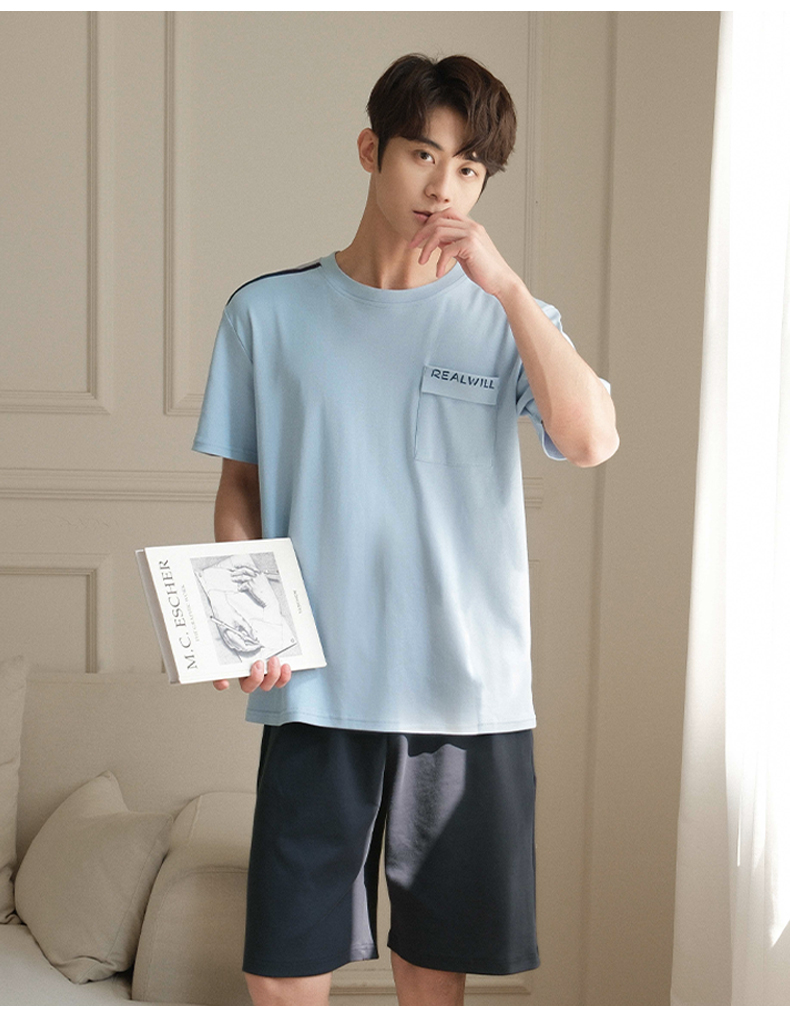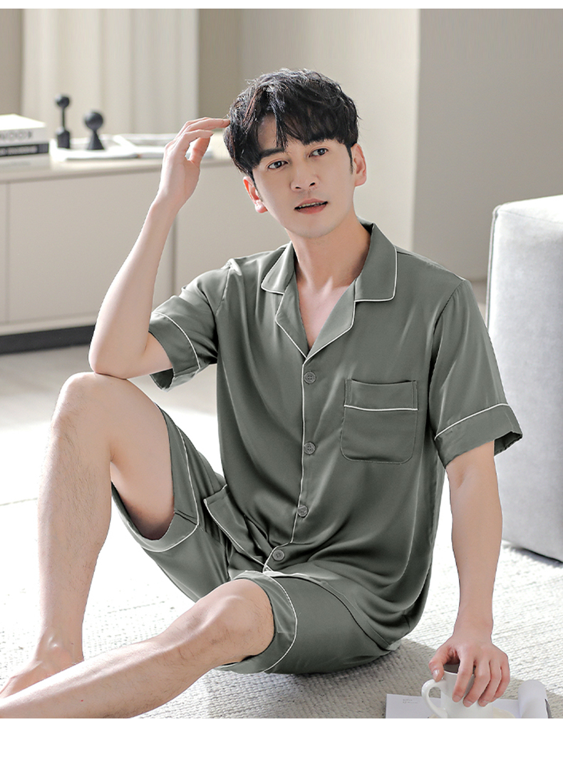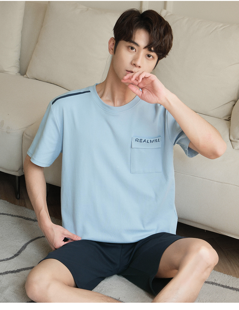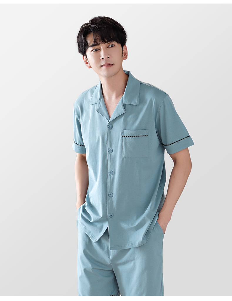 J1-润微家居服套装男款夏季休闲舒适轻薄透气短袖新款夏季男士睡衣集合