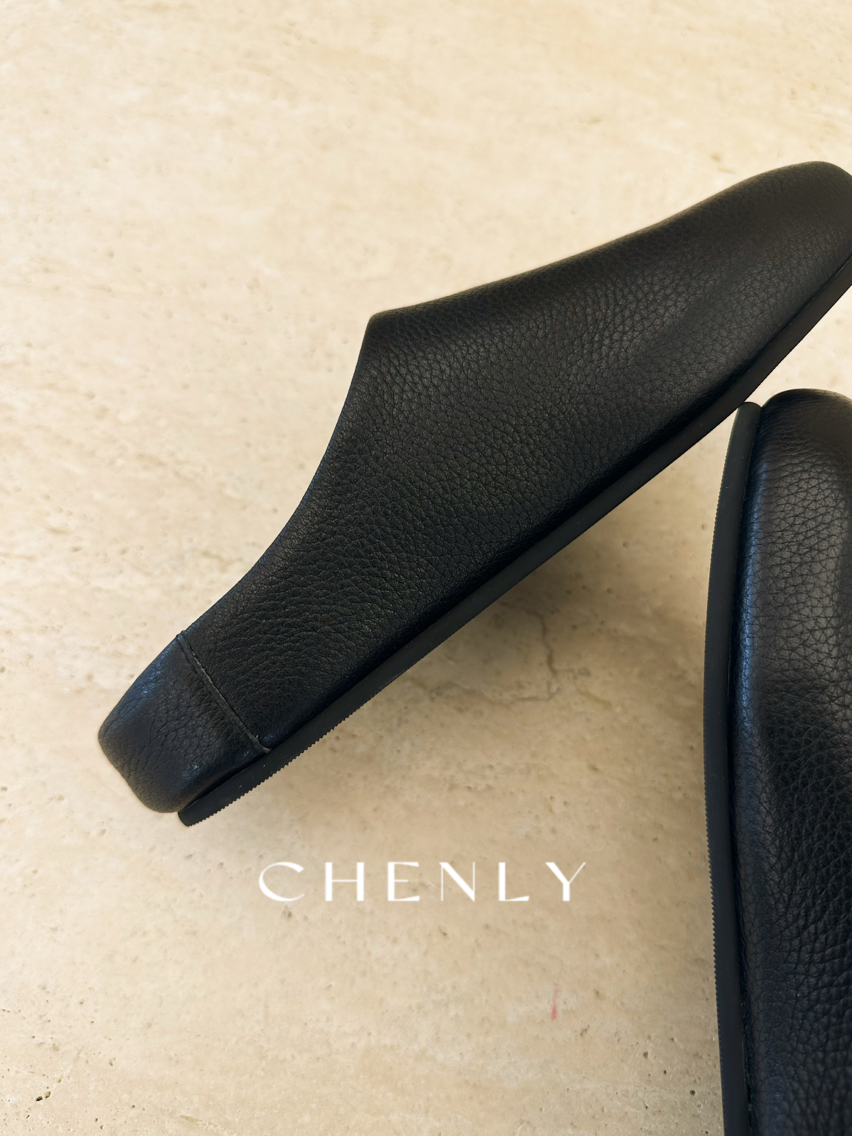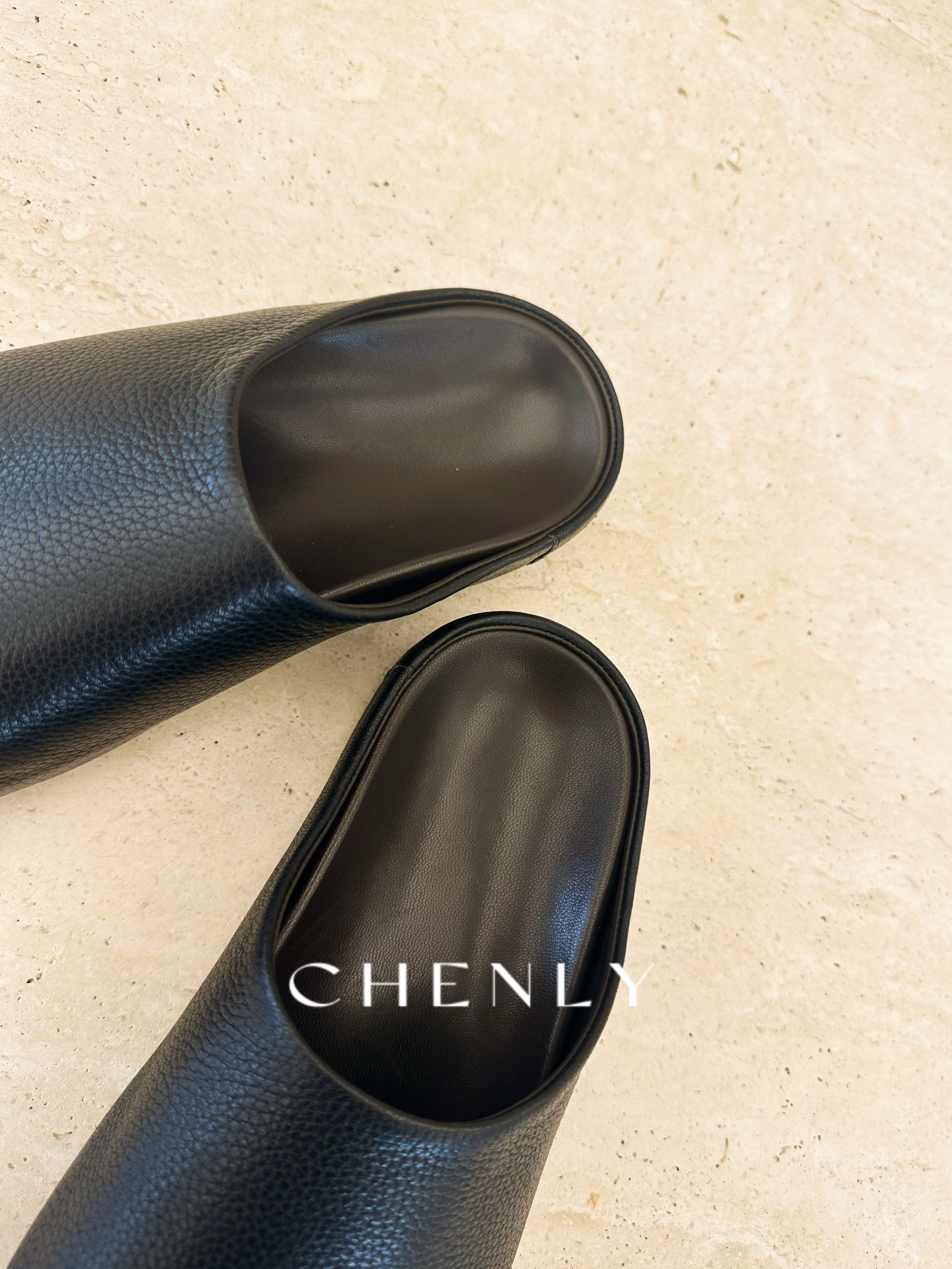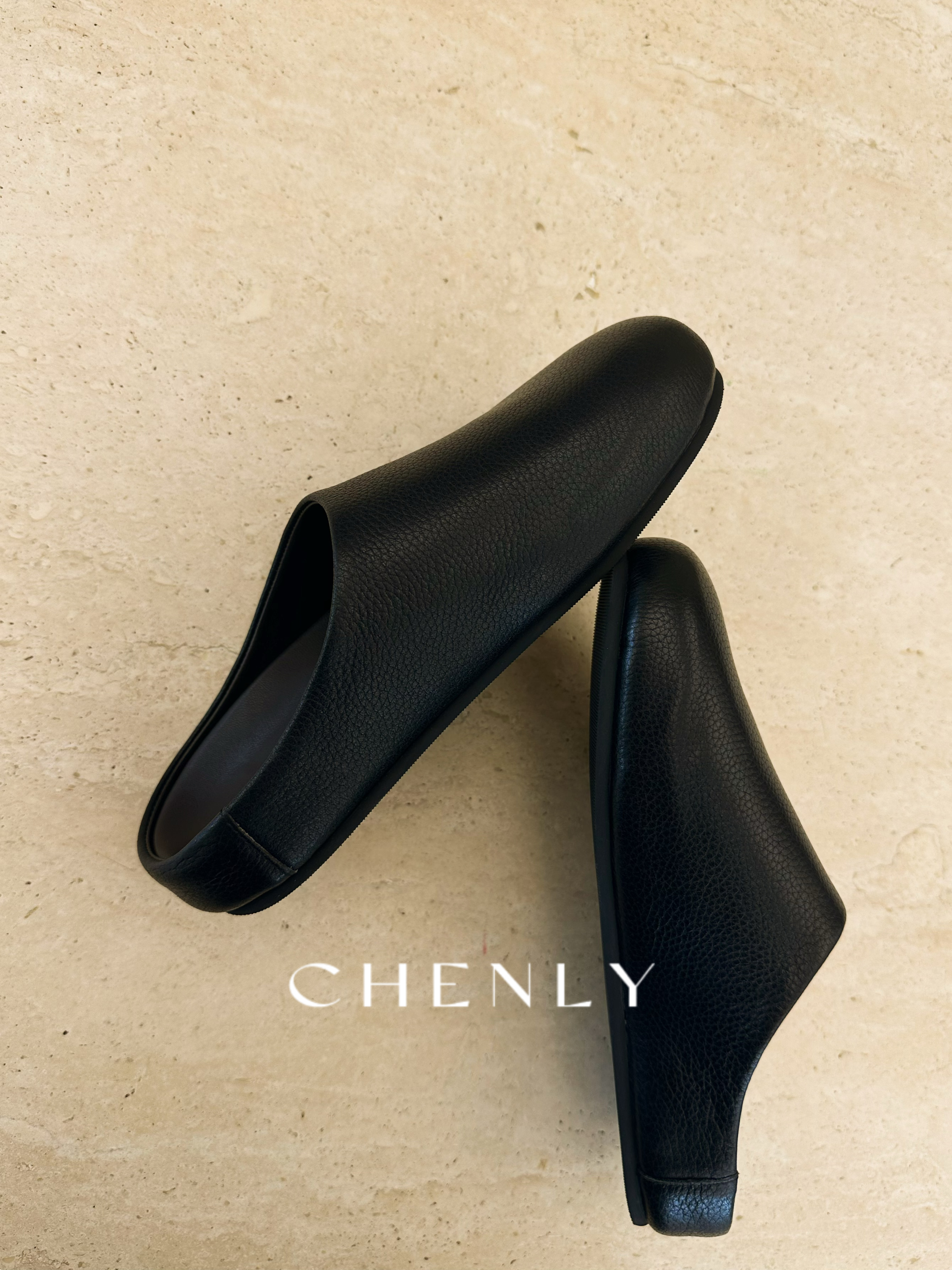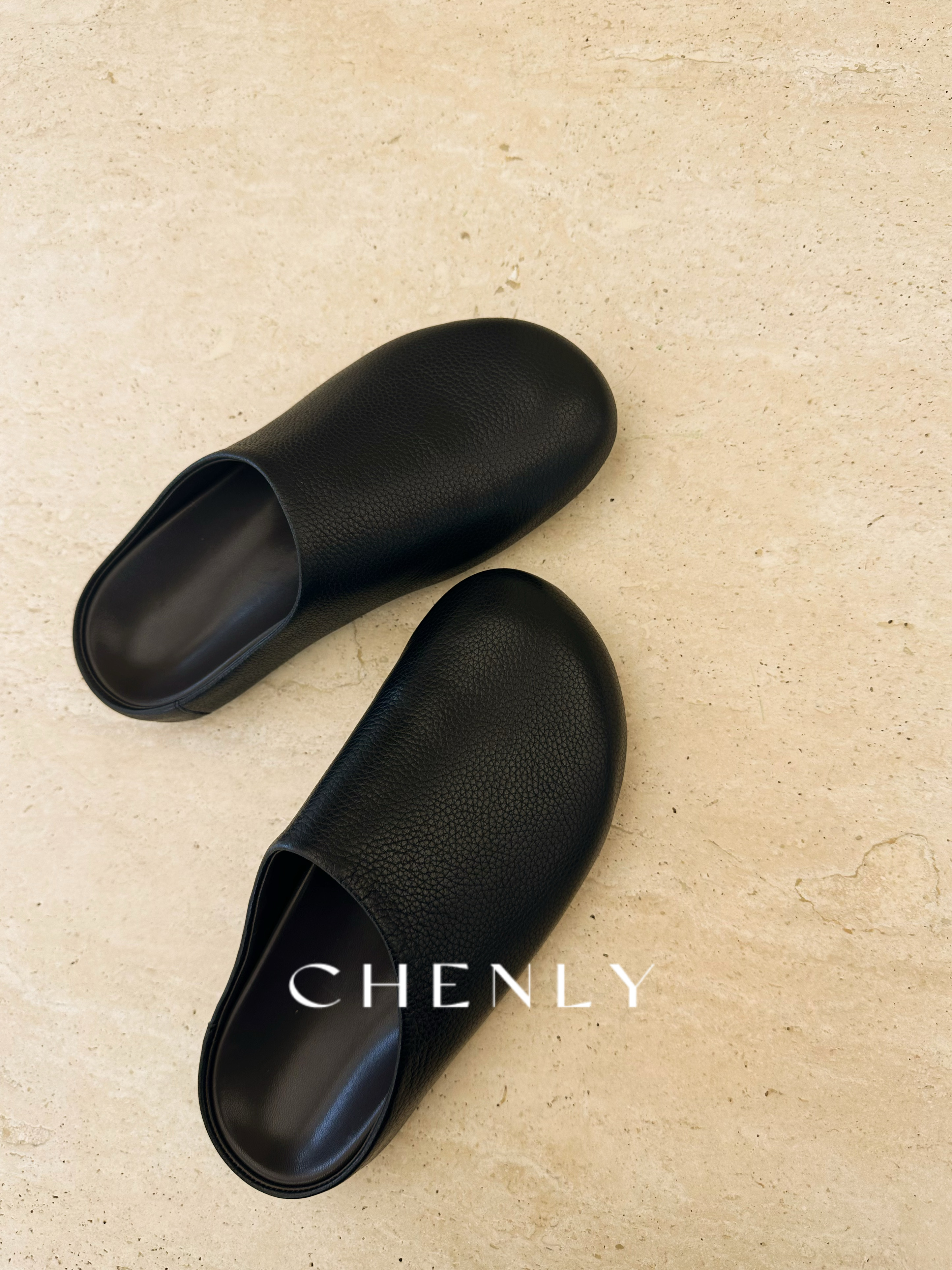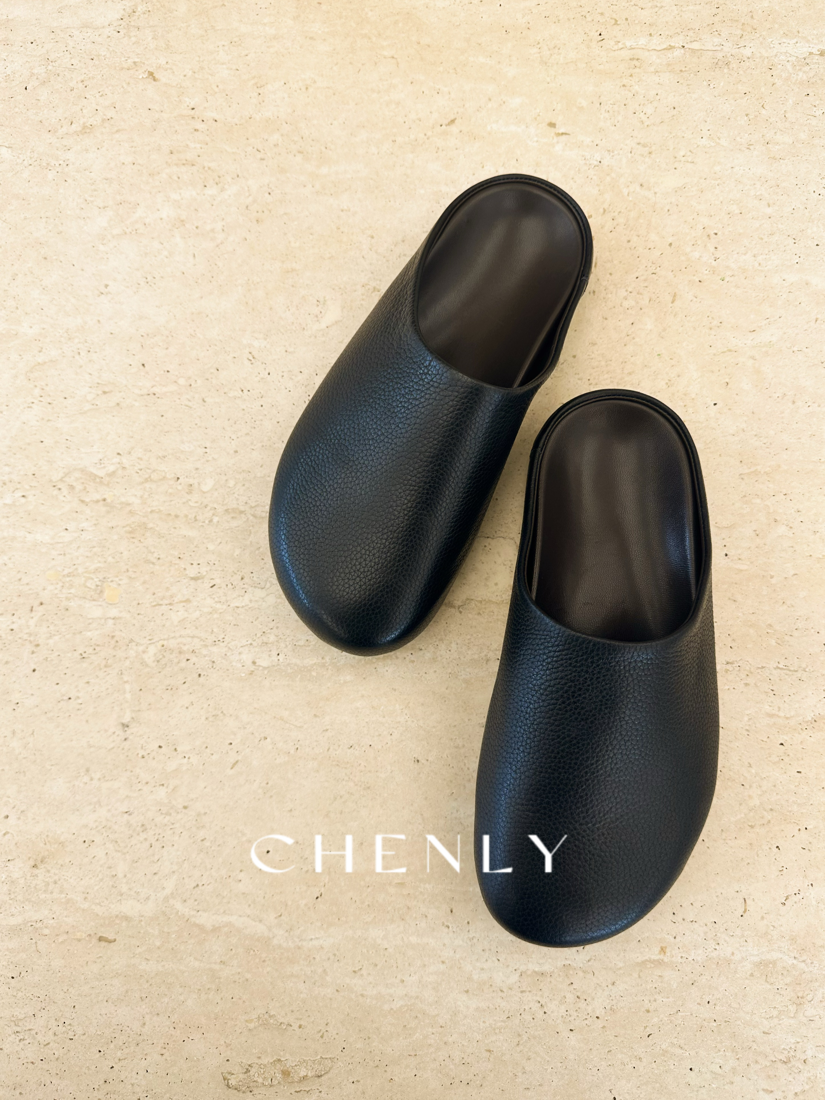 尘衣|25F/W全粒面荔枝纹小牛皮包头半拖
