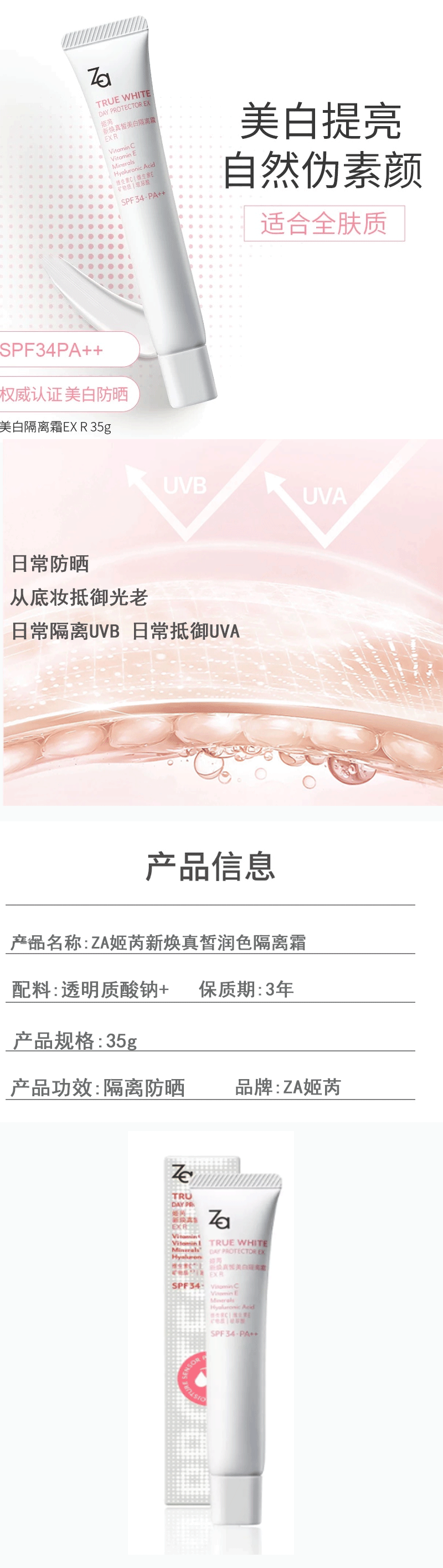 ZA姬芮新焕真皙美白隔离霜SPF34 PA++35g【30173088】