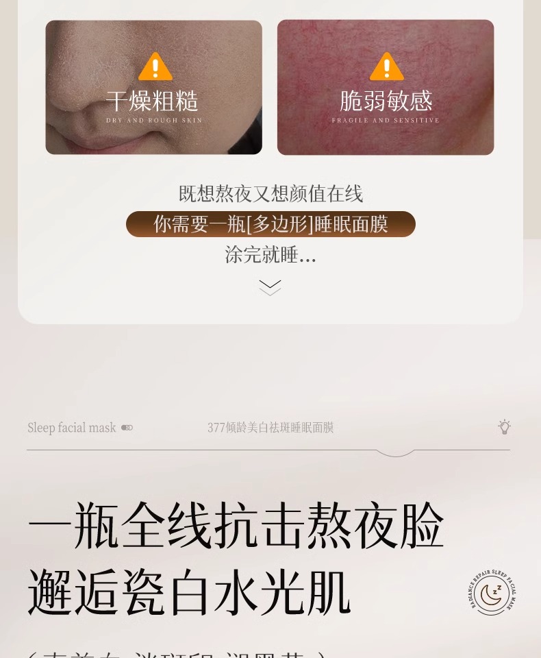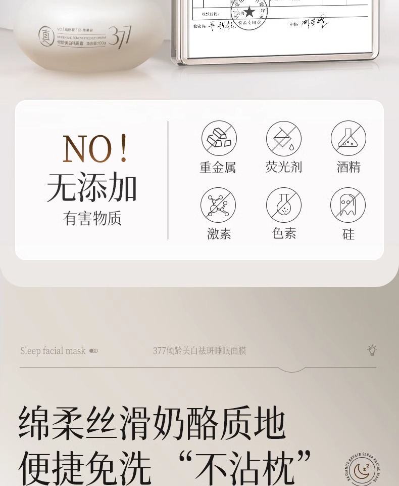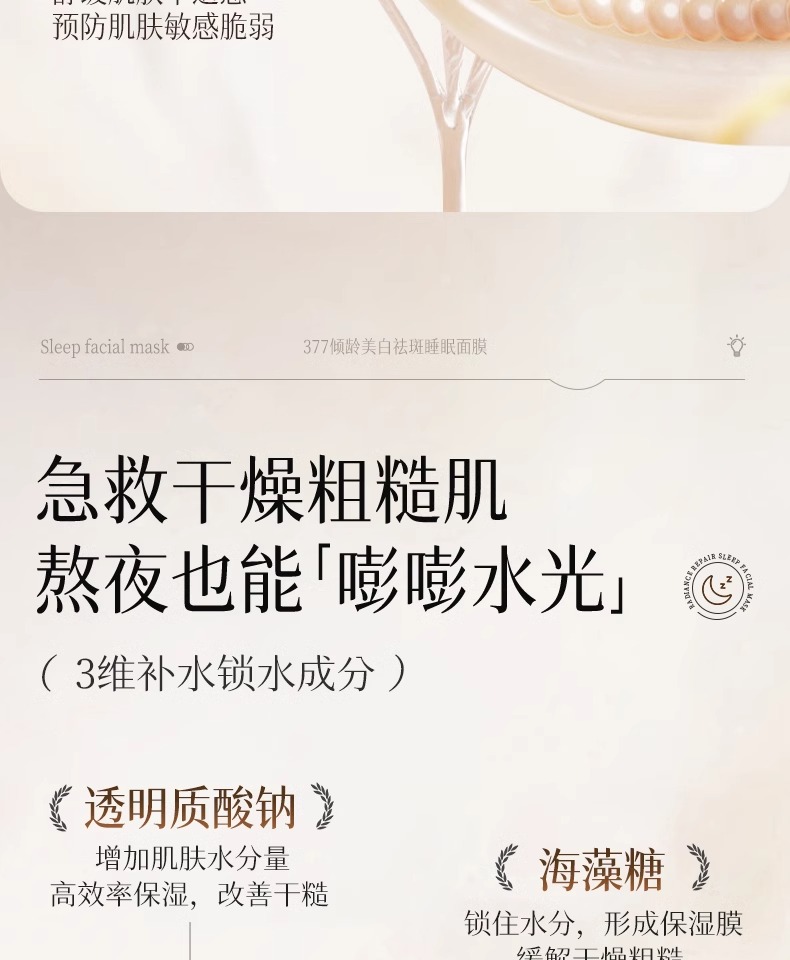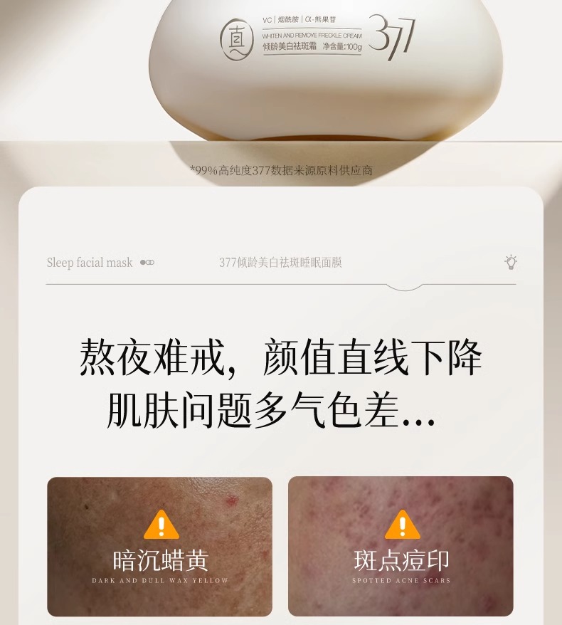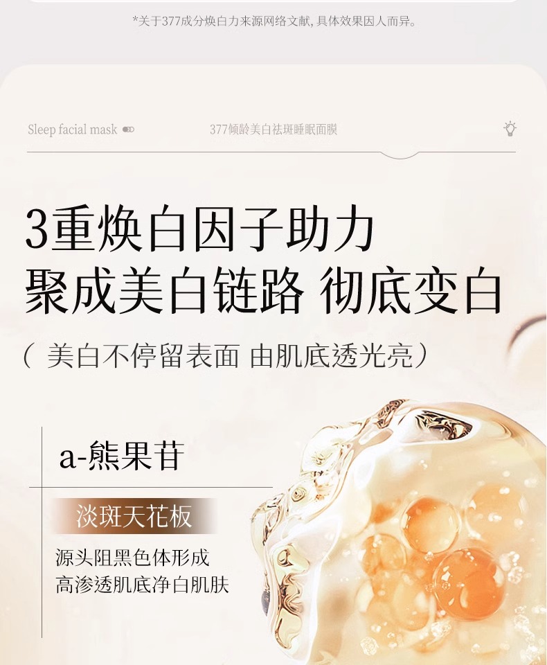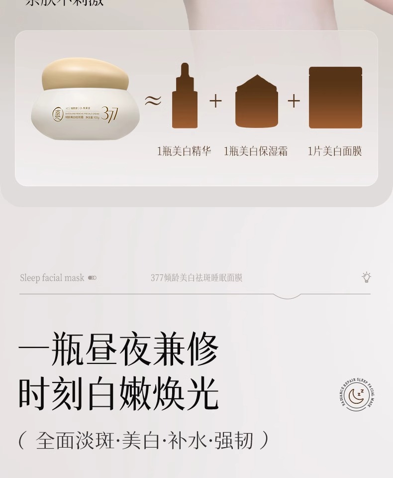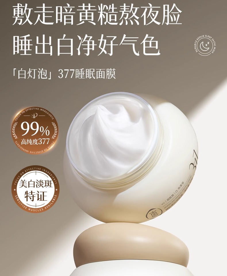 【告别黑/斑/黄 肌肤光感透亮】倾龄PANDAS BEAUTY美白祛斑霜100g#377睡眠美白面膜去黄气暗沉涂抹式提亮补水保湿女免洗抗氧化熬夜