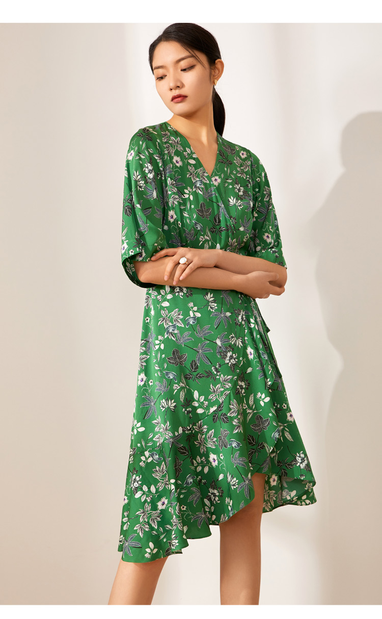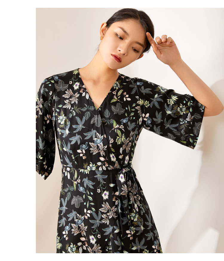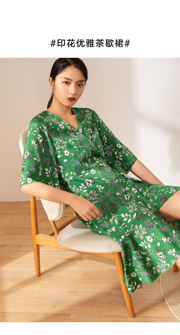 玳莎女真丝印花茶歇裙连衣裙 BA35202
