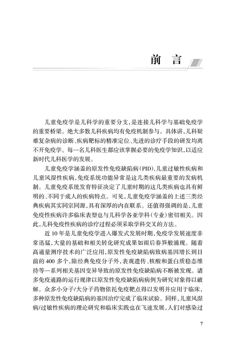 全书43万字,在上一版的基础上修订30%以上,共六章,包括儿童免疫学总论、原发性免疫缺陷病、继发性免疫缺陷病、儿童过敏性疾病、儿童风湿性疾病、免疫功能异常与疫苗接种。全书文字精炼、表达流畅、脉络清晰、内容经典、重点突出、理念先进,并有大量诊治流程图,为读者提供分析思路,是一本具备先进性、科学性和实用性的专业工具书。