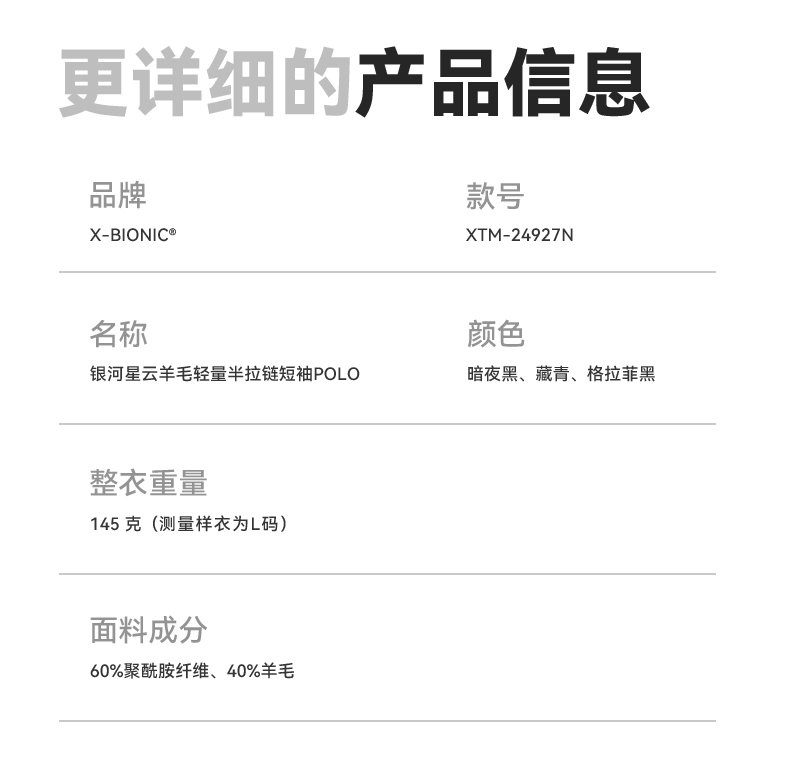 XBIONIC银河星云羊毛轻量半拉链短袖POLO男Polo衫T恤夏季透气商务运动22353