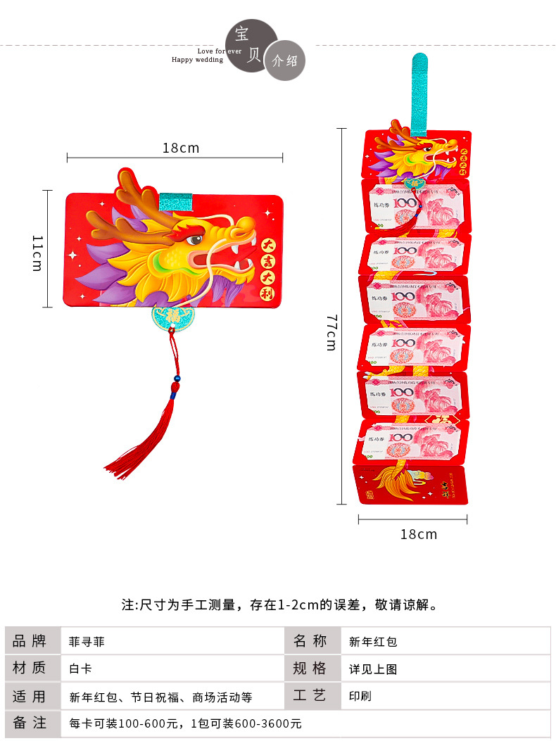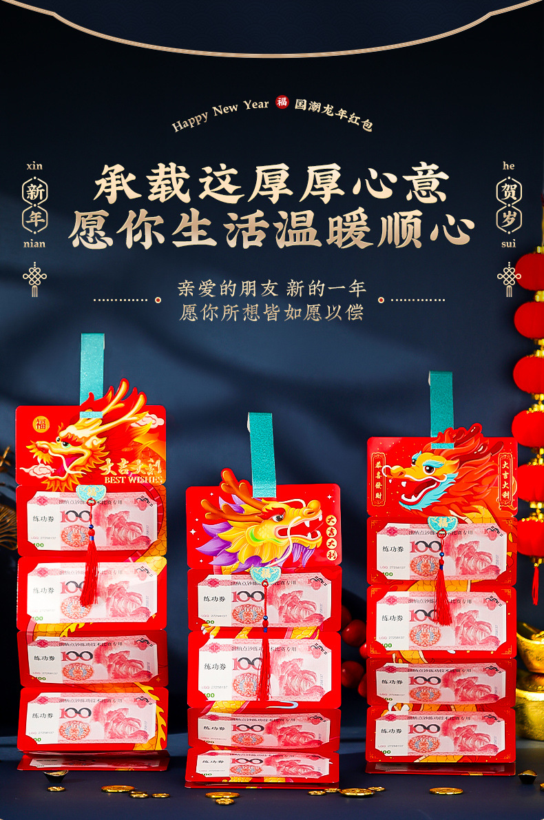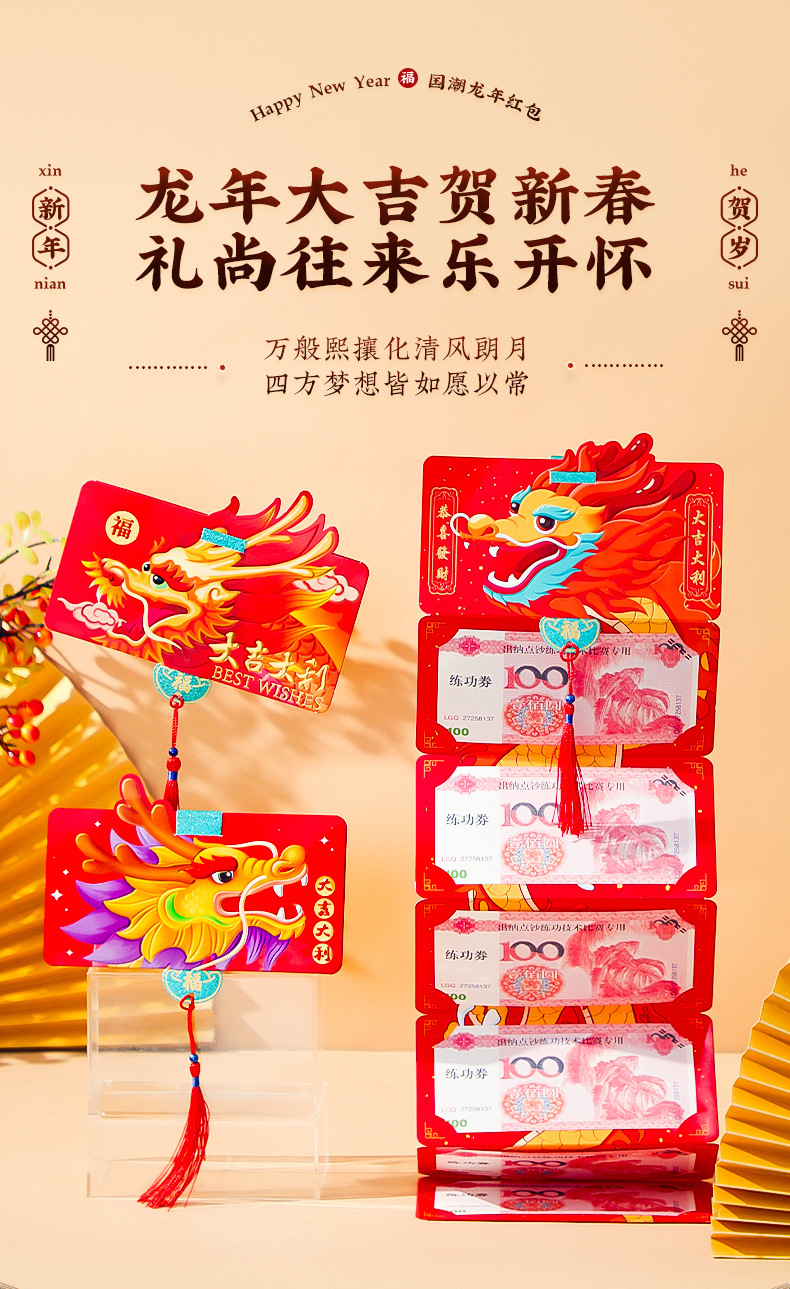 【新年创意折叠红包】2024龙年折叠红包新款过年春节创意生肖压岁拉伸钱包袋利是封卡位
