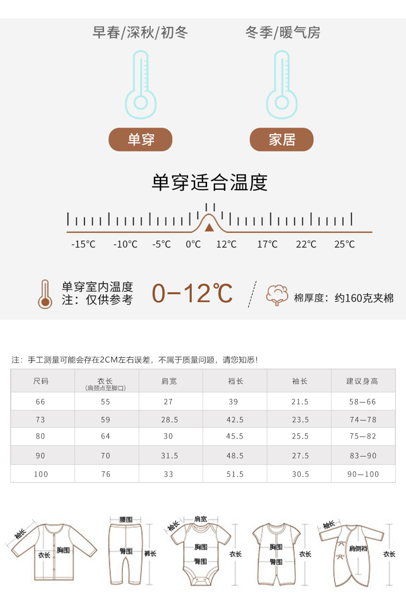 【婴儿秋冬夹棉连体衣】婴儿棉服秋冬款连体衣宝宝冬装衣服夹棉外出服棉衣
