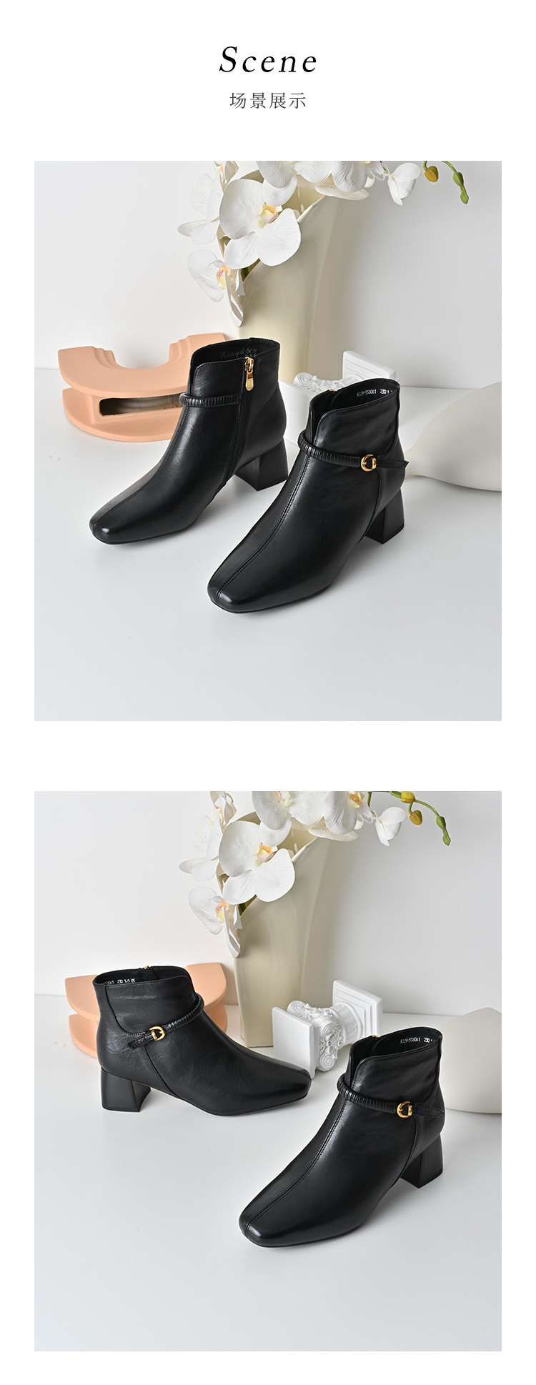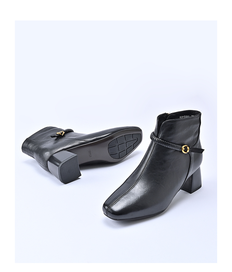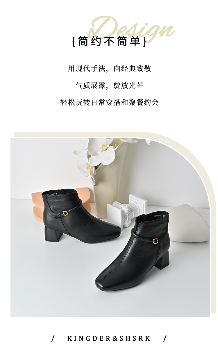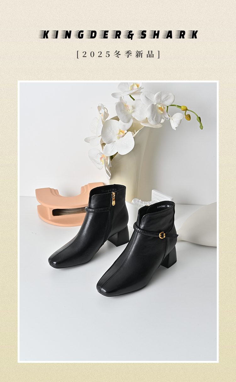 经典鲨2025冬季专柜新品羊皮革时尚小方头加绒加厚通勤中粗跟短靴KD29-558061