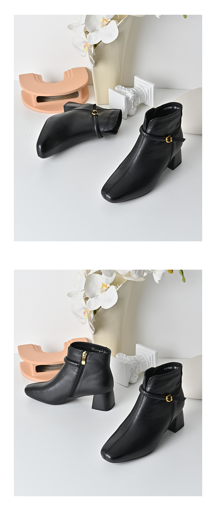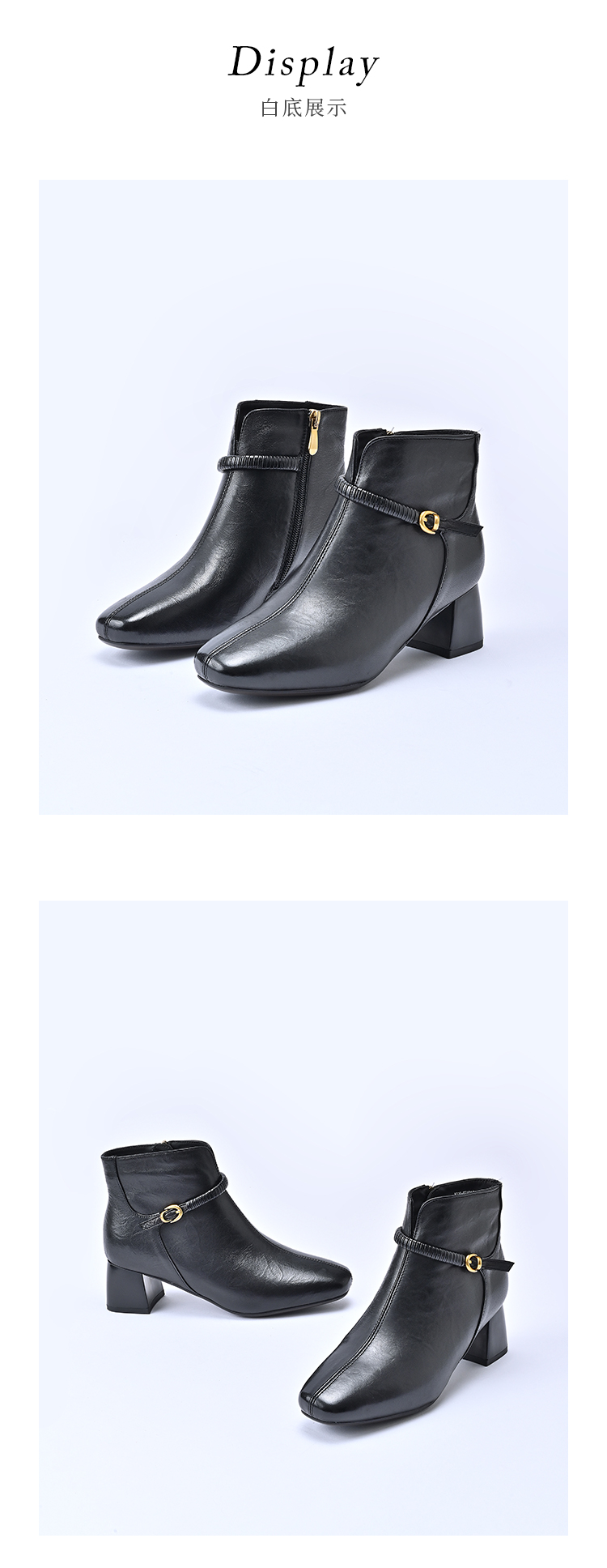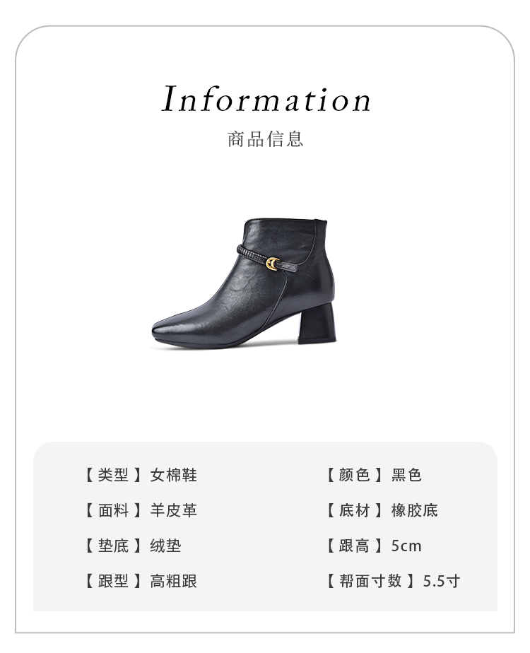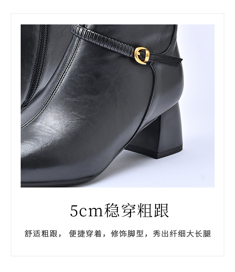 经典鲨2025冬季专柜新品羊皮革时尚小方头加绒加厚通勤中粗跟短靴KD29-558061