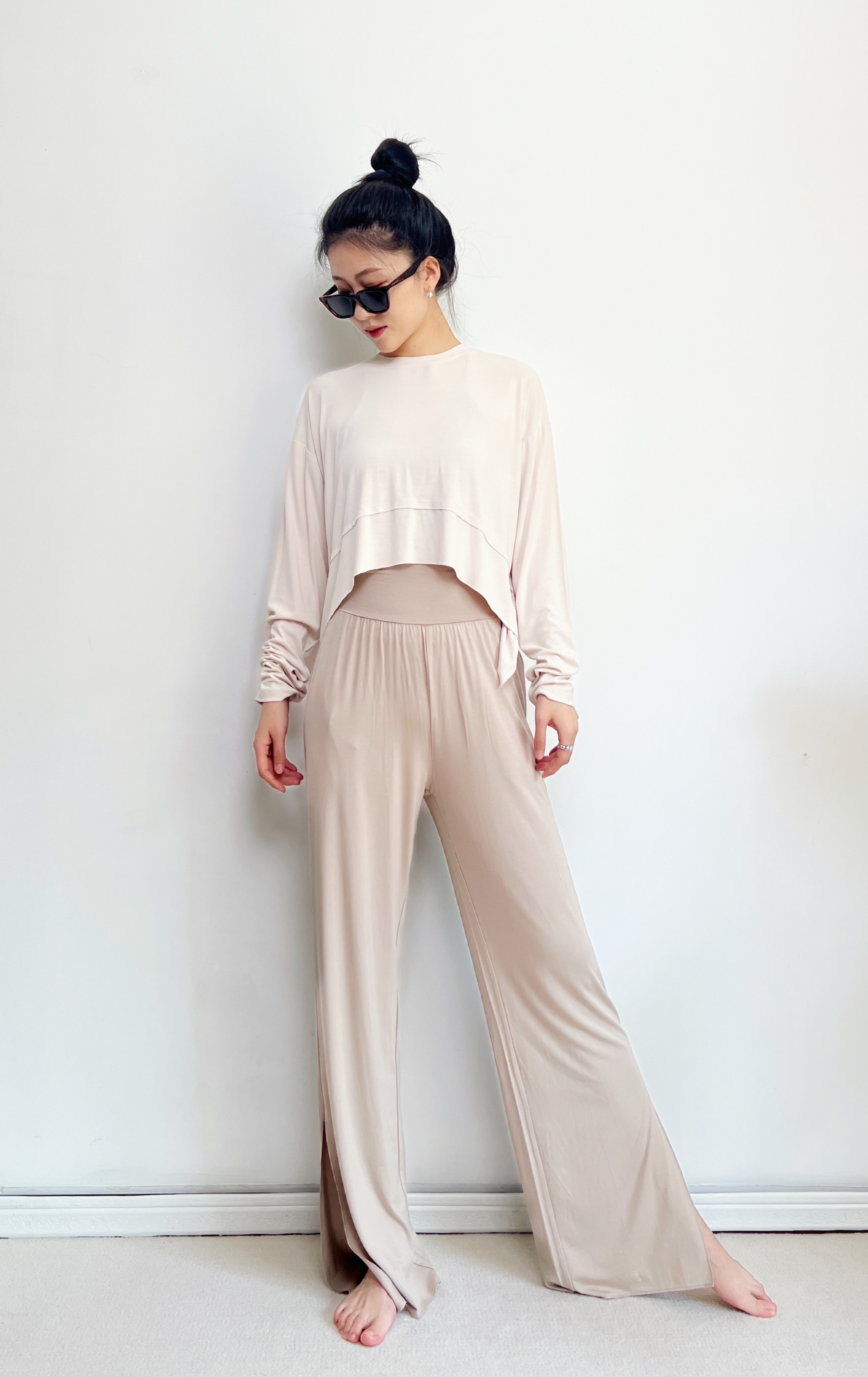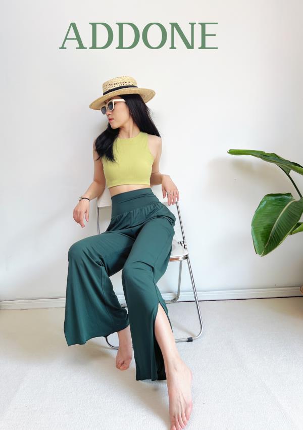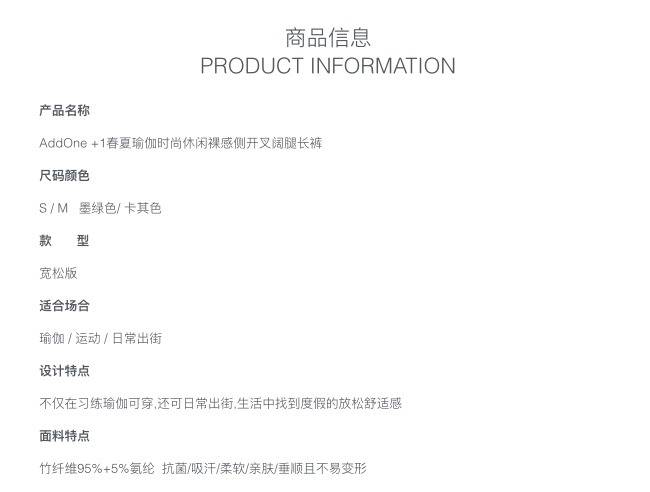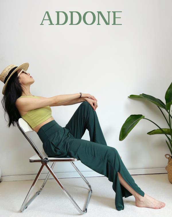 AddOne+1 春夏瑜伽时尚休闲裸感侧开叉阔腿裤